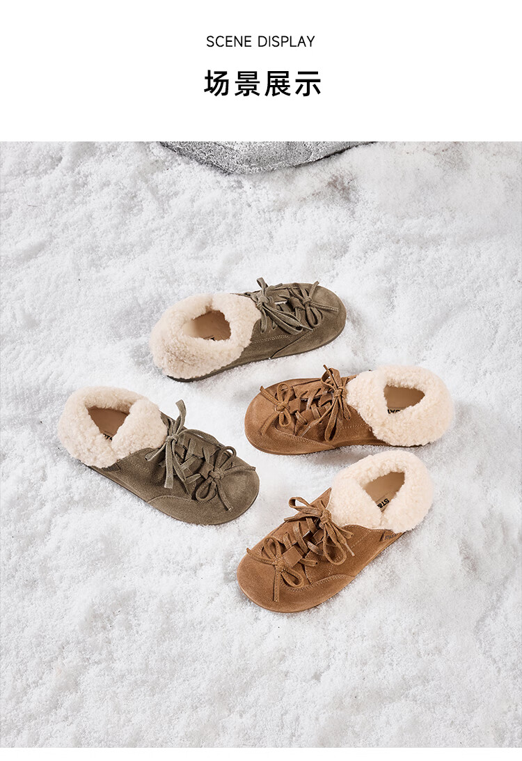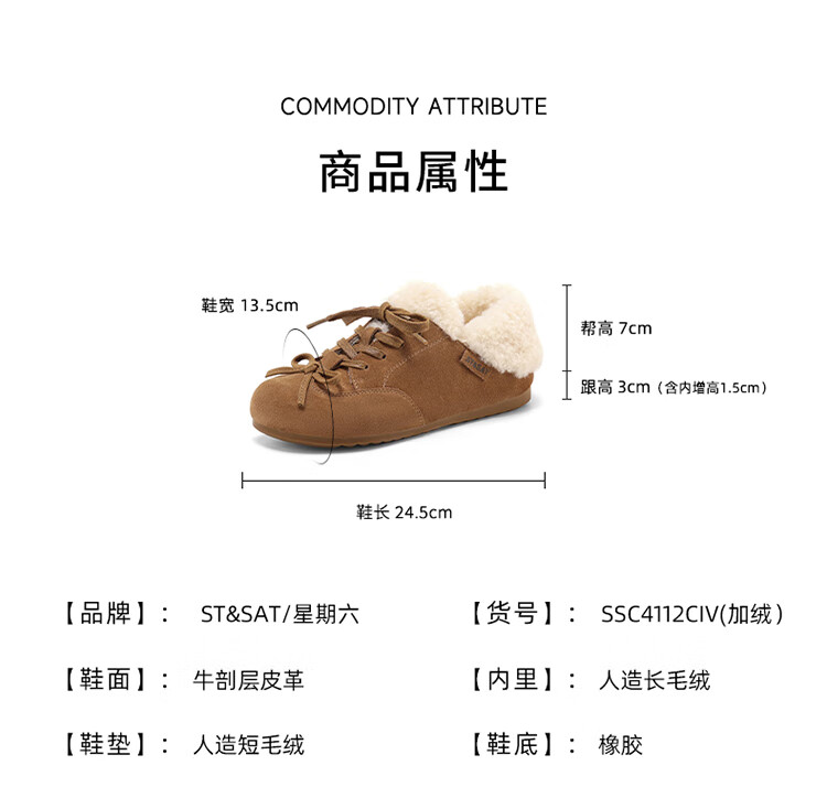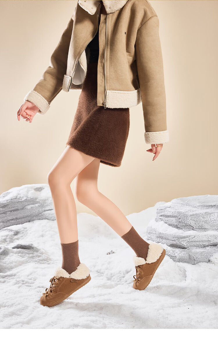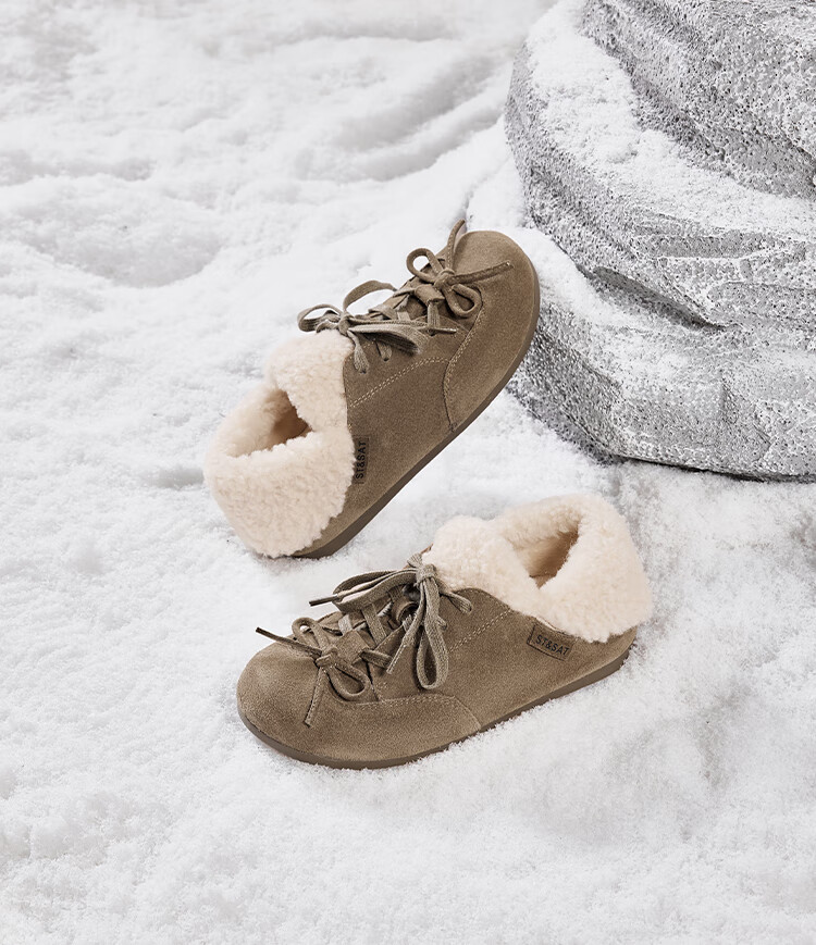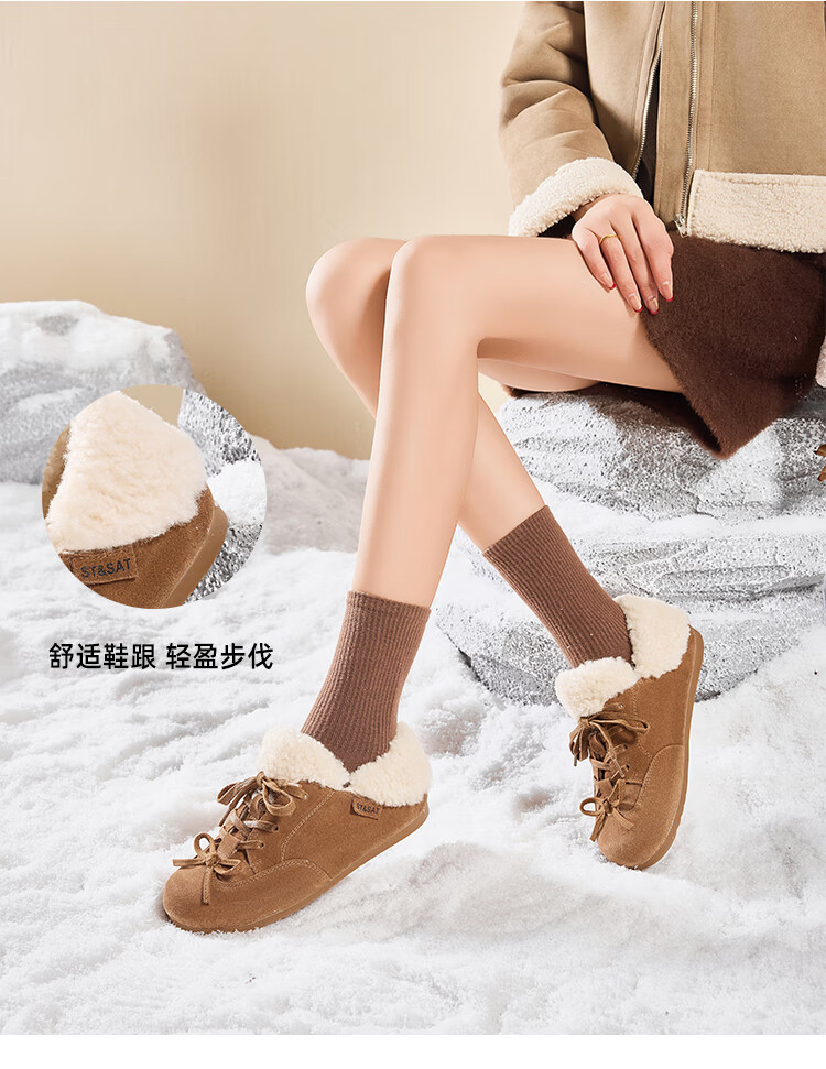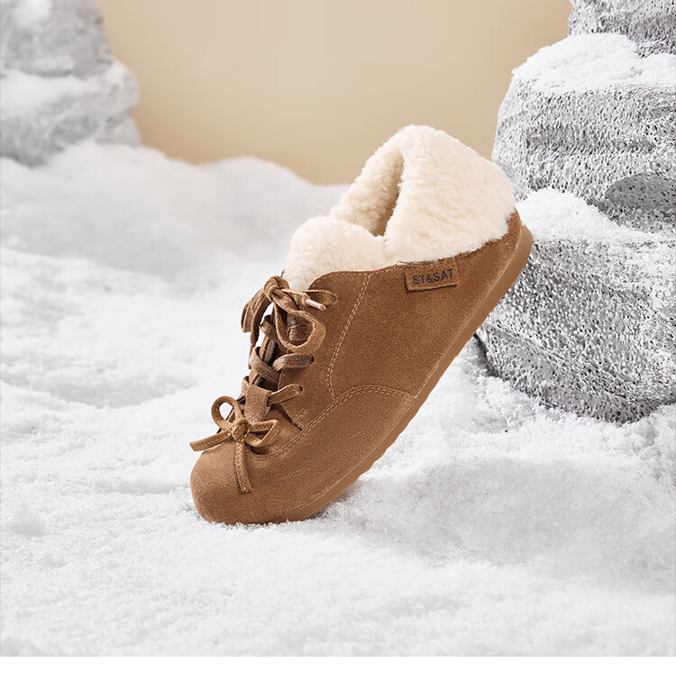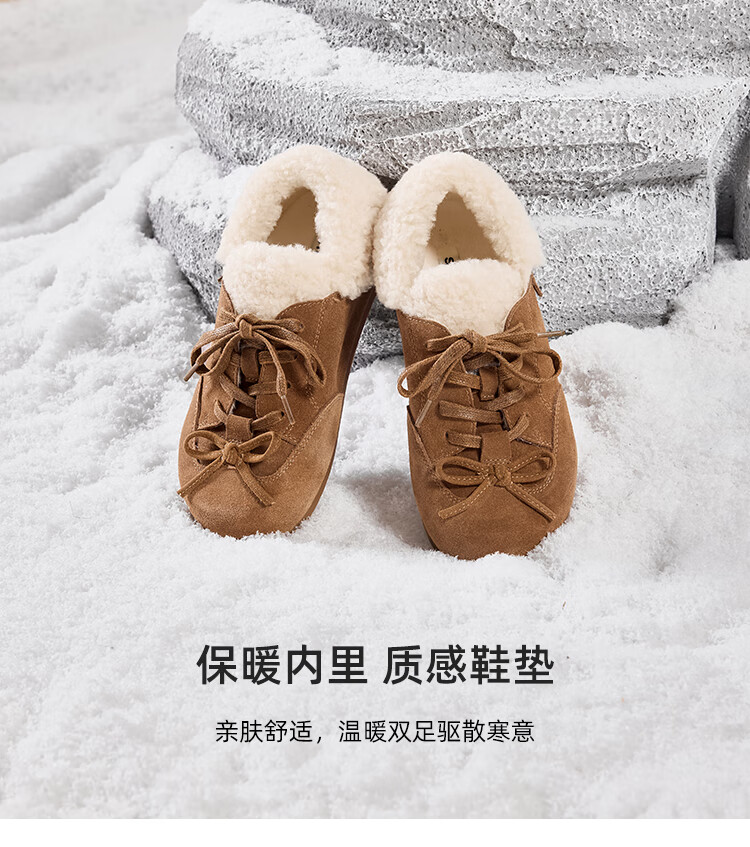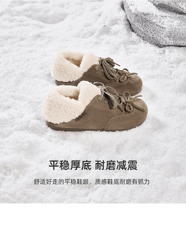 星期六(St&Sat)加绒勃肯鞋女2025新款冬季女鞋加厚保暖棉鞋防滑东北雪地靴 棕色 38