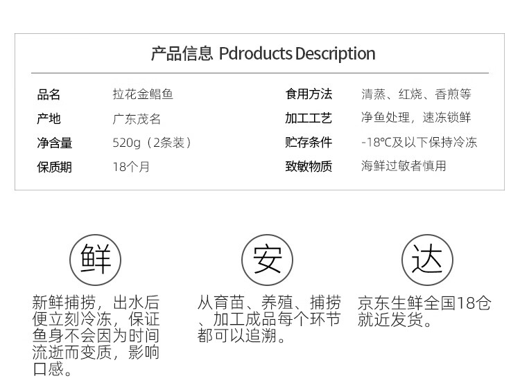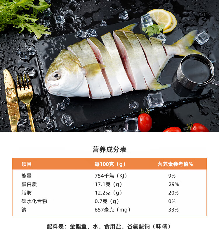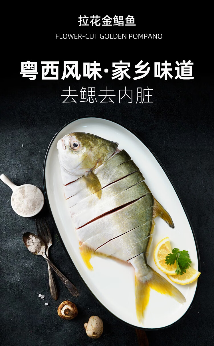 环球水产一夜埕二去金鲳鱼520g/2条装 去鳃去内脏 鱼类生鲜 火锅烧烤食材