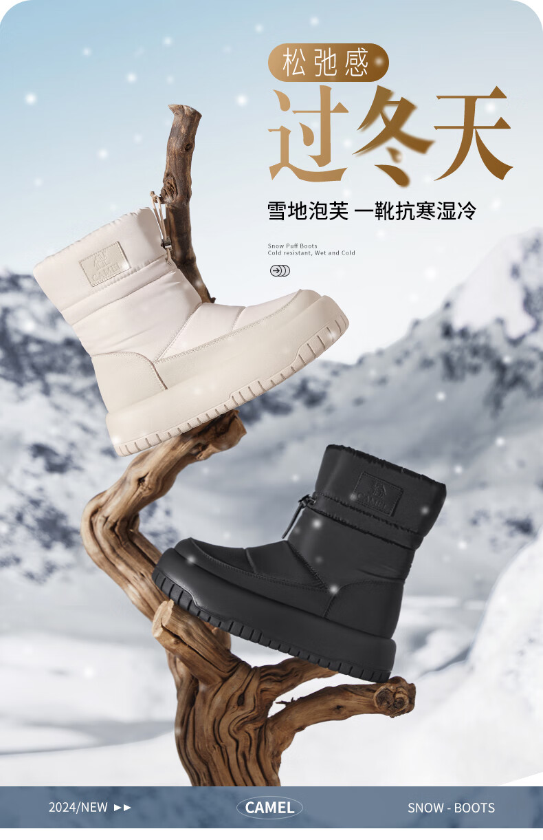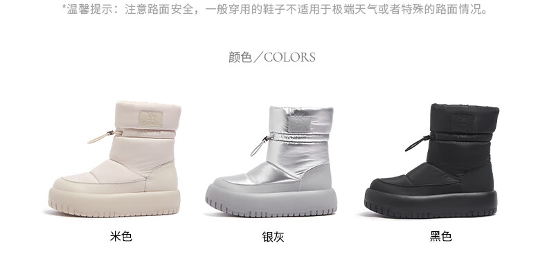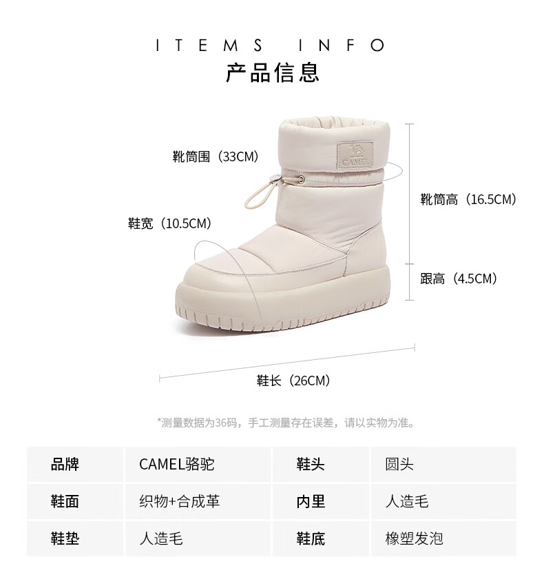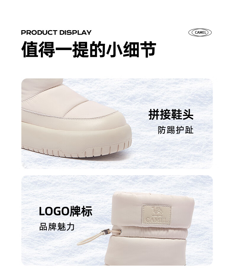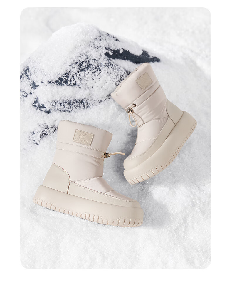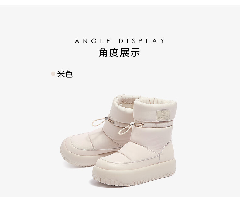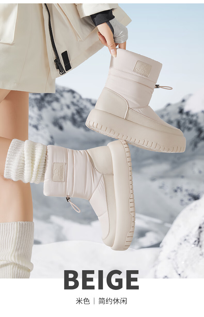 骆驼(CAMEL)雪地靴女简约厚底束带秋冬中筒保暖靴 L23W577074 米色 38