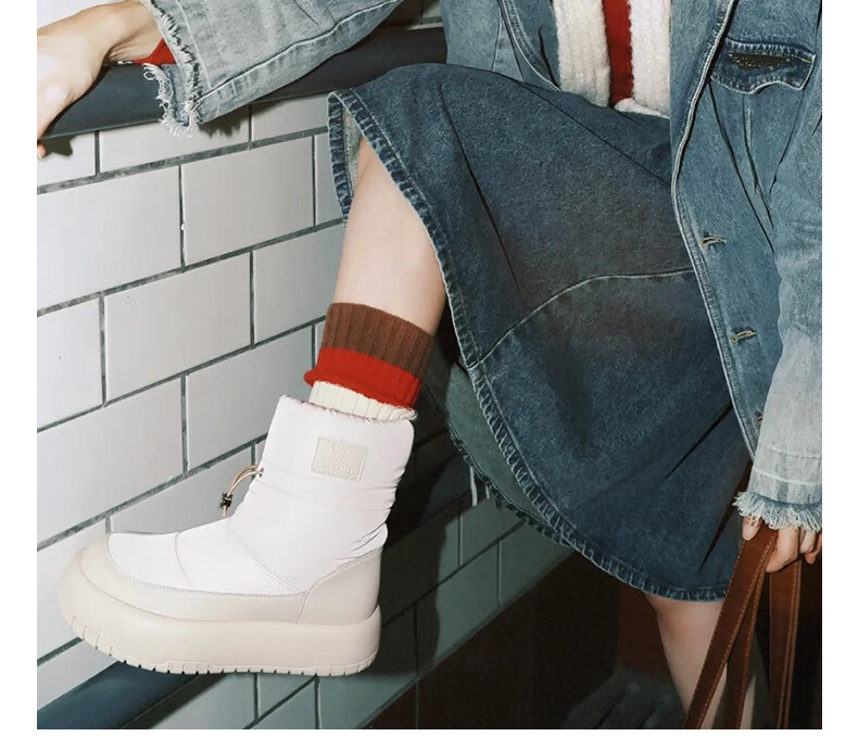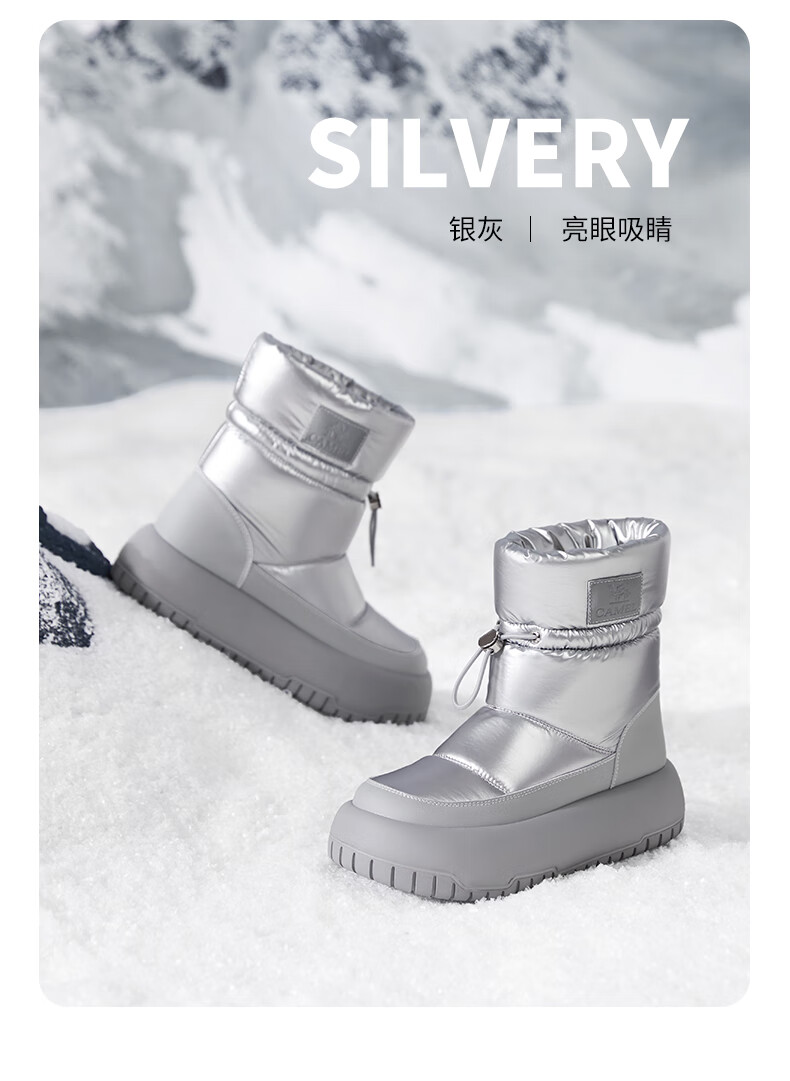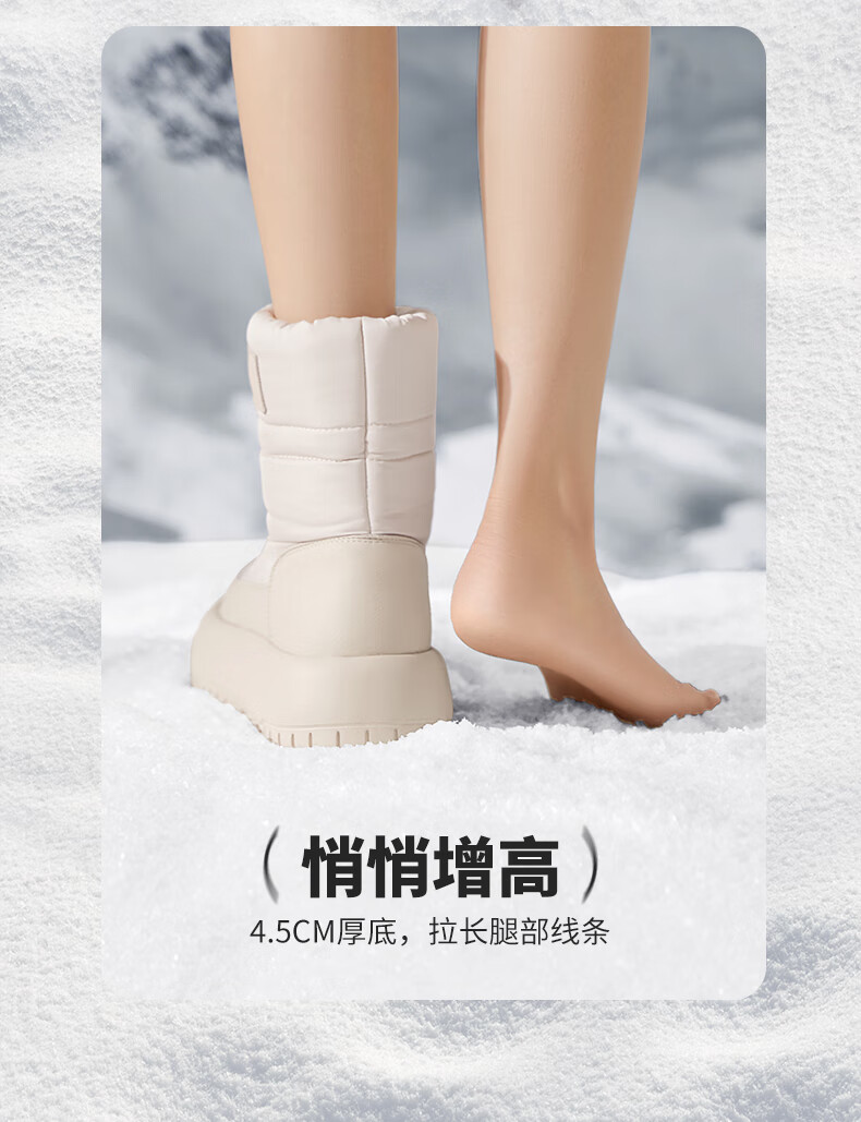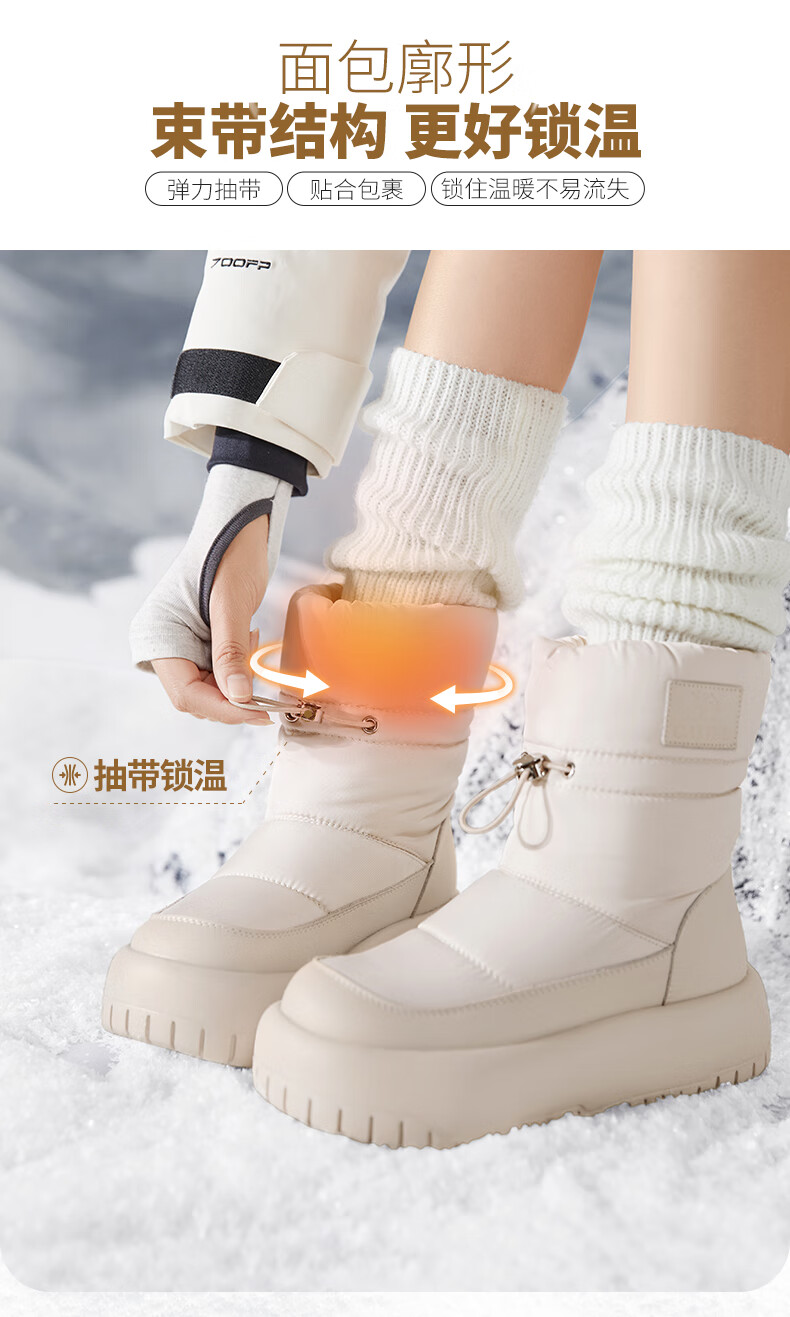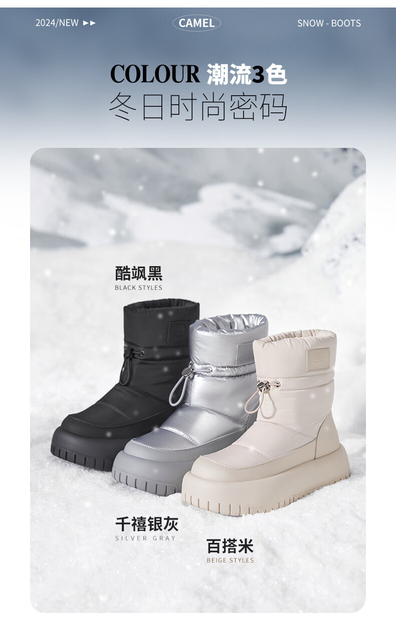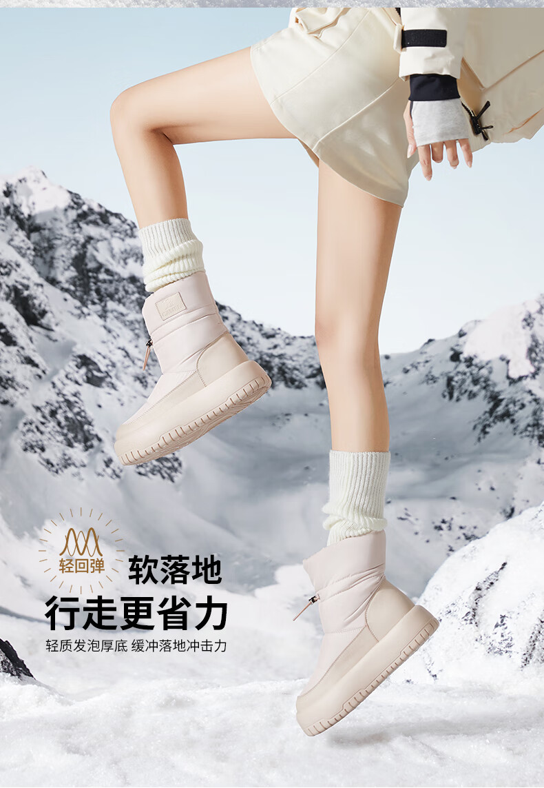 骆驼(CAMEL)雪地靴女简约厚底束带秋冬中筒保暖靴 L23W577074 米色 38