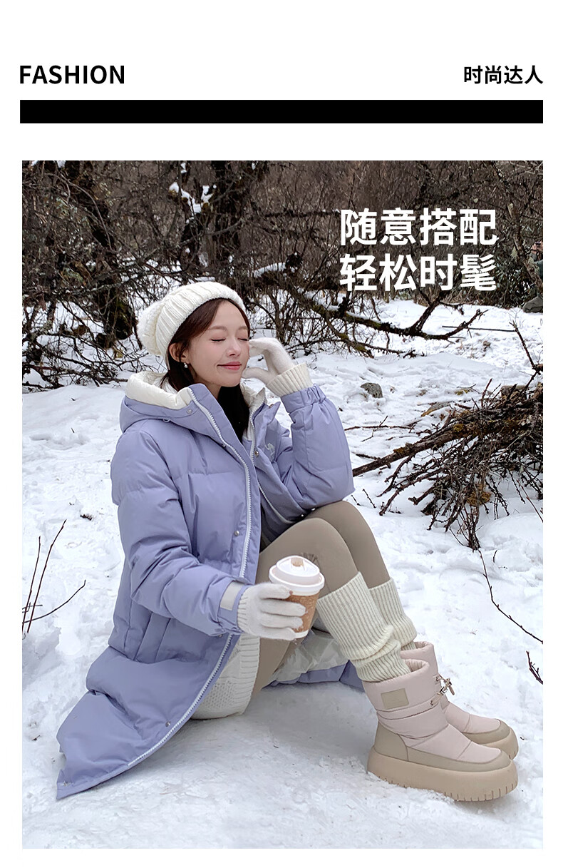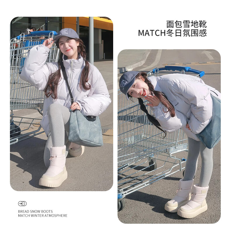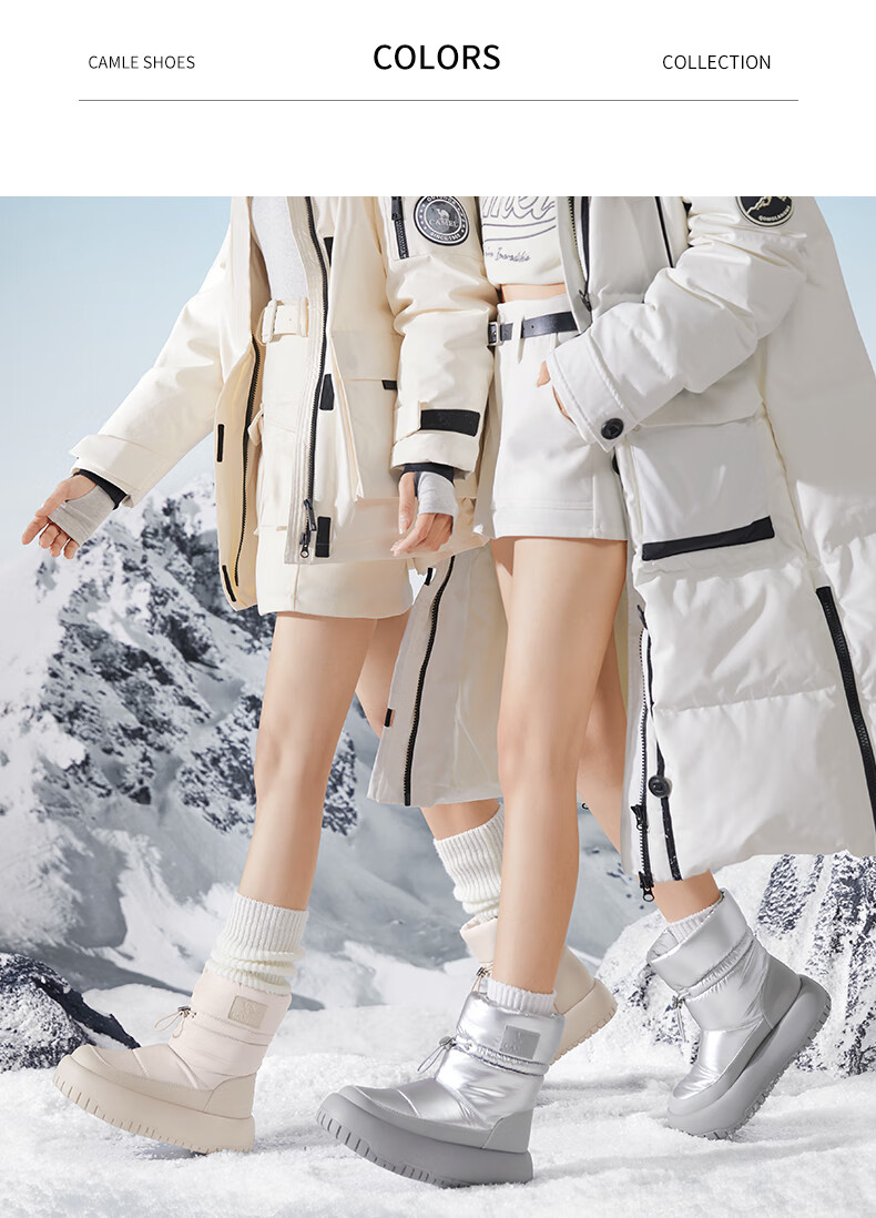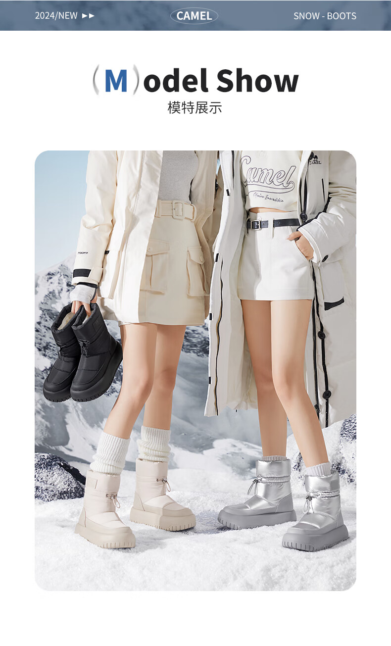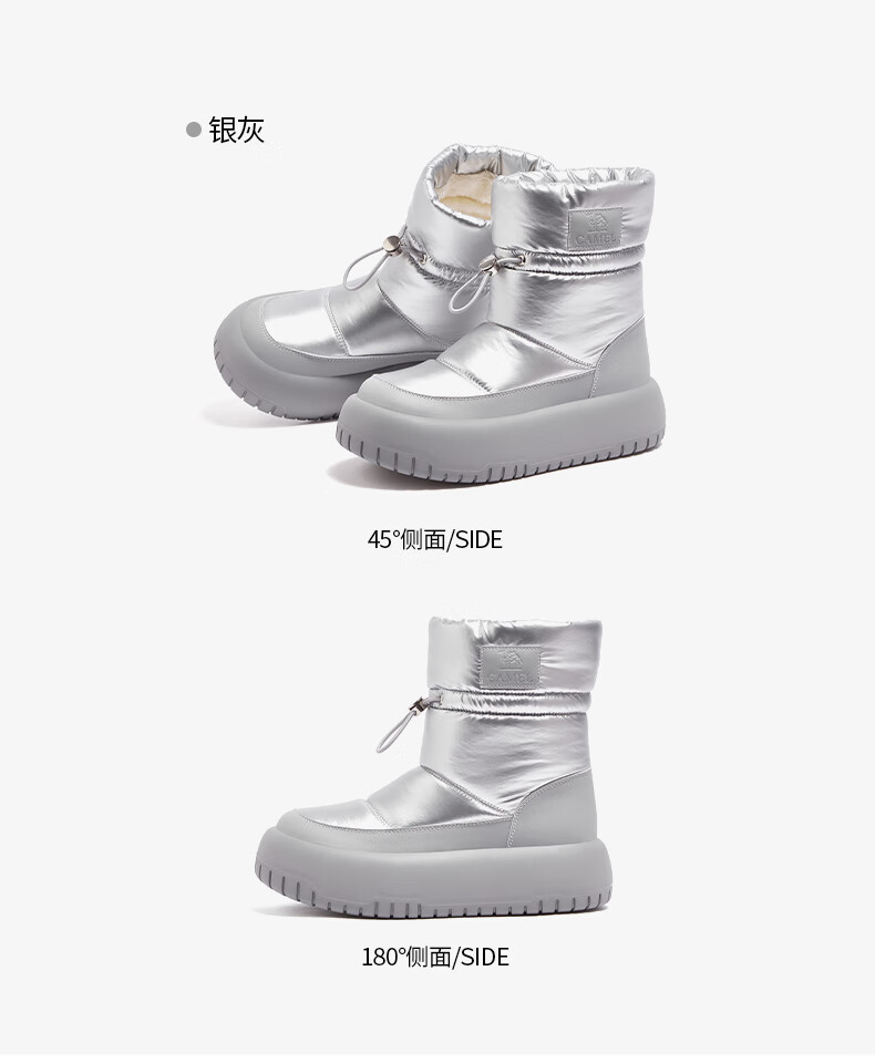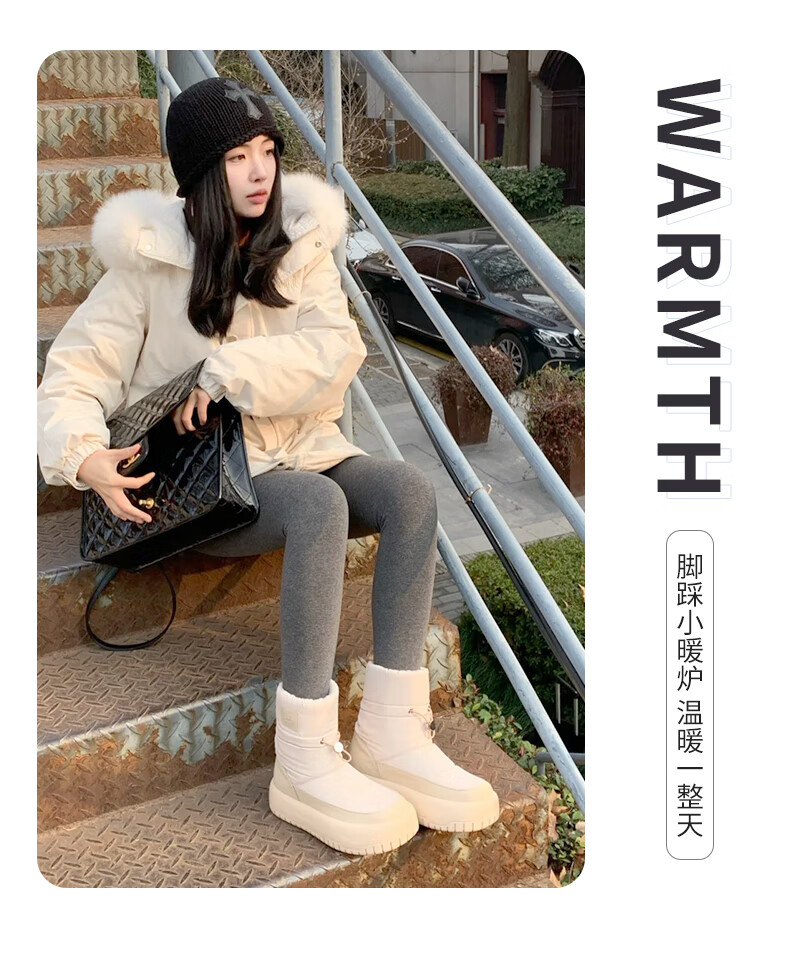 骆驼(CAMEL)雪地靴女简约厚底束带秋冬中筒保暖靴 L23W577074 米色 38