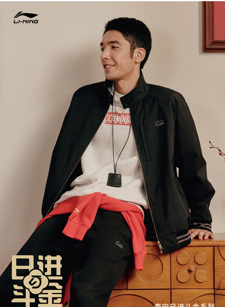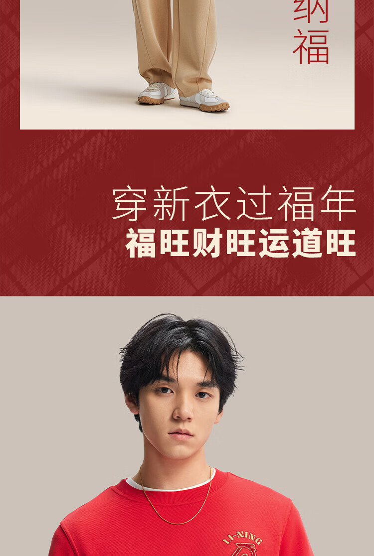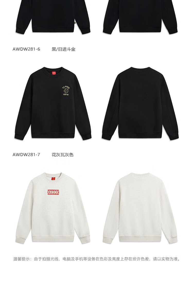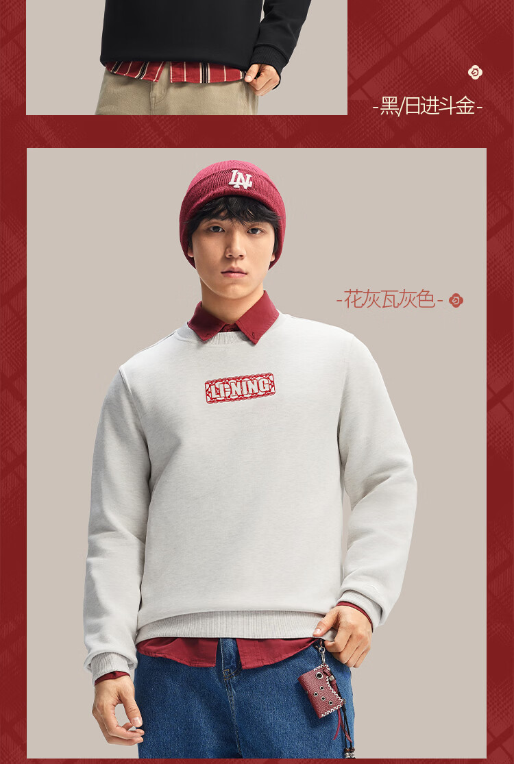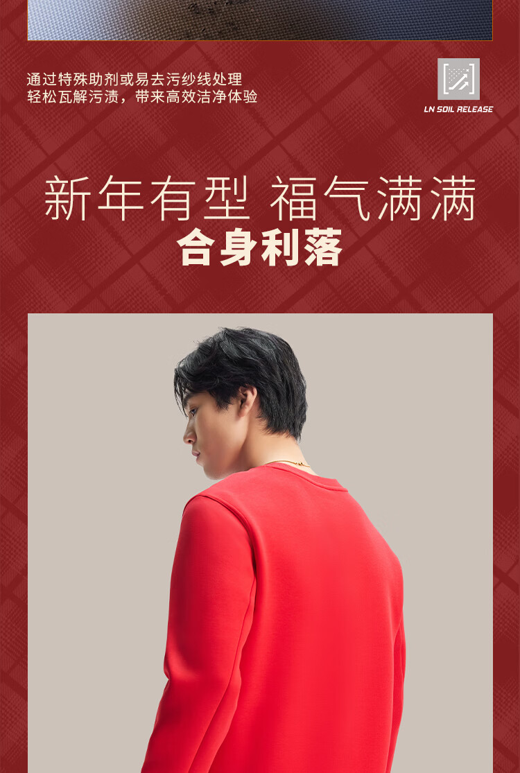 李宁肖战同款日进斗金系列易去污套头无帽圆领卫衣男新年休闲运动上衣 朱砂红-4 XL