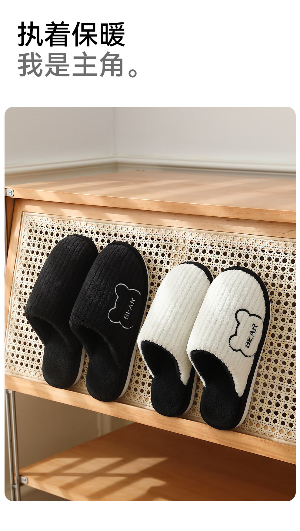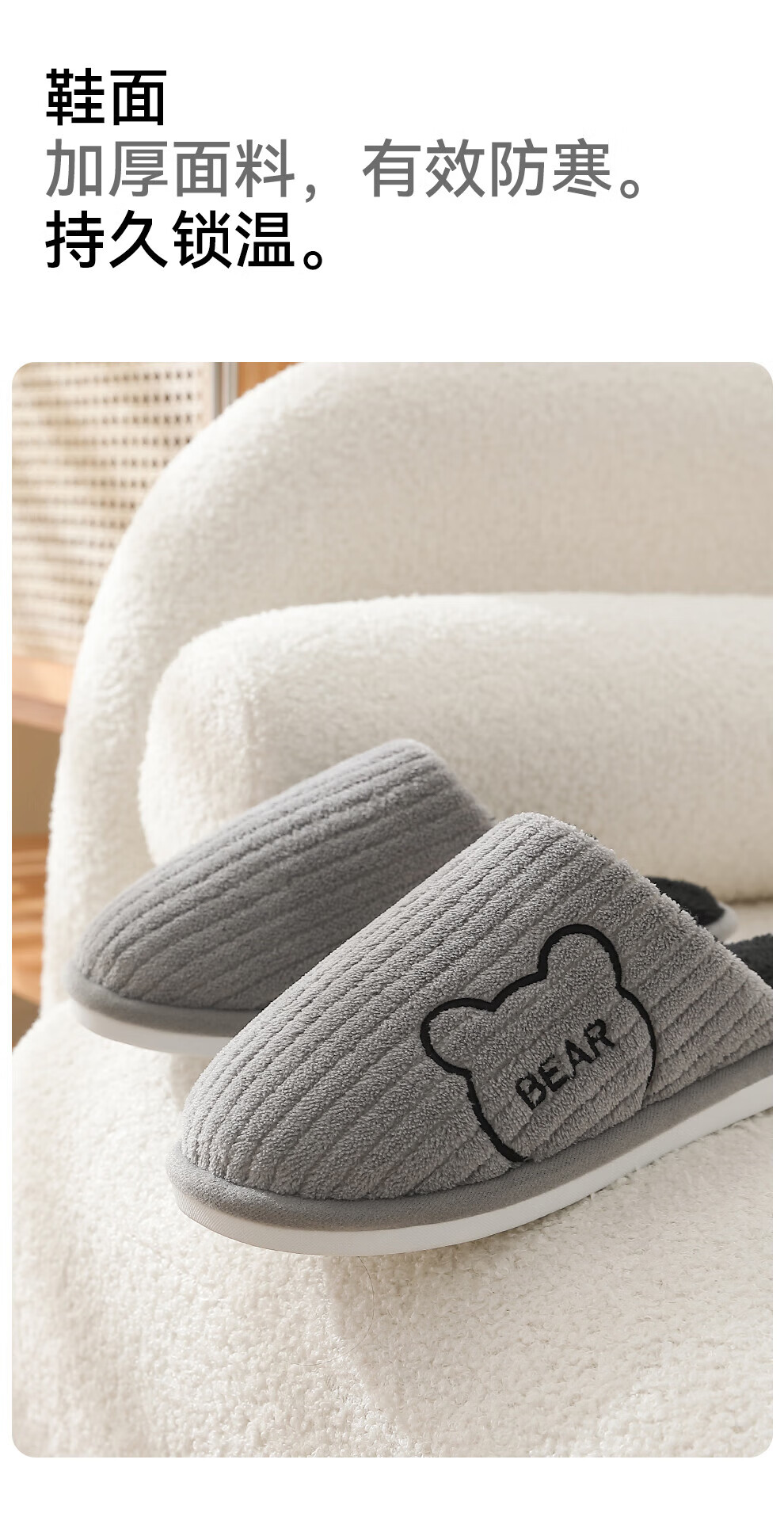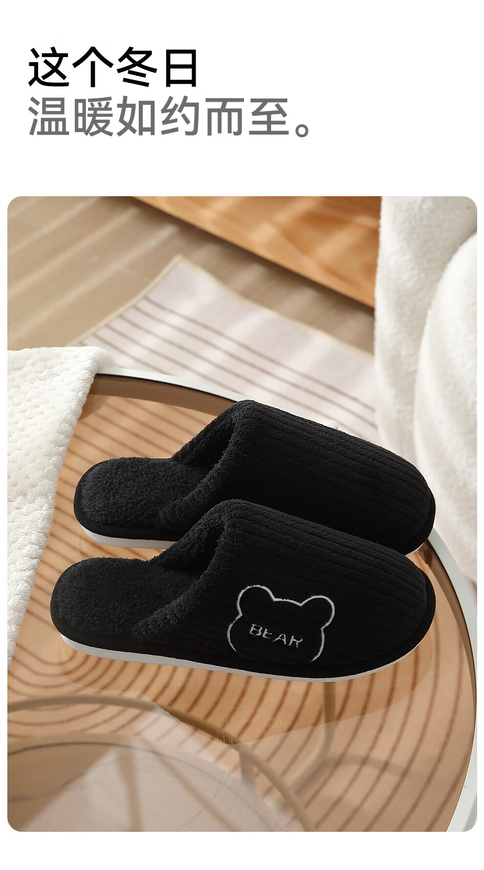 FZT抗菌防臭棉拖鞋女士新款2025秋冬季保暖毛绒简约舒适居家棉鞋男 黑色 44-45 偏小一码43-44