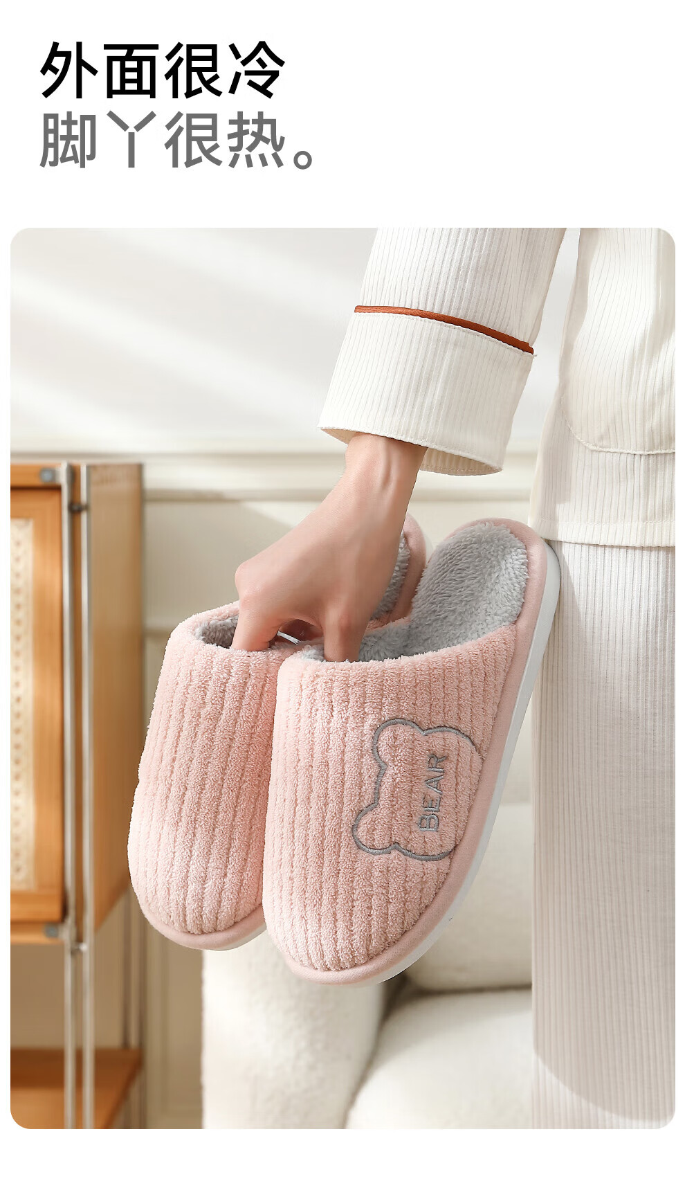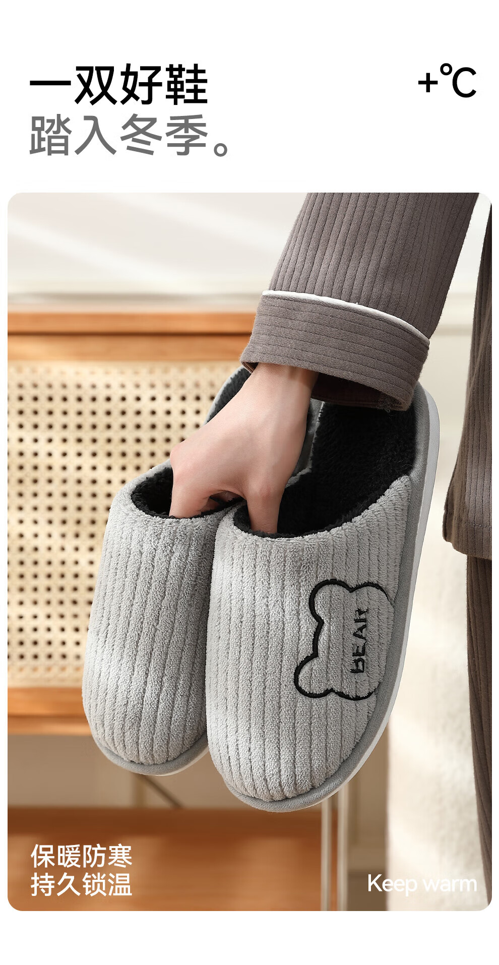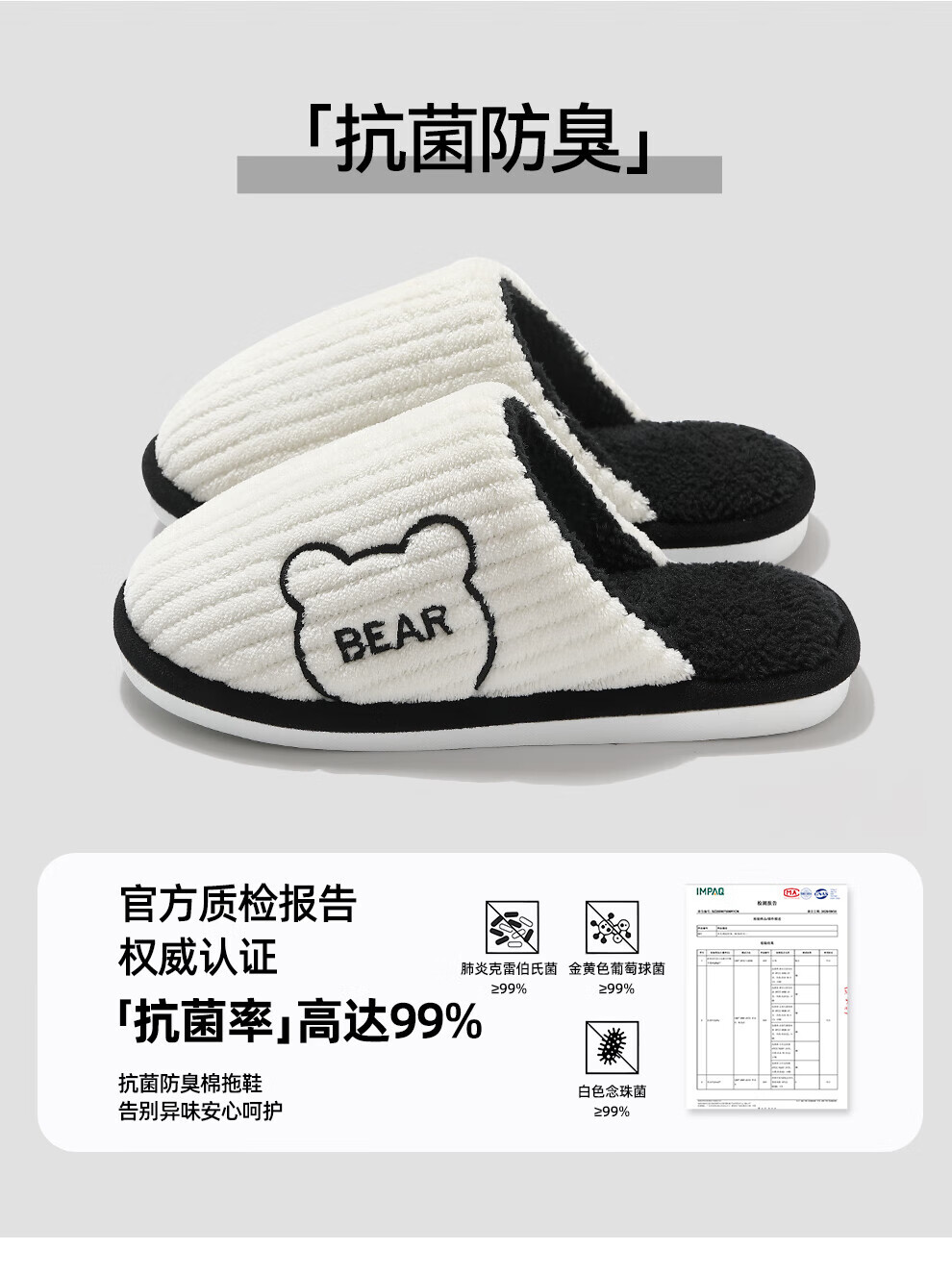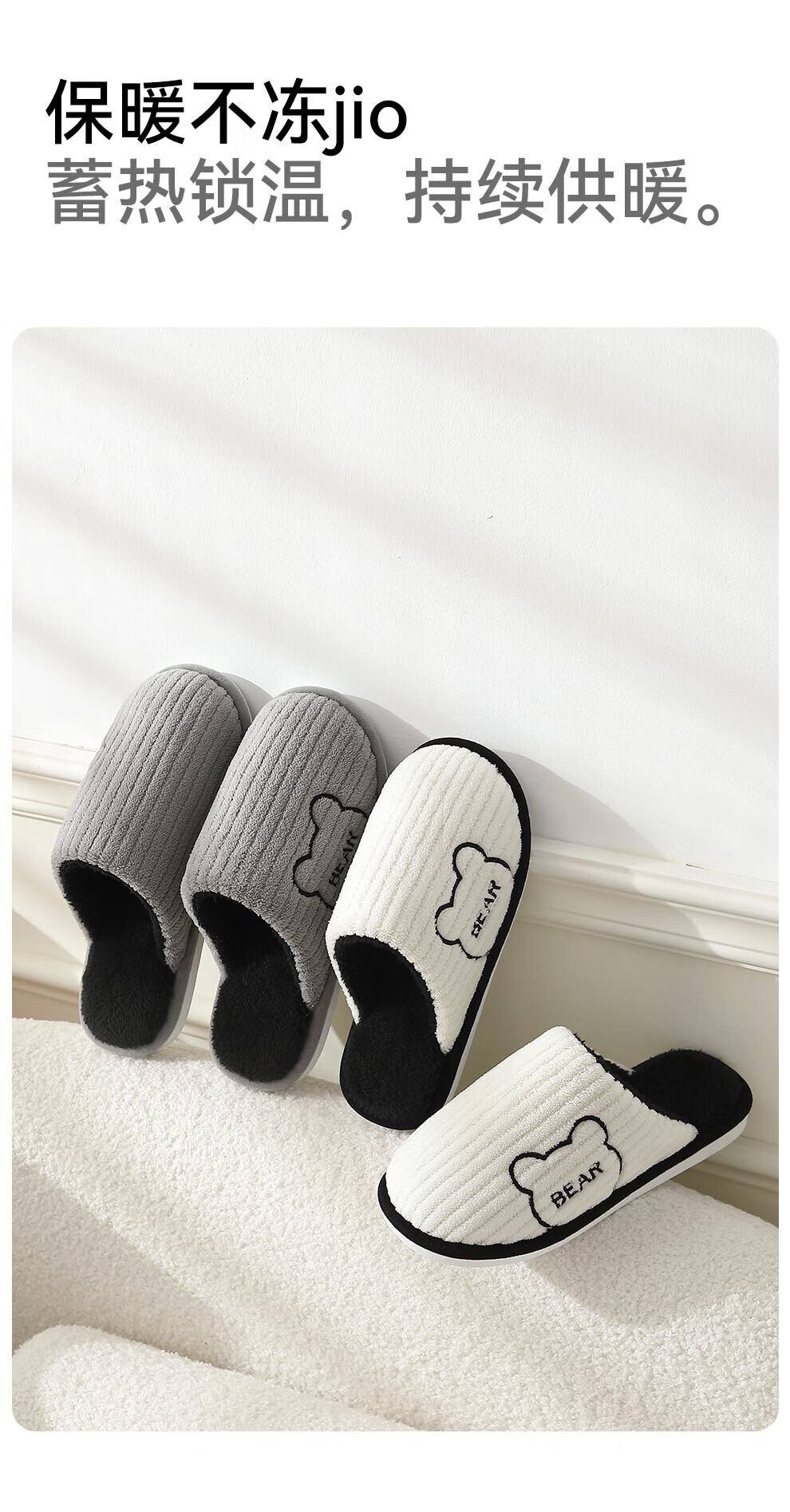 FZT抗菌防臭棉拖鞋女士新款2025秋冬季保暖毛绒简约舒适居家棉鞋男 黑色 44-45 偏小一码43-44