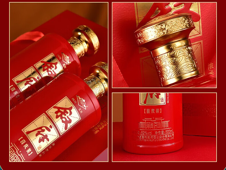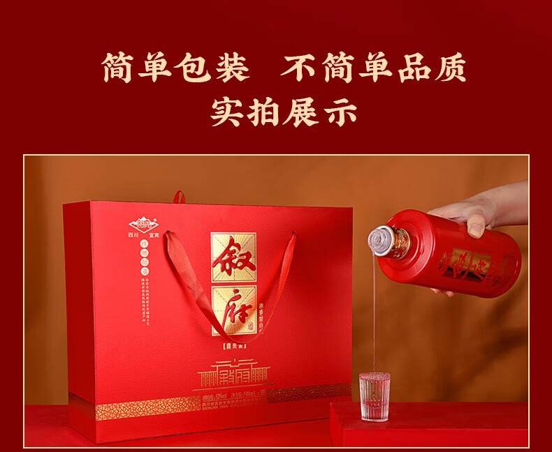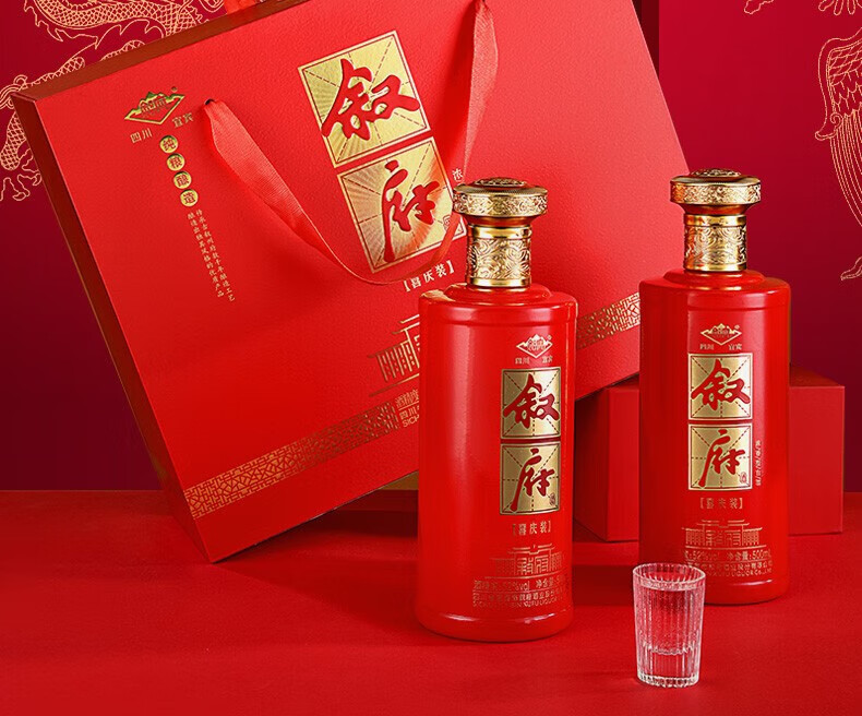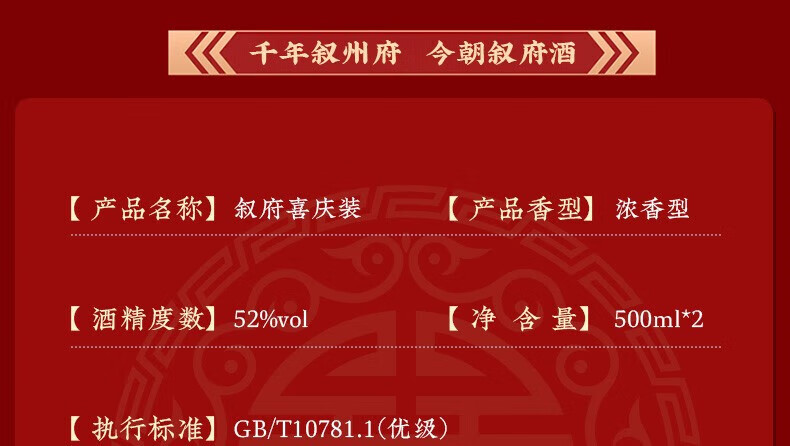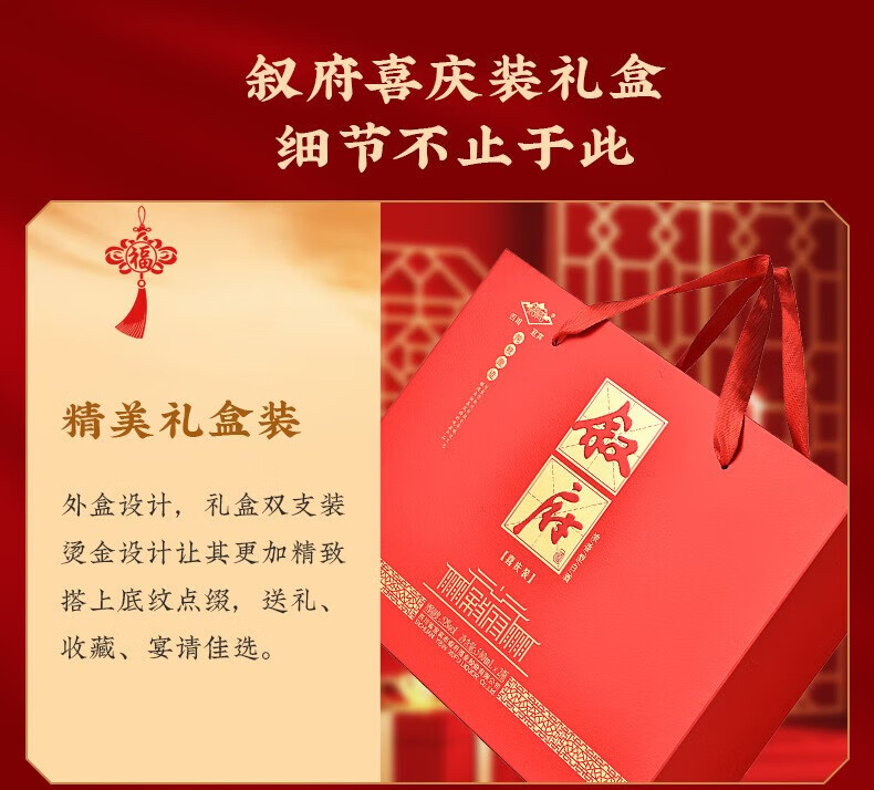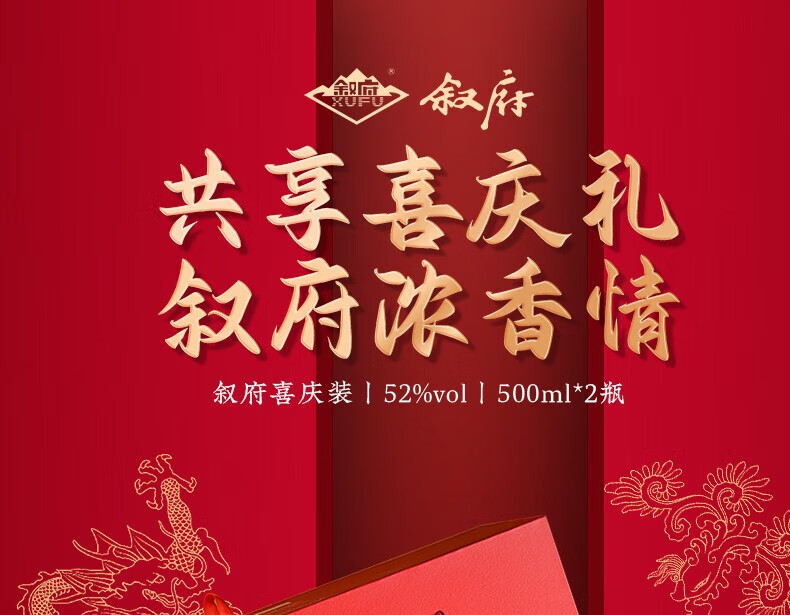 叙府酒 喜庆礼盒酒 浓香型白酒 婚宴喜酒 国产高度白酒 长辈送礼 52度 500mL 2瓶 礼盒装