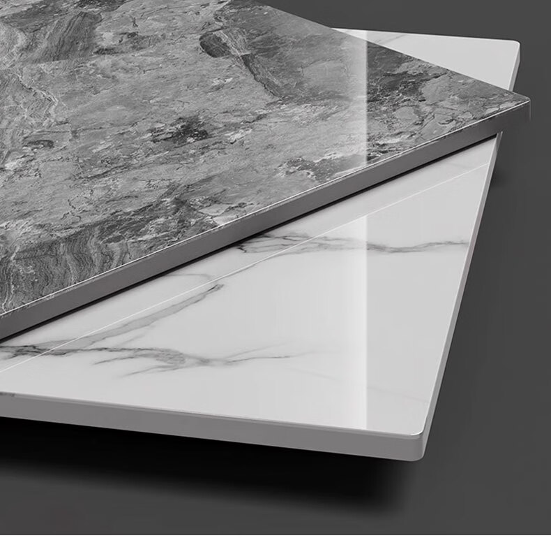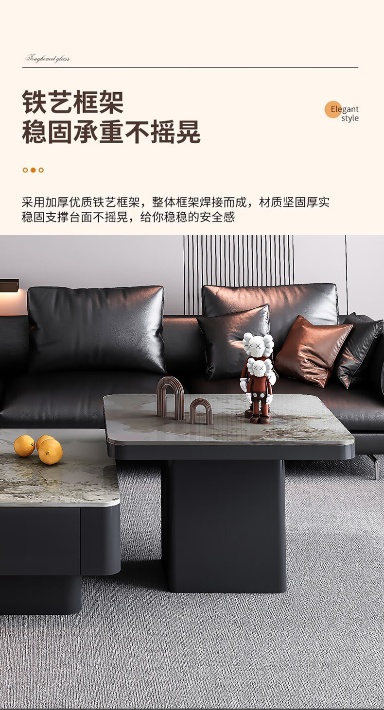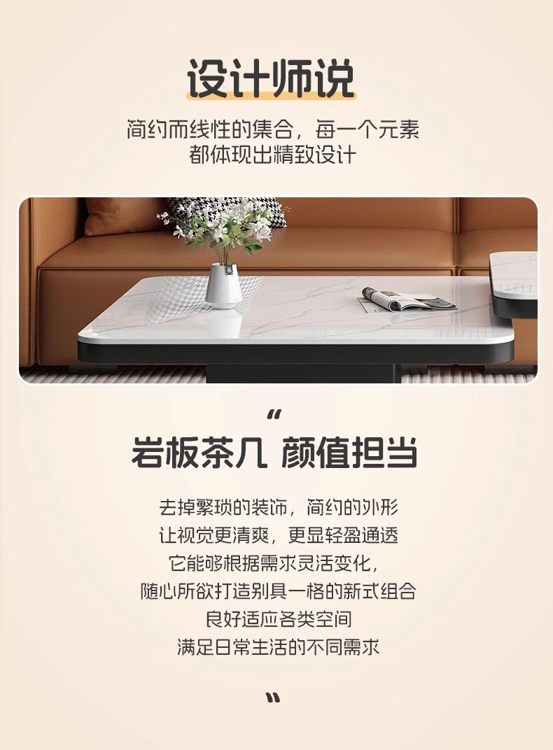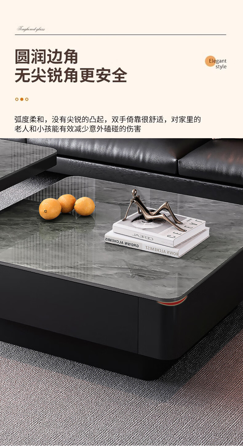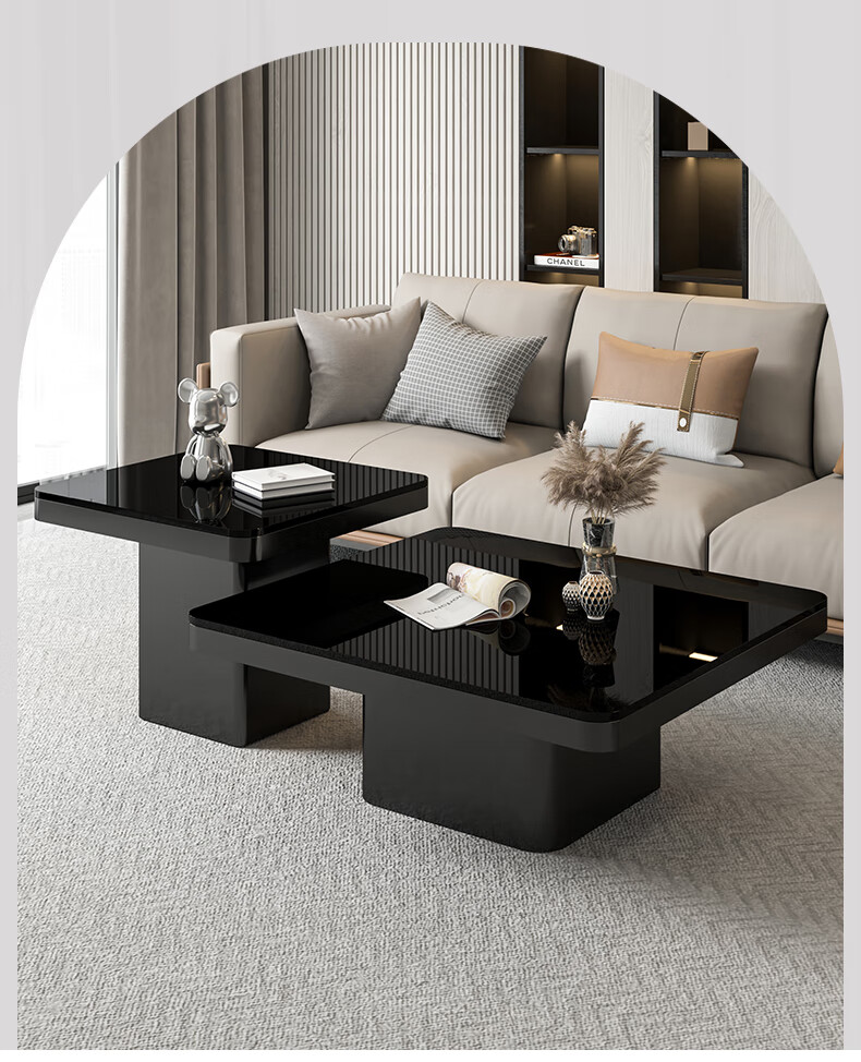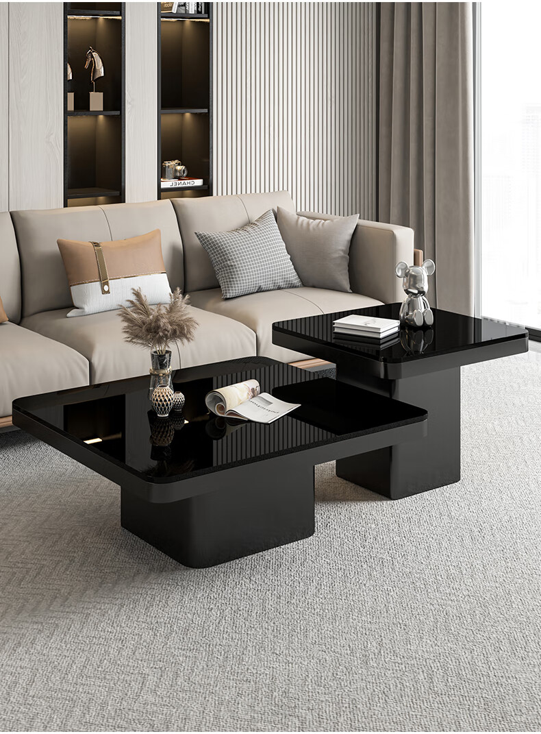 硕凡意式高级轻奢岩板正方形现代小户型茶几家用客厅黑色极简简约组合 双抽屉款-鱼肚白岩板【80+60】cm