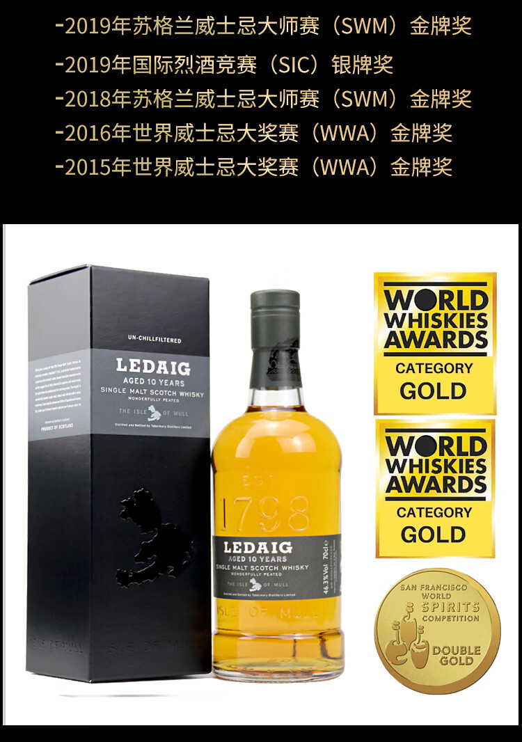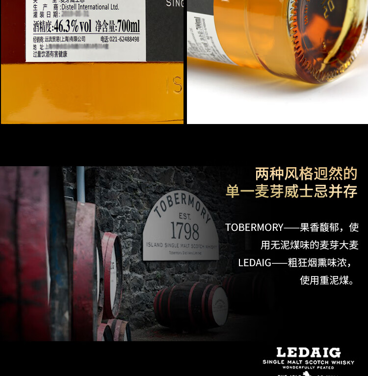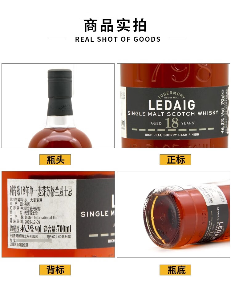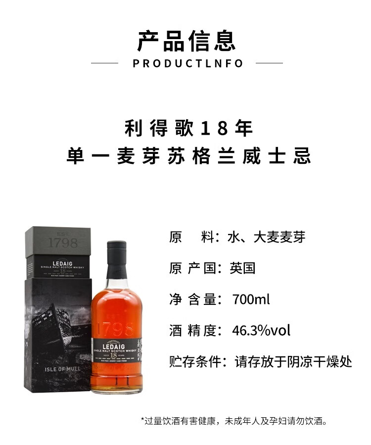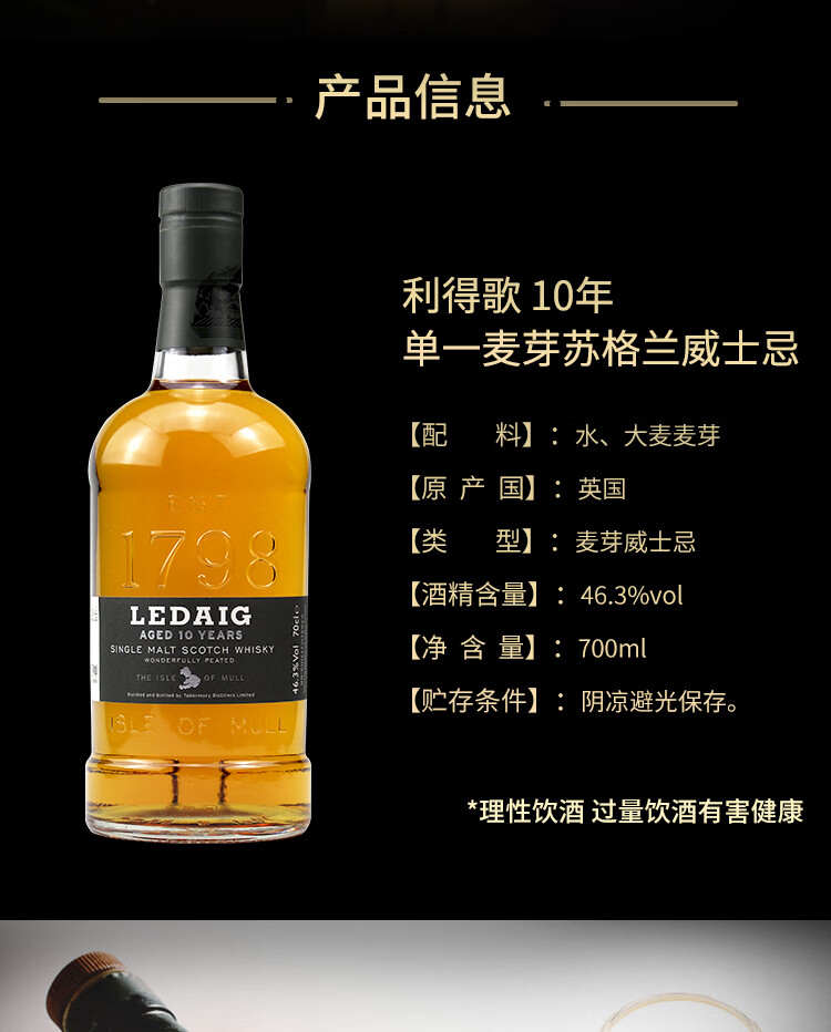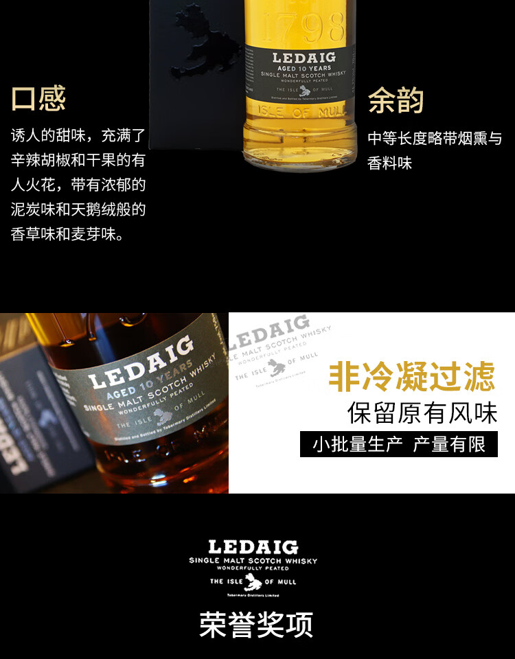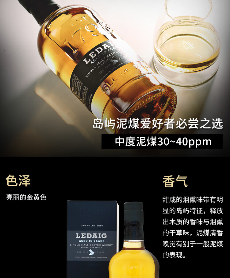 利得歌LEDAIG里爵利得歌18年单一麦芽苏格兰威士忌英国原装洋酒 里爵10年(利得歌10年)