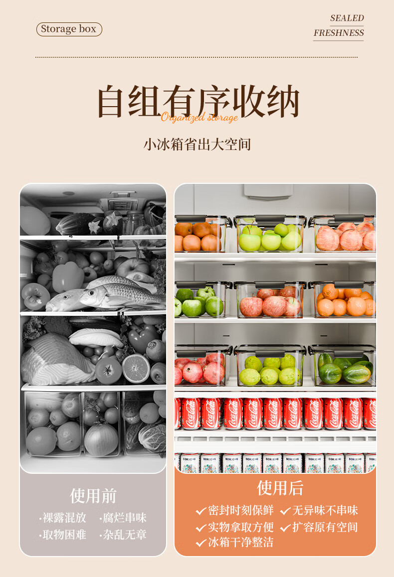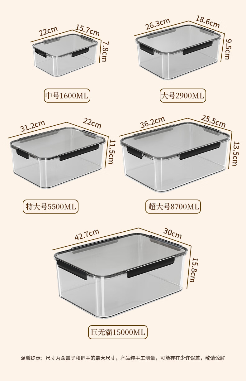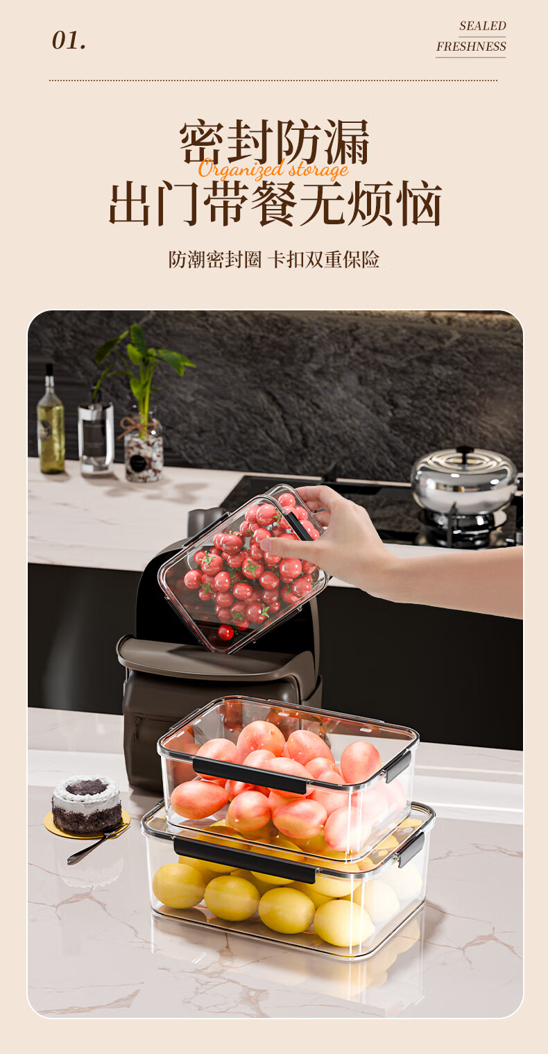 稻草熊(DOCOXO)保鲜盒密封零食水果干货储物盒冰箱收纳整理盒子大容量 2900ML