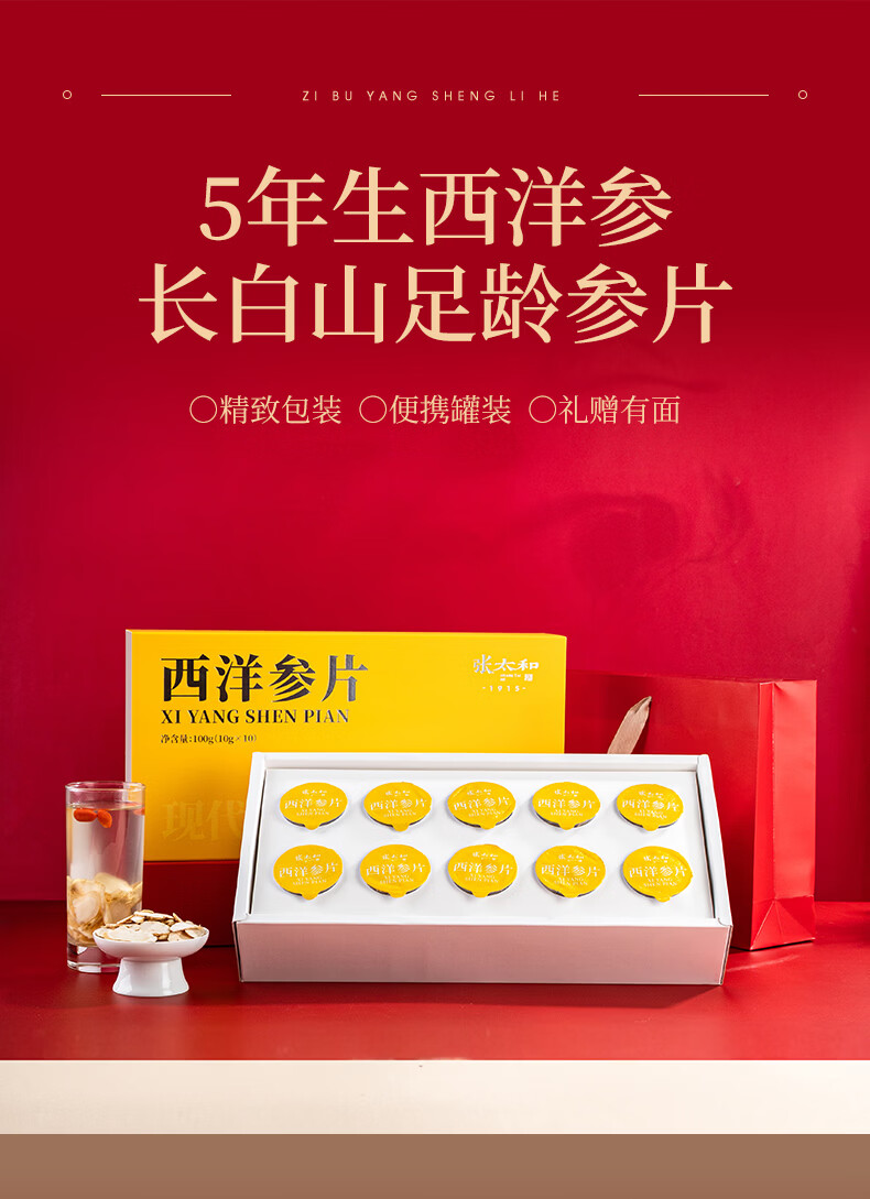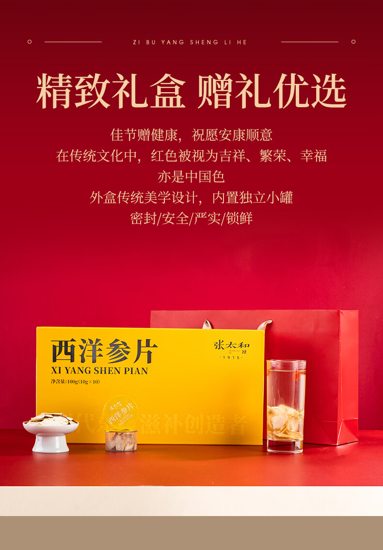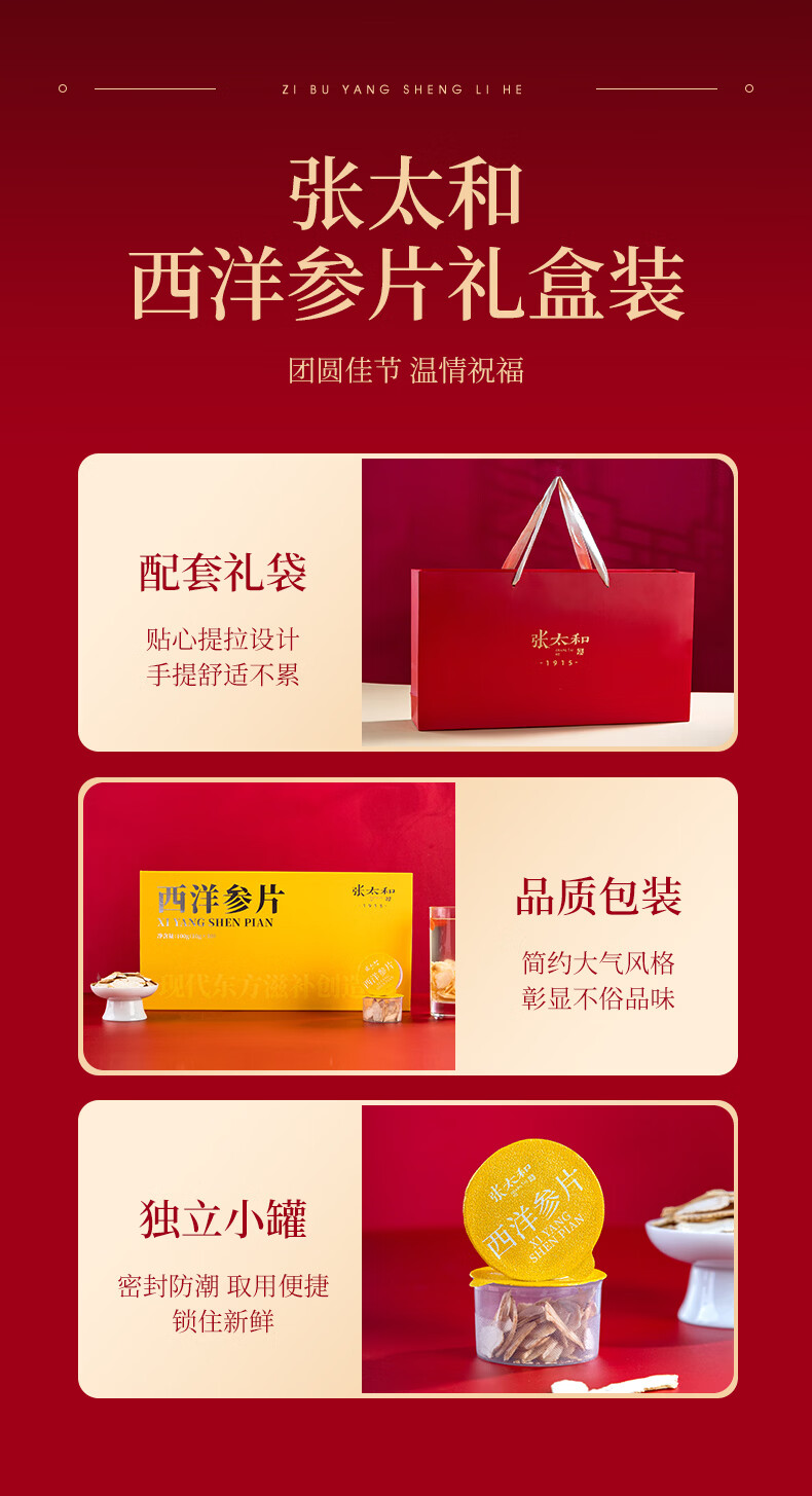 张太和西洋参片独立小罐精品礼盒100g 吉林长白山西洋参片泡水送礼袋 西洋参片礼盒 100g*1盒 【赠礼袋】