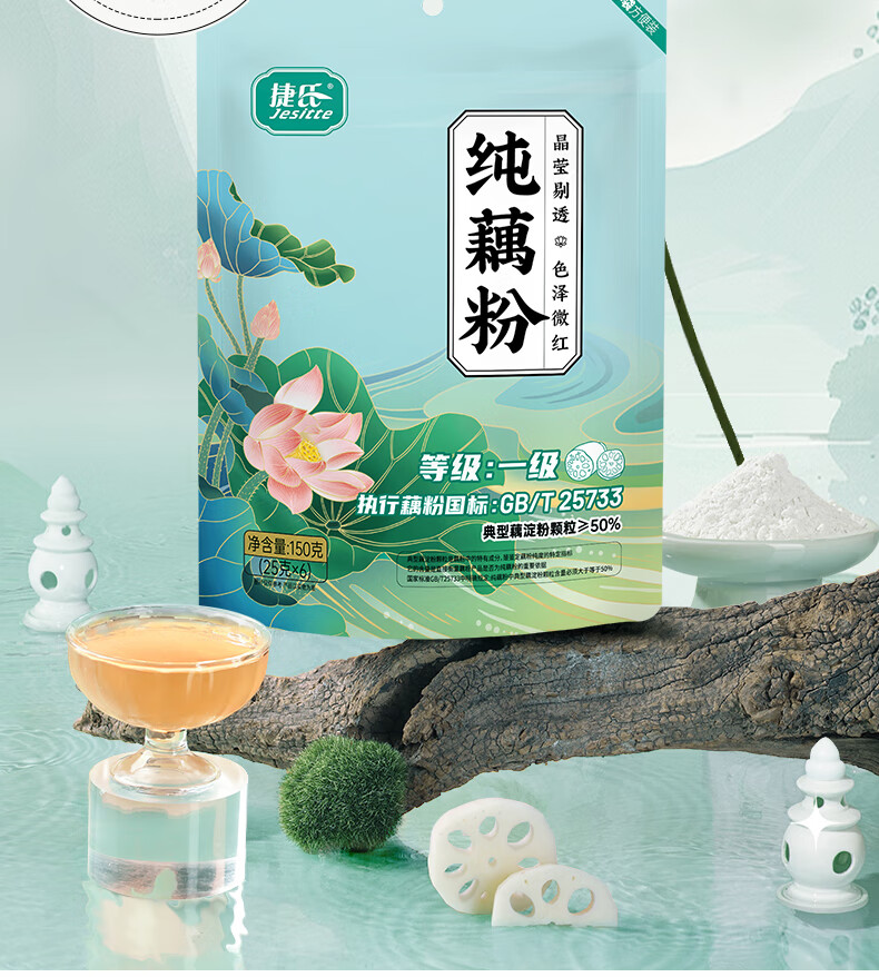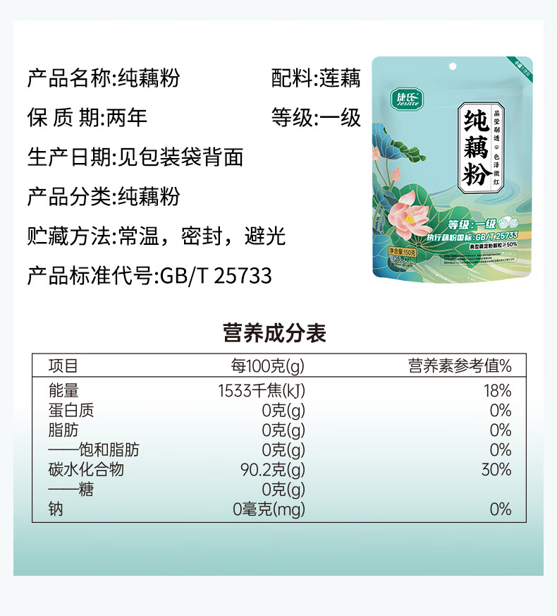 捷氏100%纯藕粉0脂肪无糖添加莲藕粉羹术后恢复代餐营养早餐食品150克