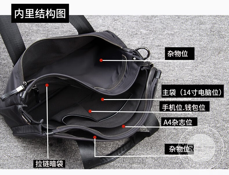 秀迪猫【新款热销】时尚大容量多功能多隔层公文包单肩包可放15.6寸电脑 雾丝-黑色-极速发货 中号