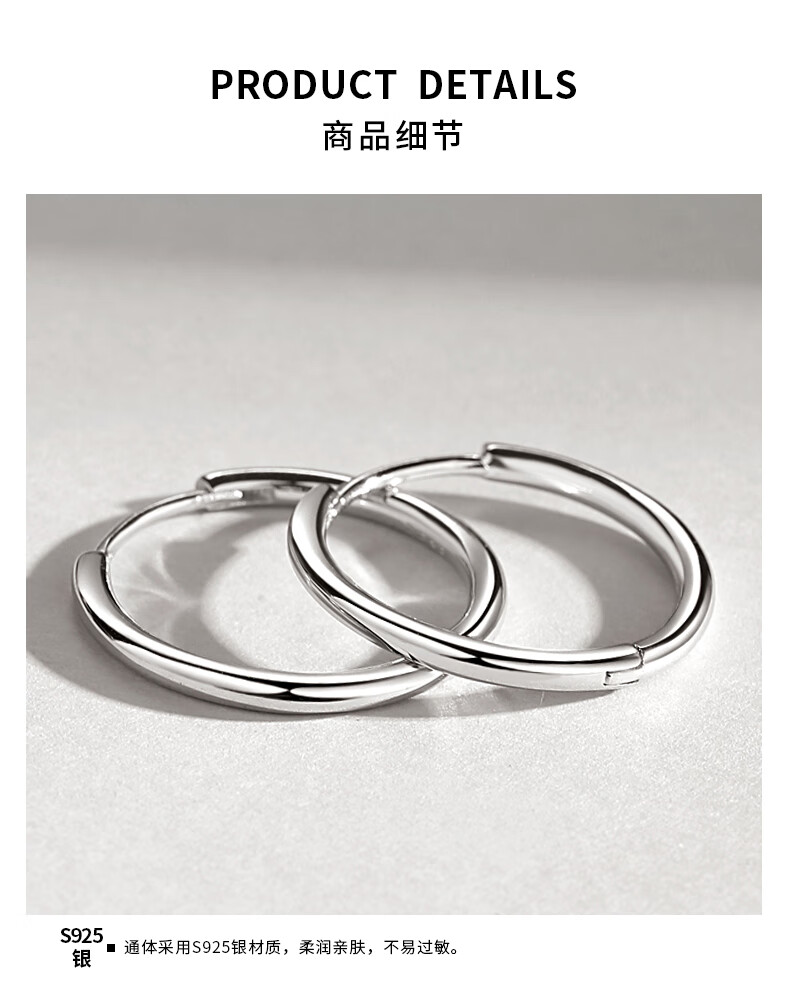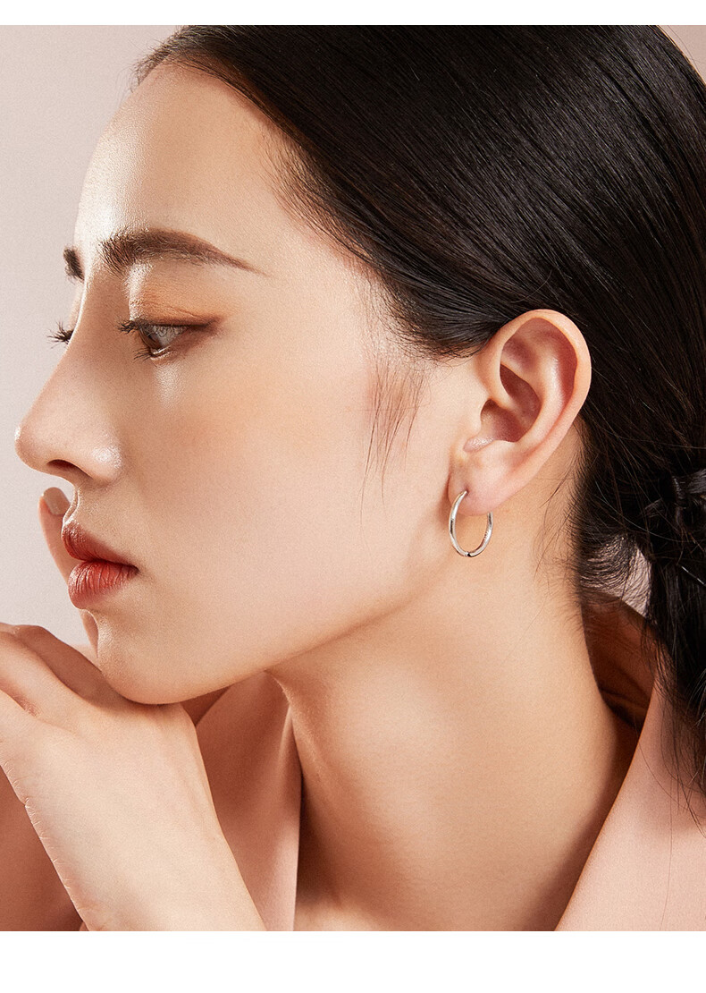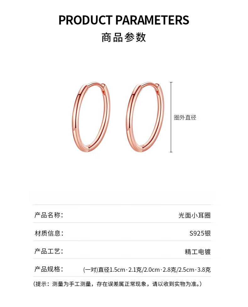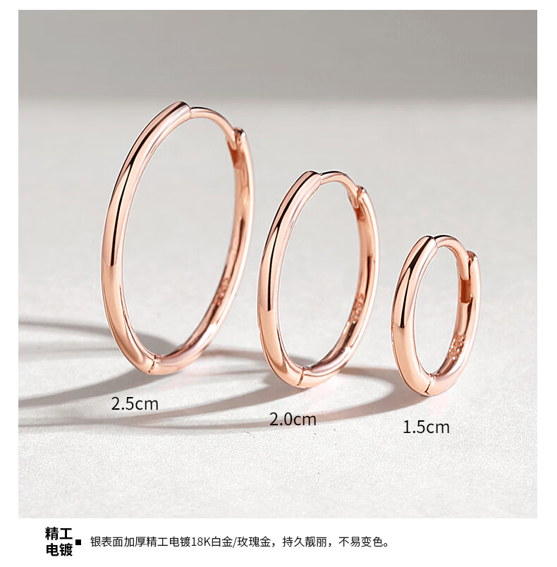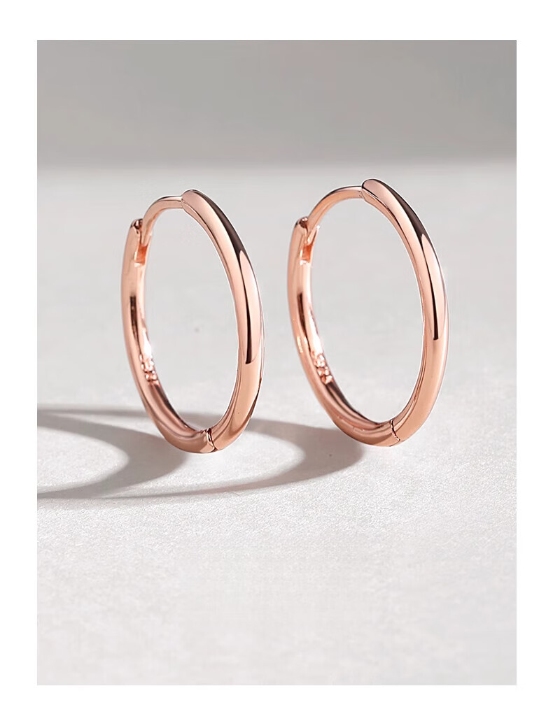 DL 1998胖东来同款18k玫瑰金色耳环素圈银女耳圈耳钉圈圈圆圈耳扣2025新 玫瑰金色2.5cm一对