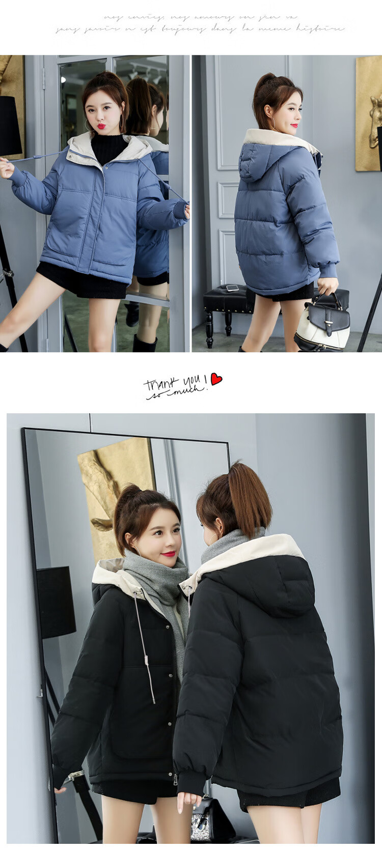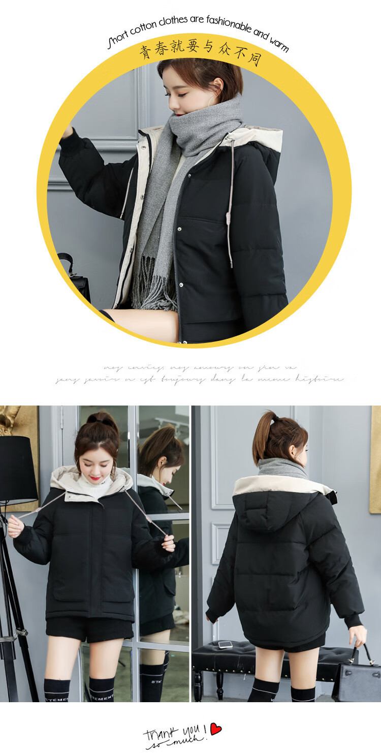 YOUNVFR棉服女短款冬季2025新款韩版学生面包服棉袄宽松加厚棉衣外套 黑色 S (80-95斤)