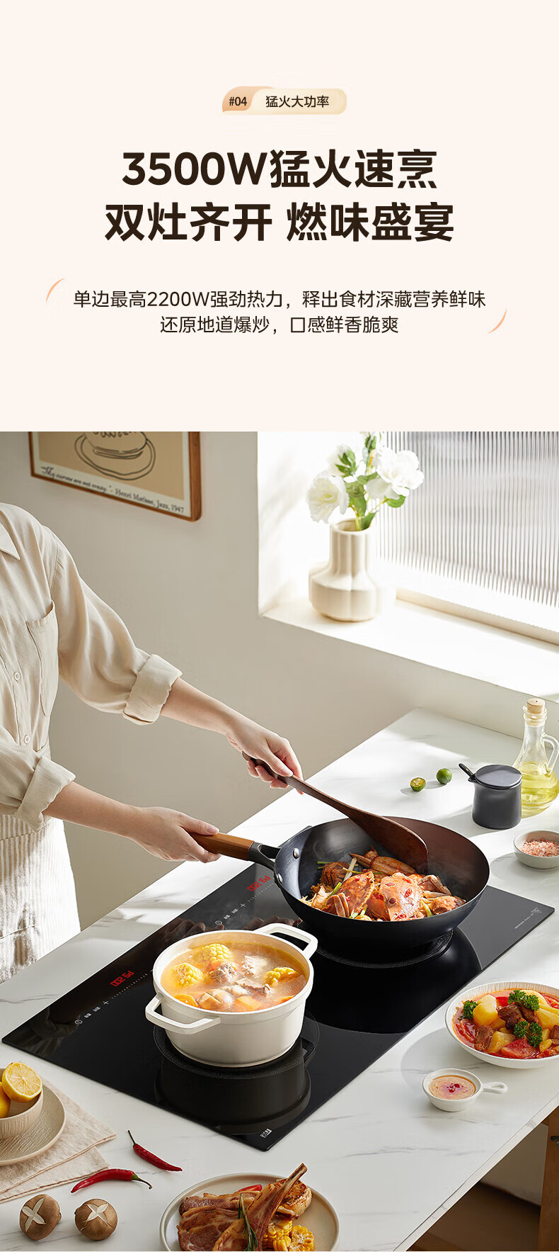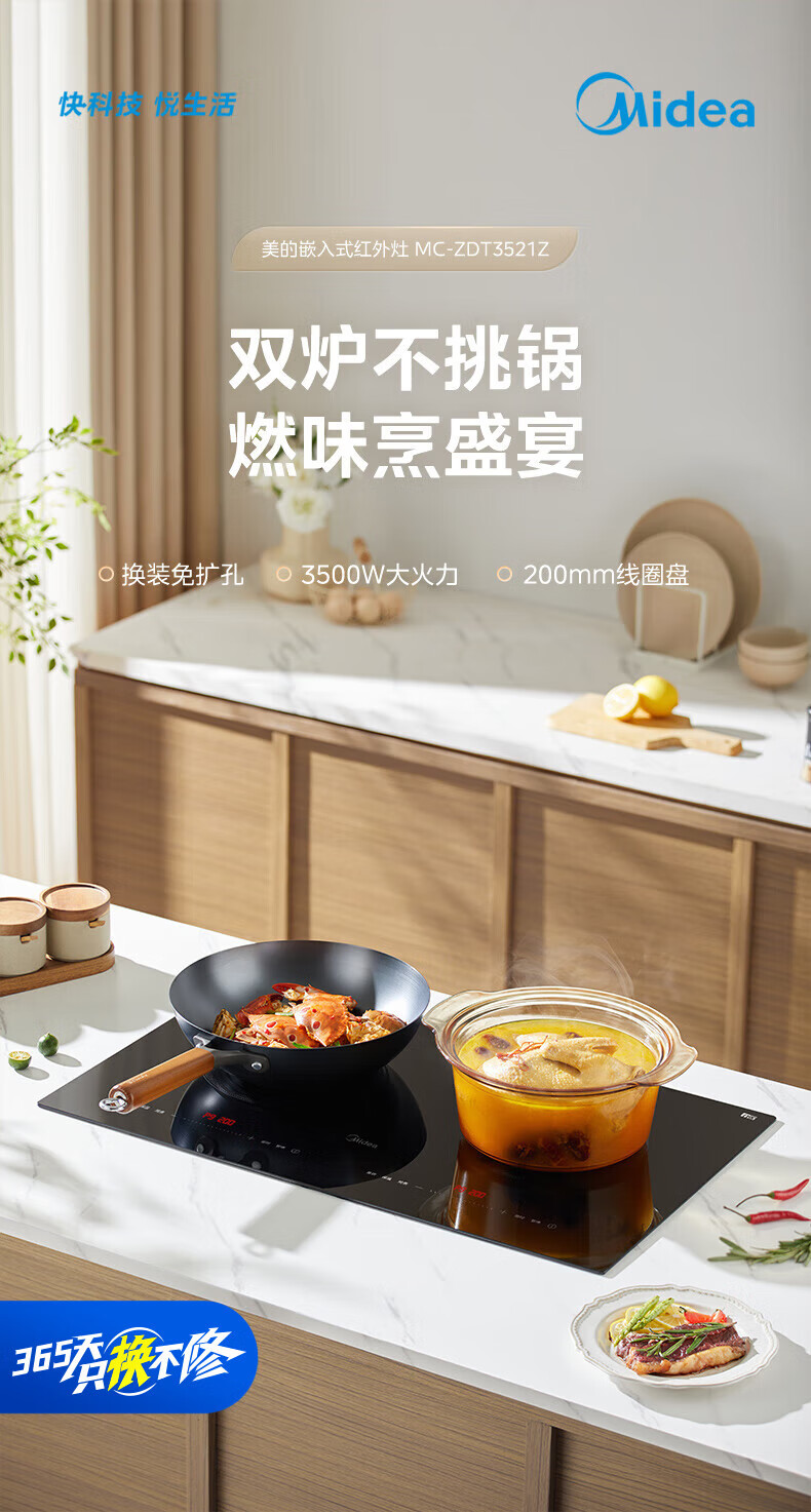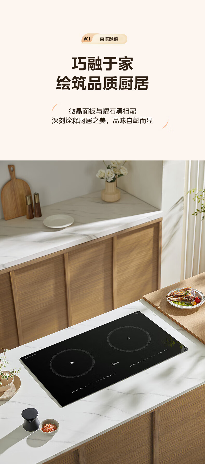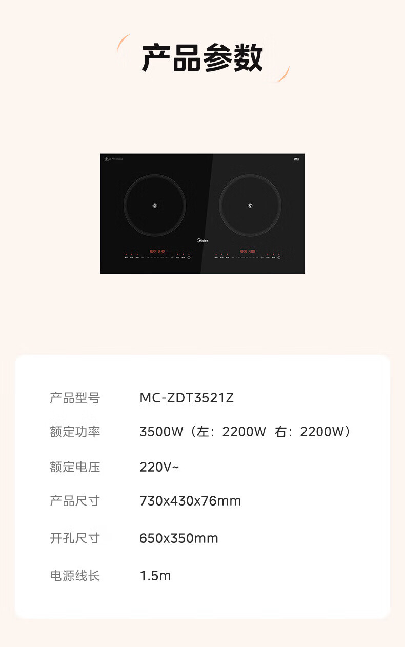 美的(Midea)电磁炉双灶电磁灶家用3500W大功率电陶炉嵌入式定时功能耐用大面板滑触精控 MC-ZDT3521Z 电磁炉 MC-ZDT3521Z