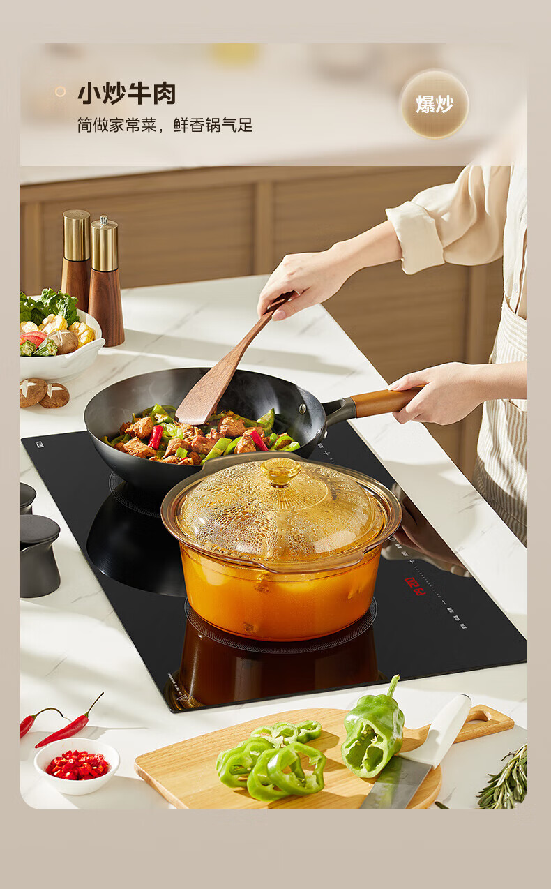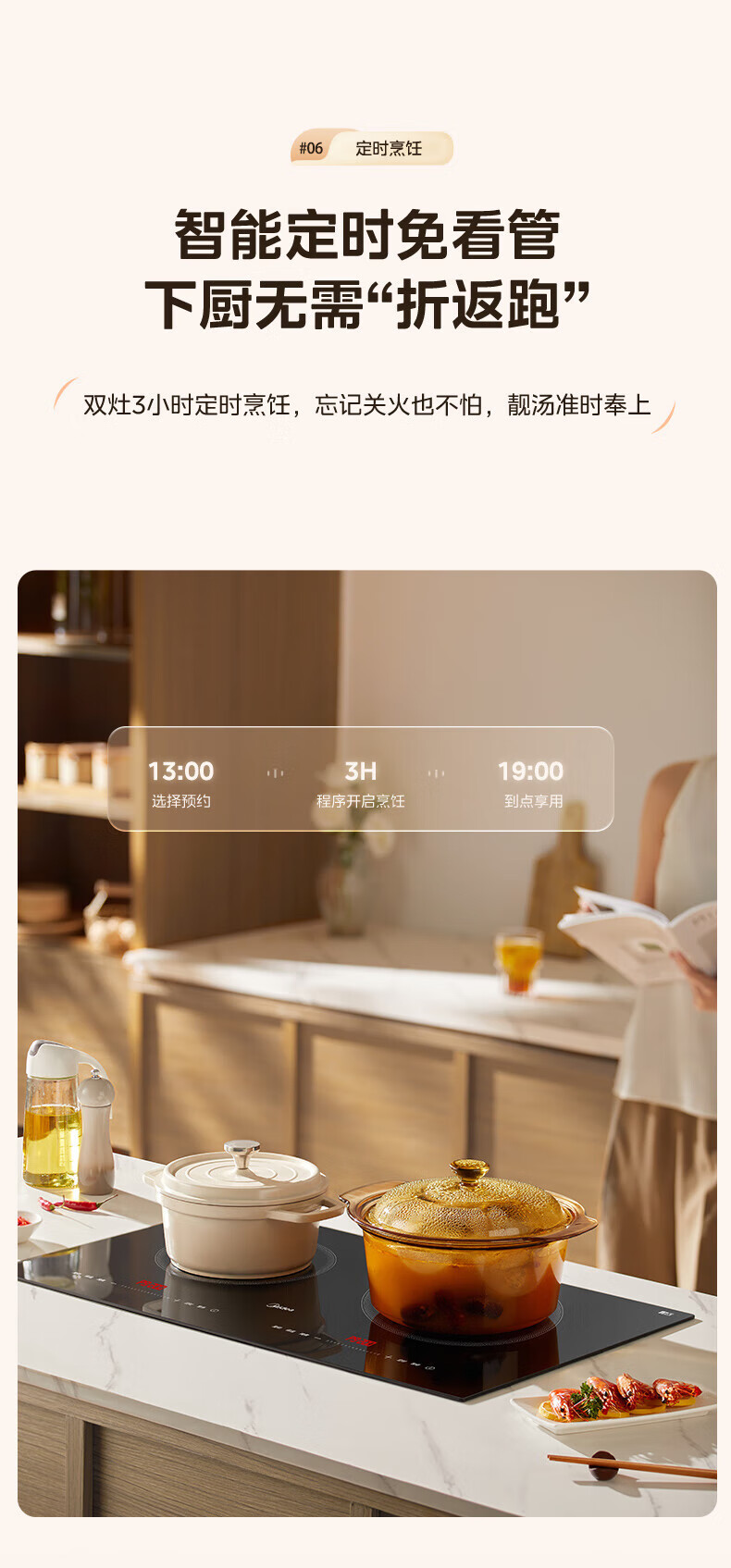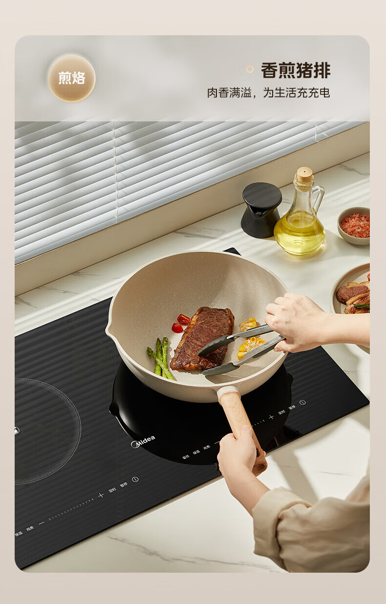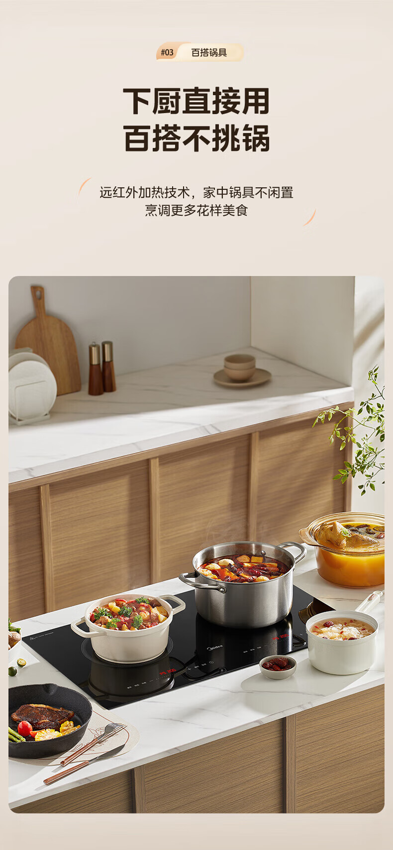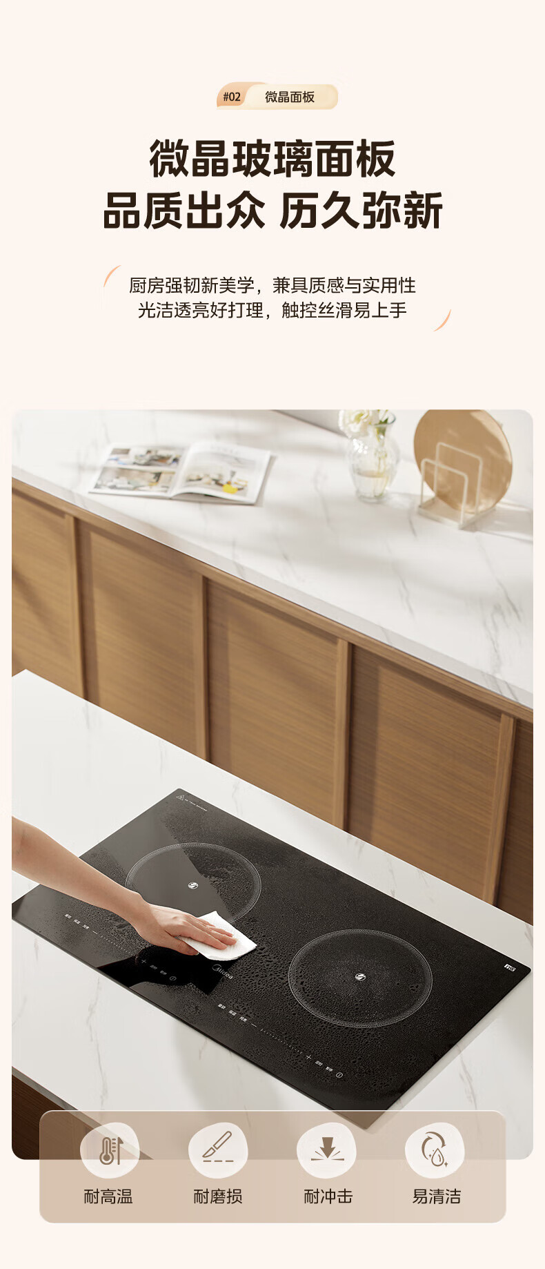 美的(Midea)电磁炉双灶电磁灶家用3500W大功率电陶炉嵌入式定时功能耐用大面板滑触精控 MC-ZDT3521Z 电磁炉 MC-ZDT3521Z