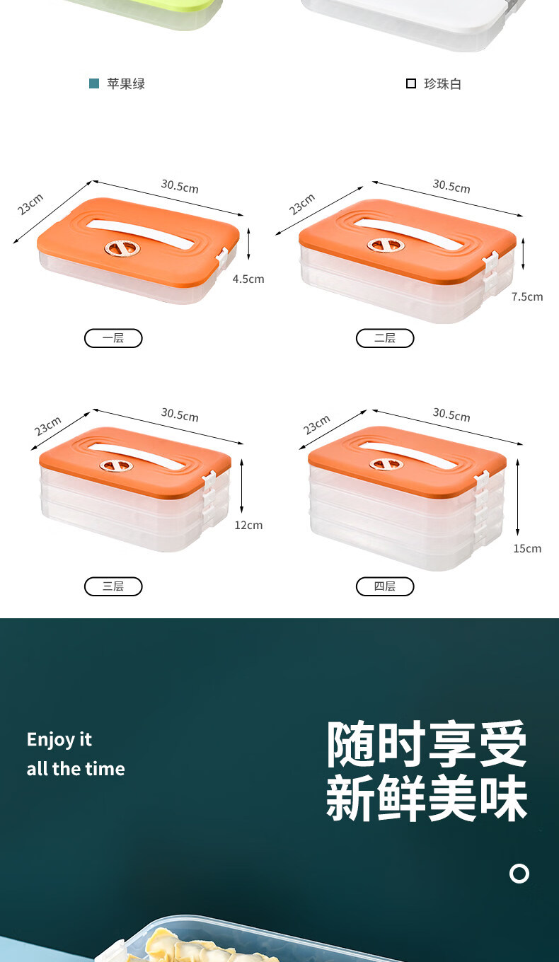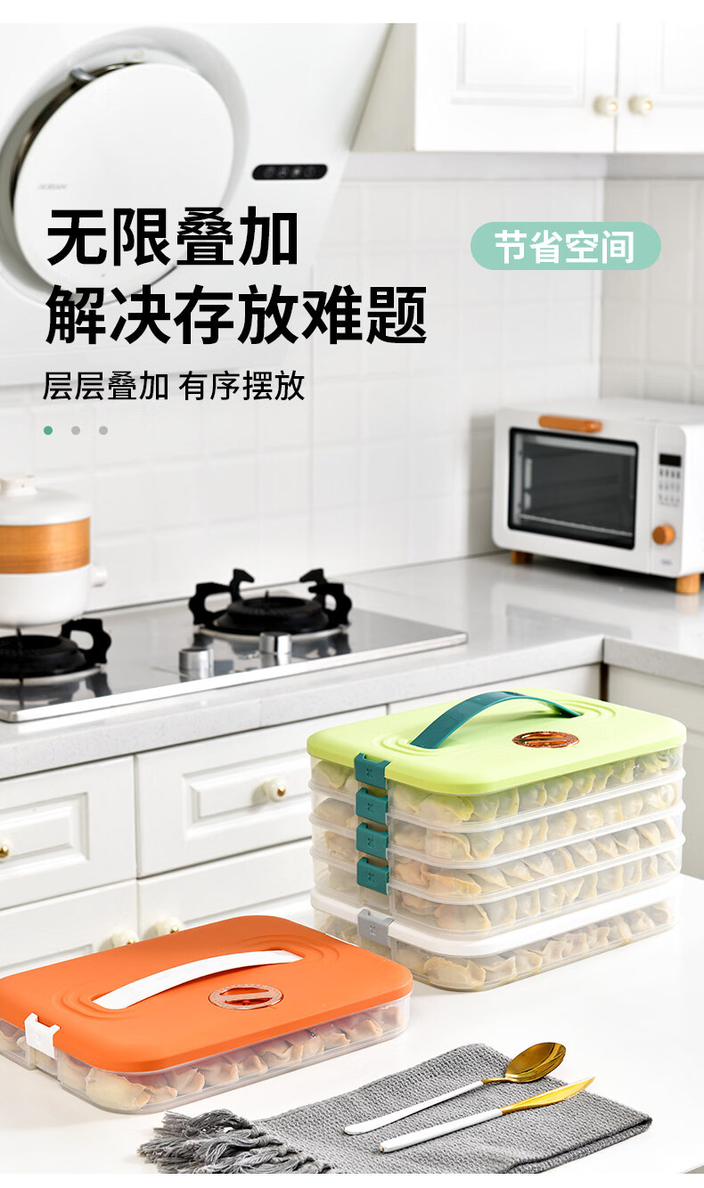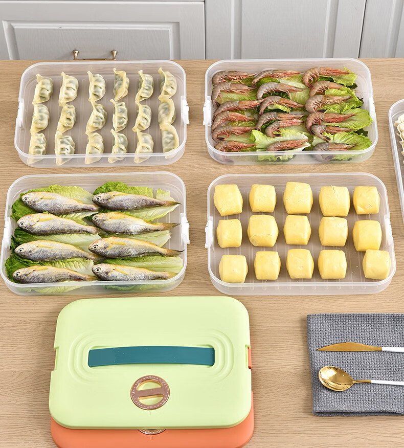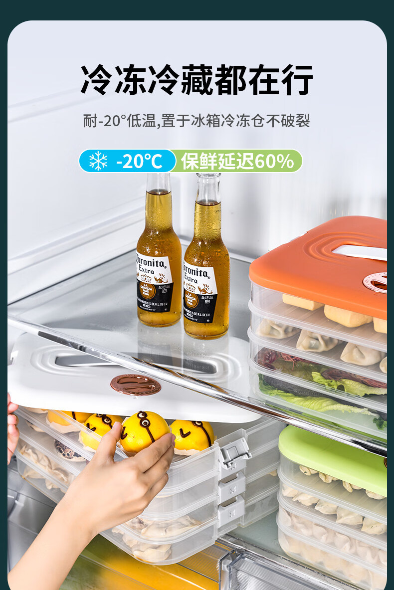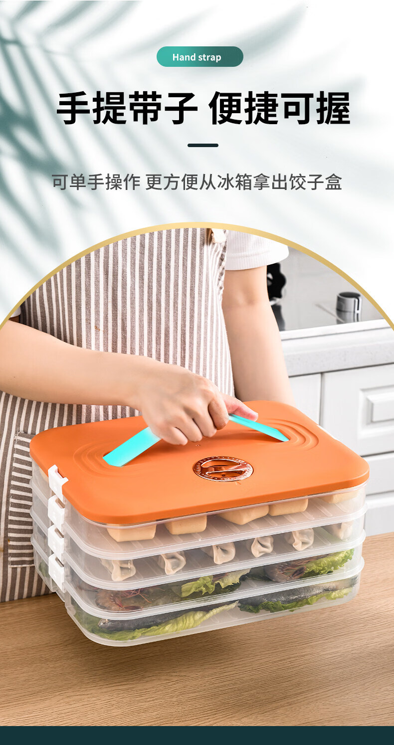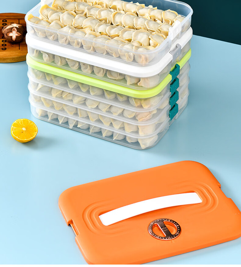 胖东来同款饺子冷冻盒保鲜盒 饺子盒家用食品级冰箱冷冻专用密封 活力橙【一层一盖】不粘底/防冻裂