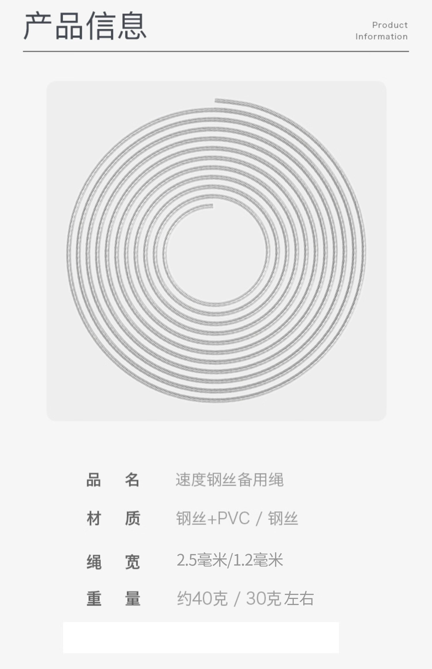 跃动竞速跳绳备用绳1.2mm裸钢丝/2.5mm包胶专业比赛钢丝跳绳绳芯 1.2mm钢丝备用绳【裸绳】 无规格