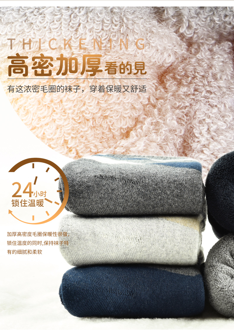 浪莎袜子男冬季加厚纯棉毛圈中筒保暖袜 5黑色 均码