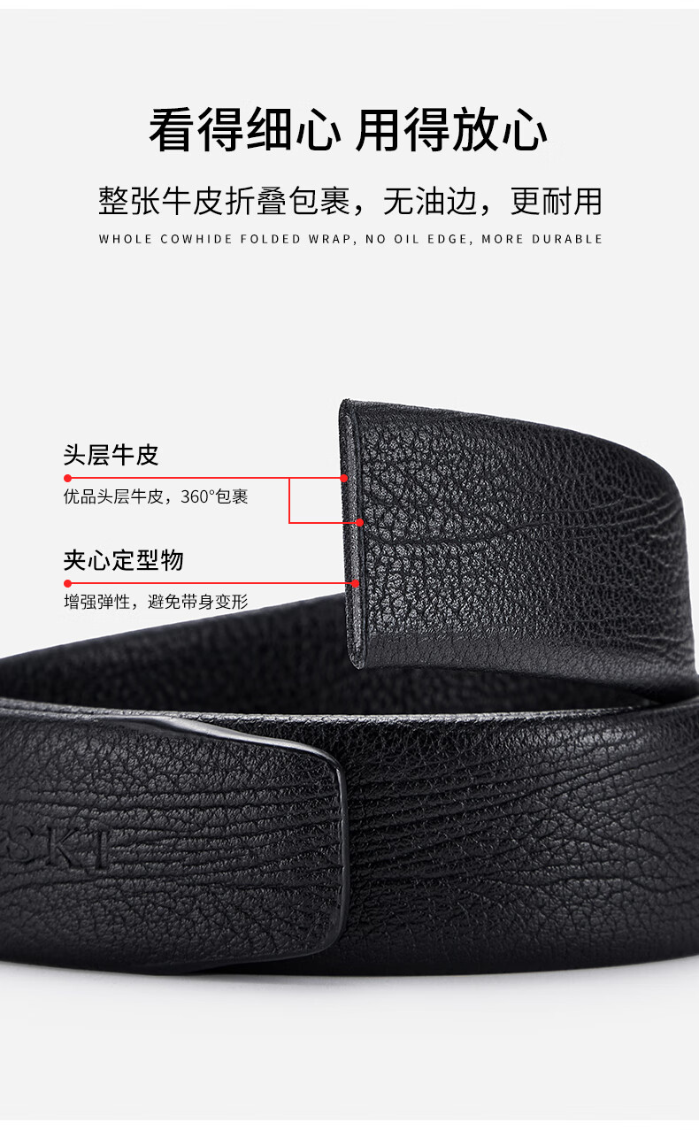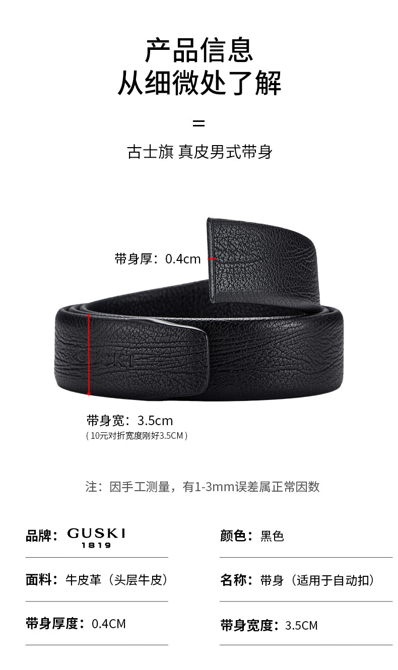 古士旗(GUSKI)男士皮带条男自动扣真皮腰带条不带头牛皮高端礼盒生日情人节礼物 品质树纹带身(不含扣头) 110cm -130cm随机,指定长短需客服备注