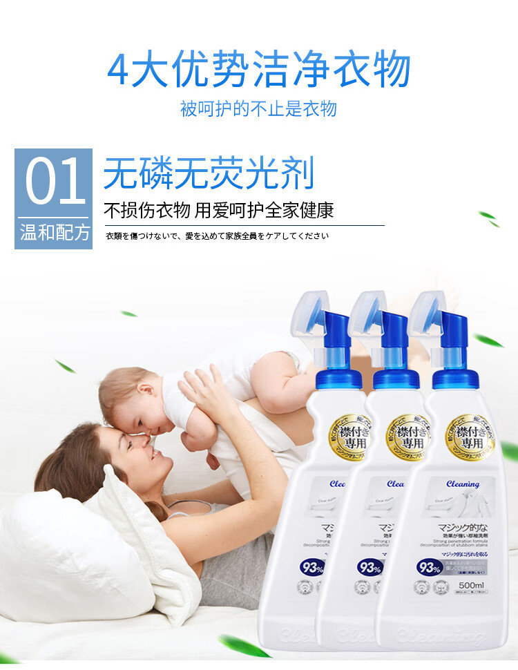 衣飞扬日本小林衣领净深层祛渍祛黄温和不伤手羽绒服助洗剂 衣领净500ml2瓶