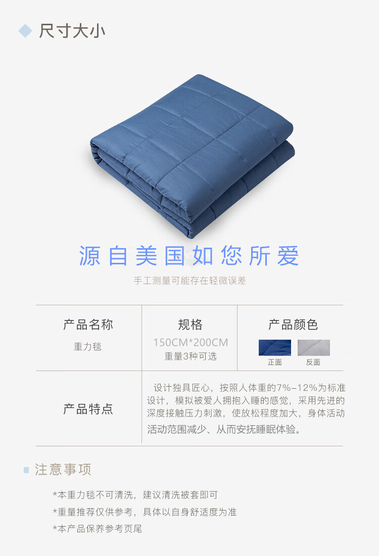 AMY GARDEN 美国重力毯重力减压被Gravity重力解压被拒绝失眠压力被夏款被子 被芯+被套【释放压力柔软贴身】 150*200CM 18磅 适合体重75-85KG