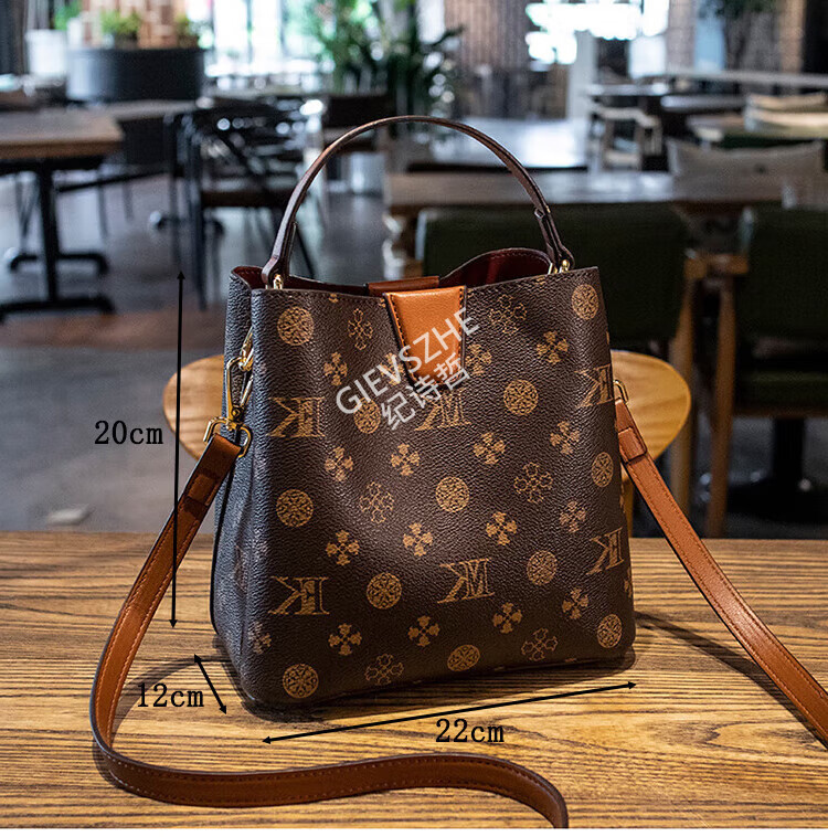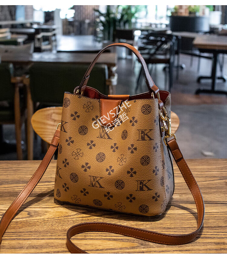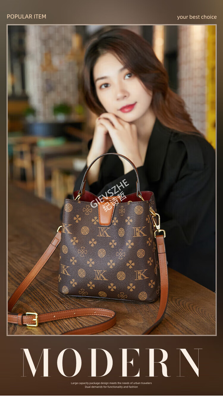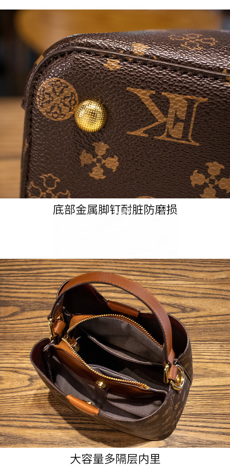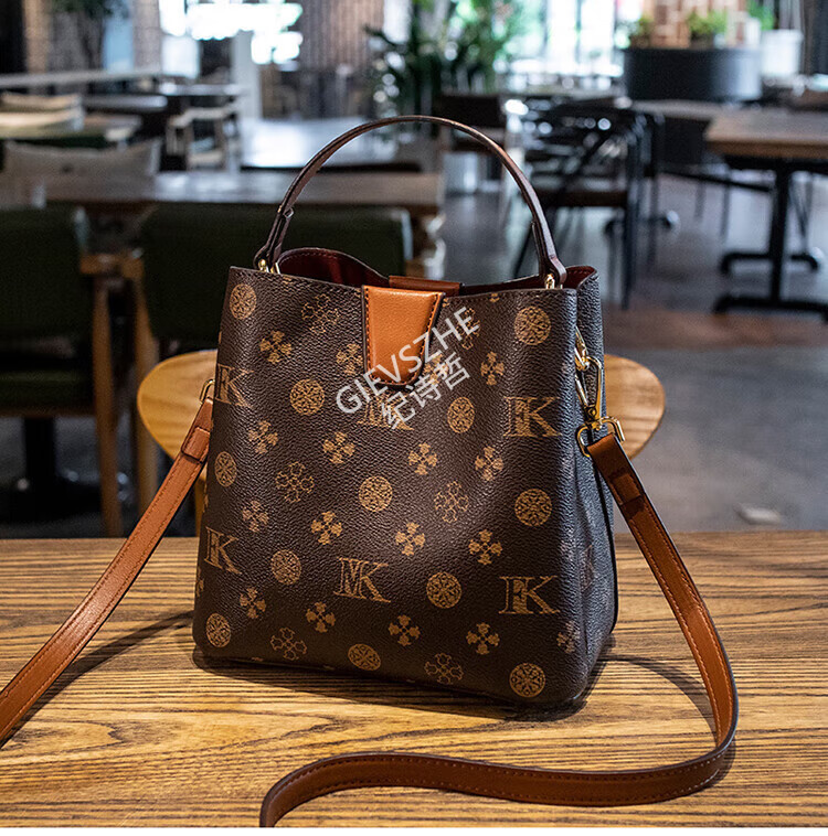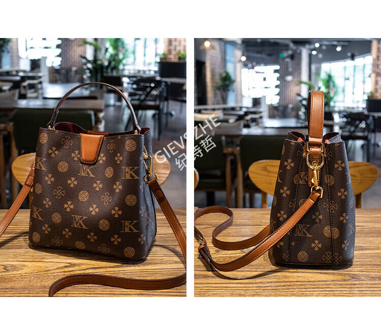 纪诗哲轻奢包包女包女士单肩包斜跨水桶包七夕情人节送女友老婆节日礼物 咖啡色【大号】节日送礼热销 精美礼盒