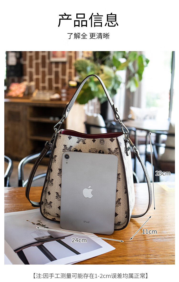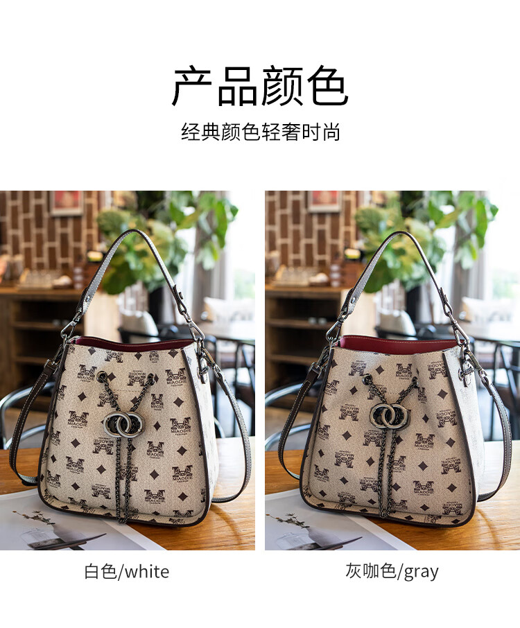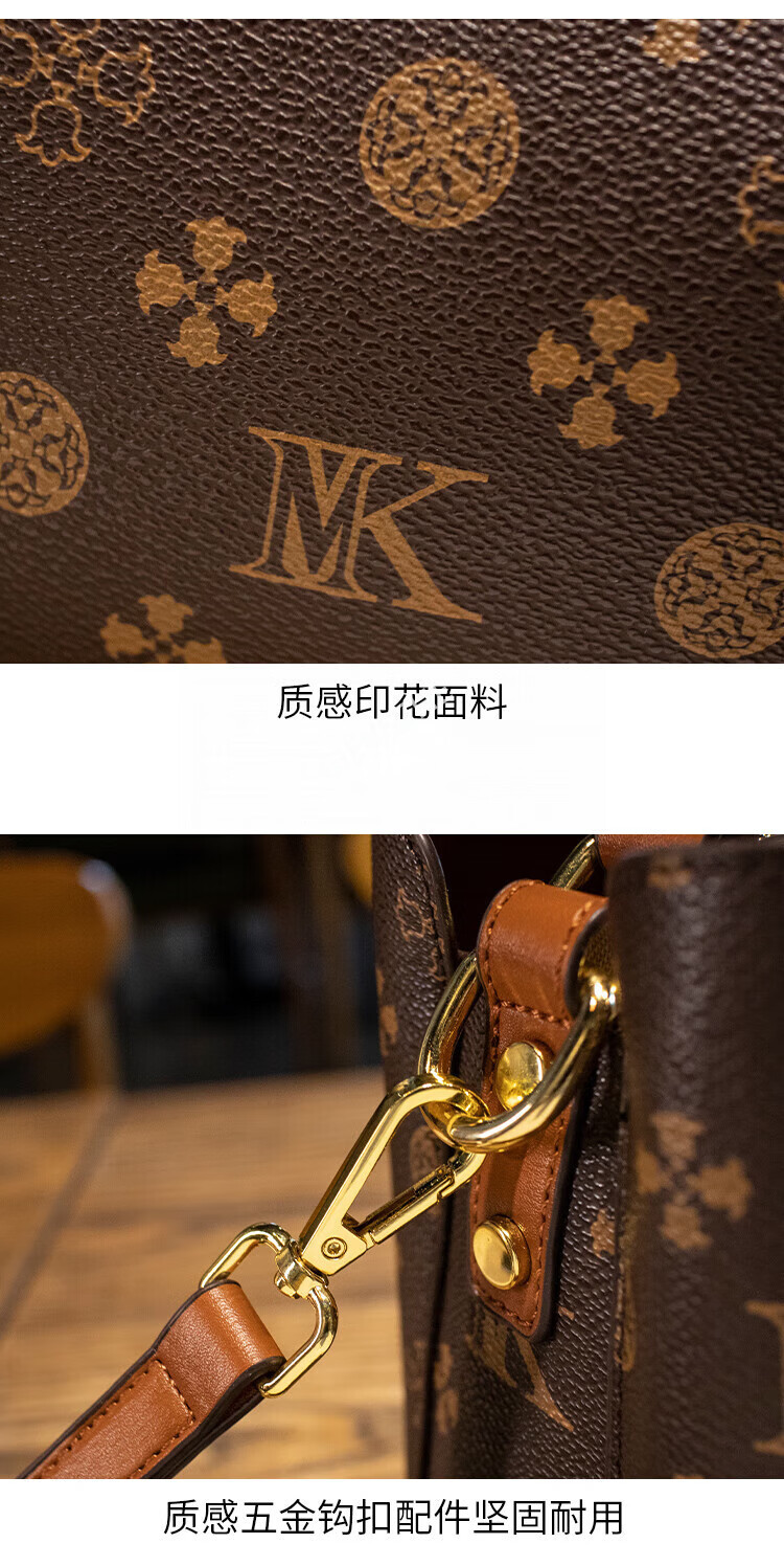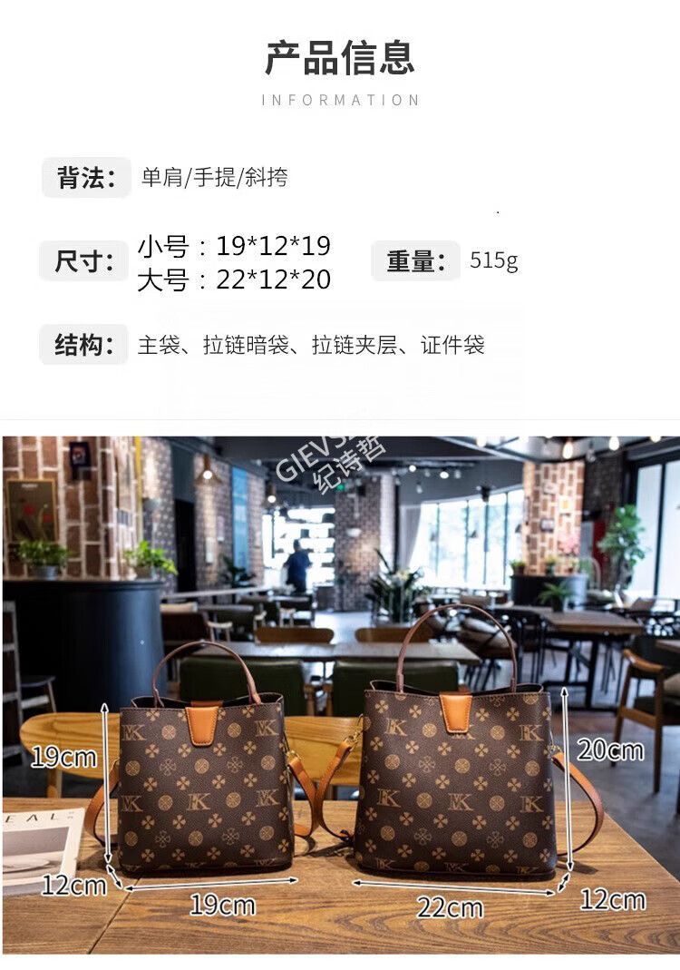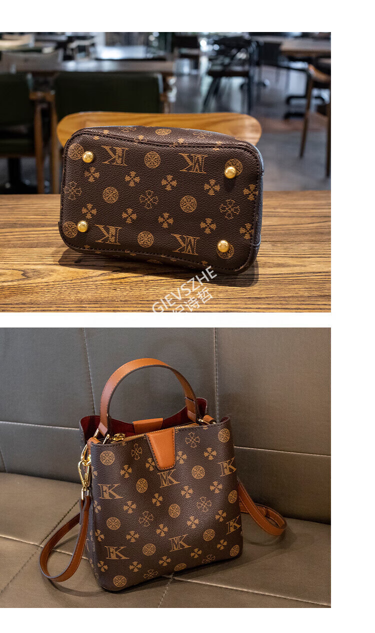 纪诗哲轻奢包包女包女士单肩包斜跨水桶包七夕情人节送女友老婆节日礼物 咖啡色【大号】节日送礼热销 精美礼盒