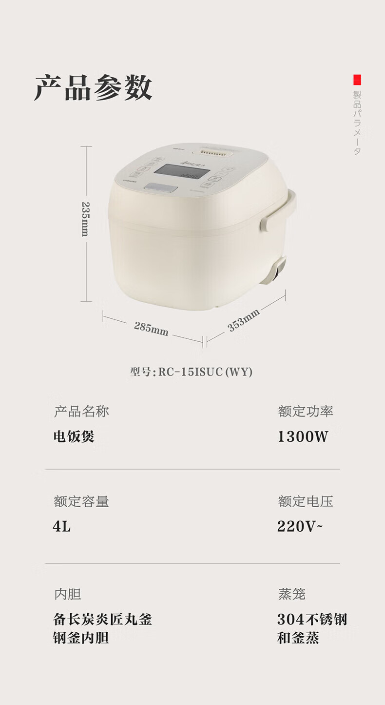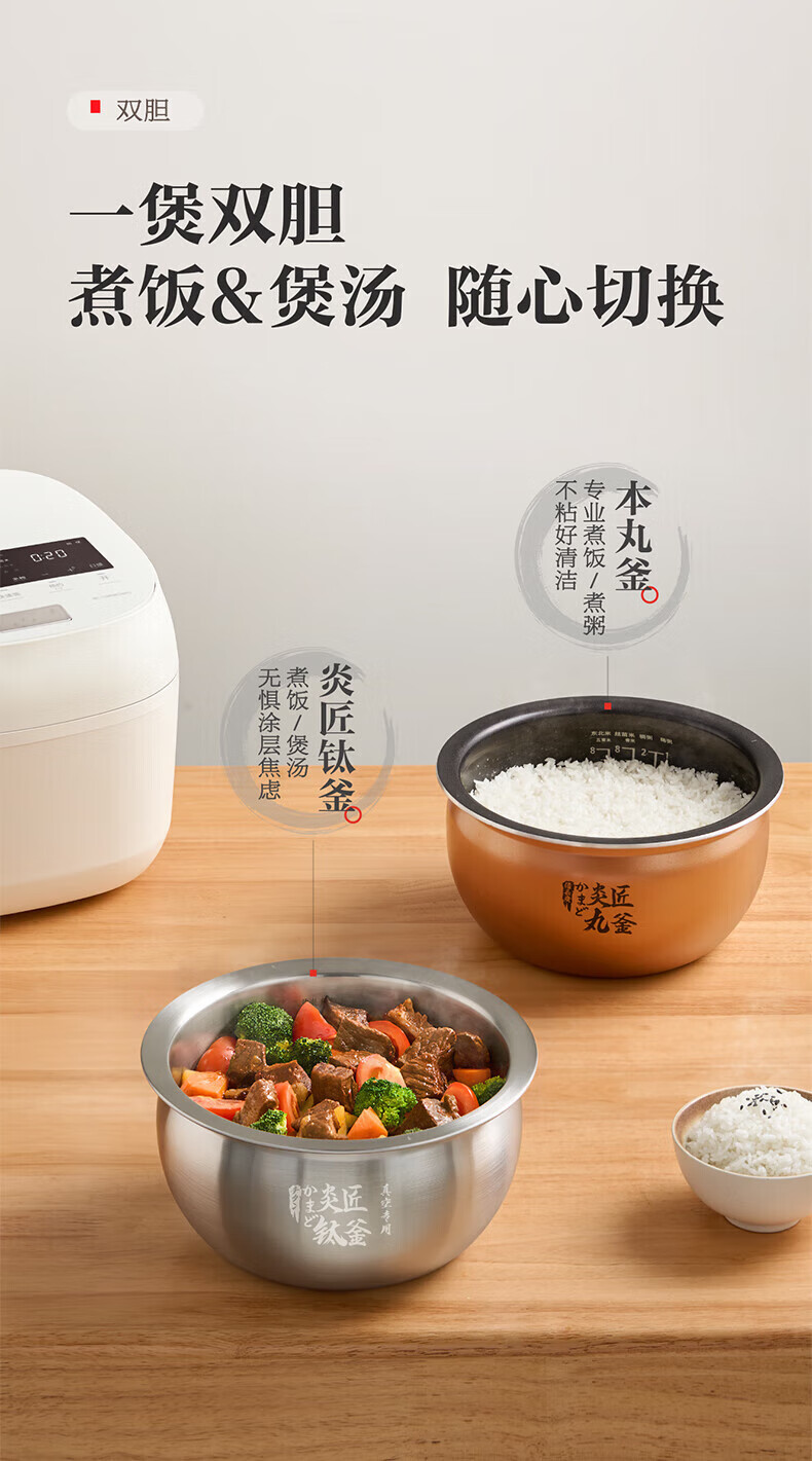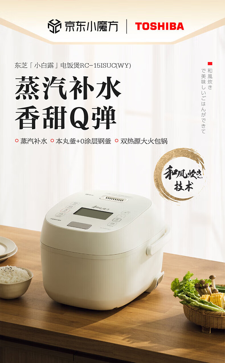东芝0涂层和风炊蒸汽补水技术小白露吸水微压电饭煲3-4人IH立体双热源 小白露PRO 真空锁鲜 双内胆丨 4L 丨RC-15IRUC(K)