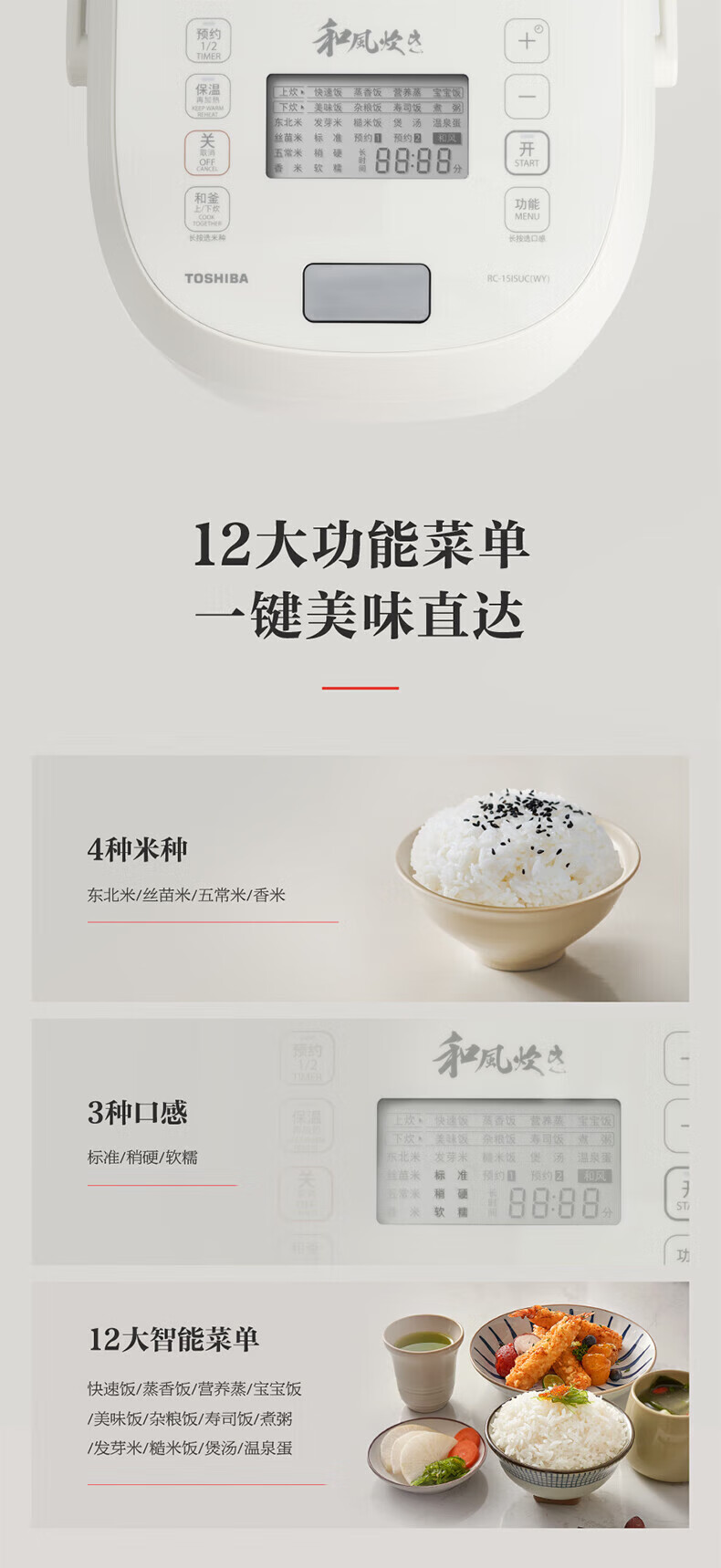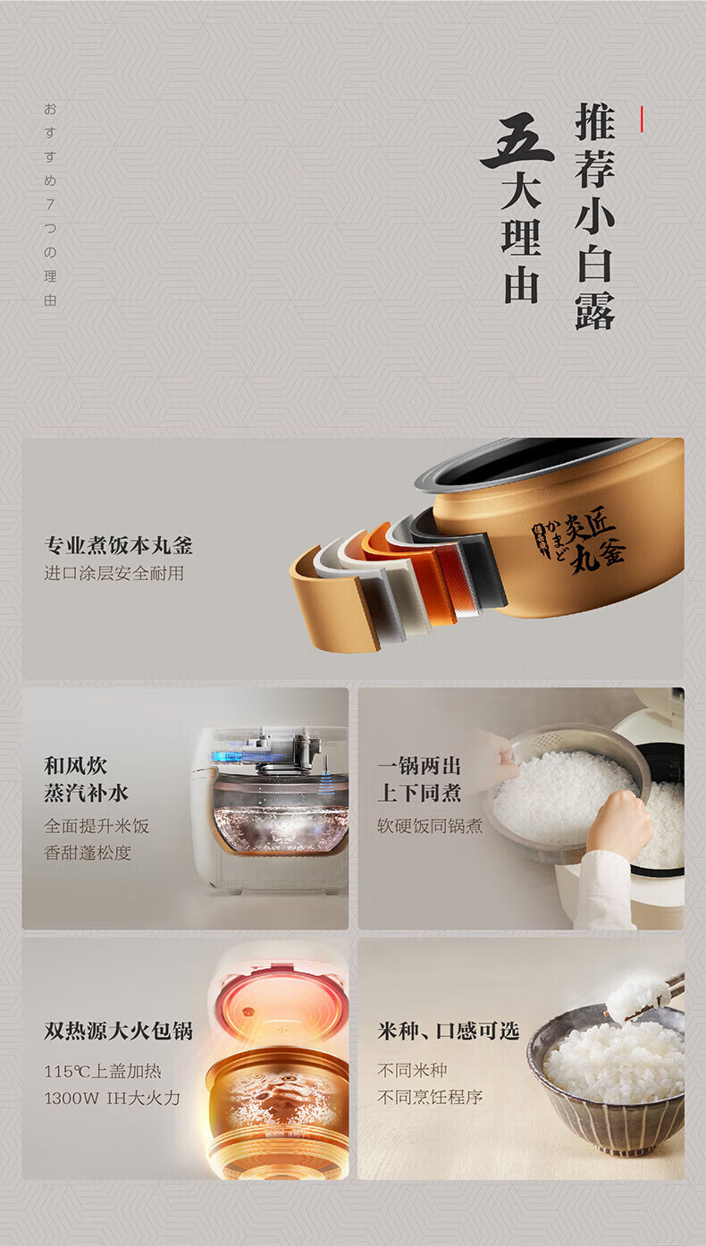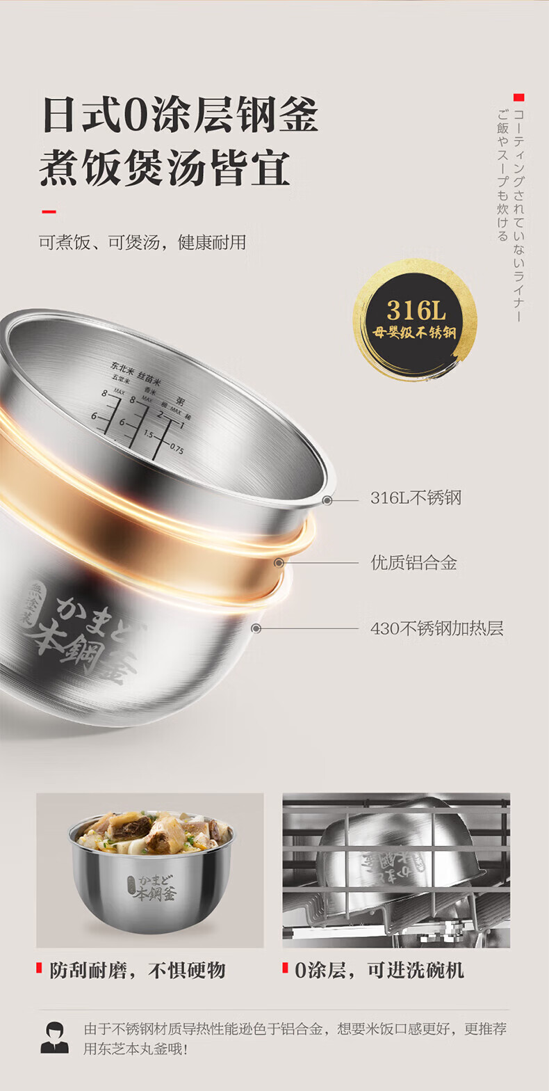 东芝0涂层和风炊蒸汽补水技术小白露吸水微压电饭煲3-4人IH立体双热源 小白露PRO 真空锁鲜 双内胆丨 4L 丨RC-15IRUC(K)