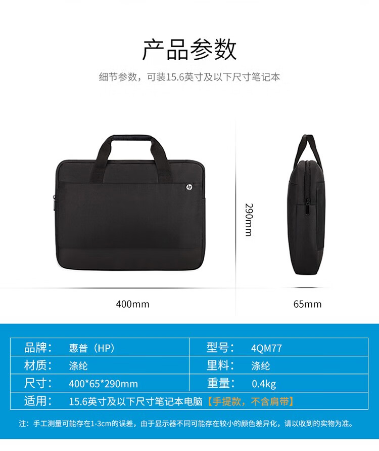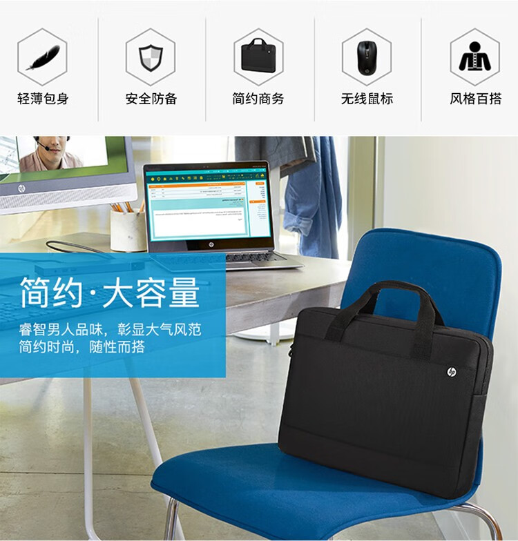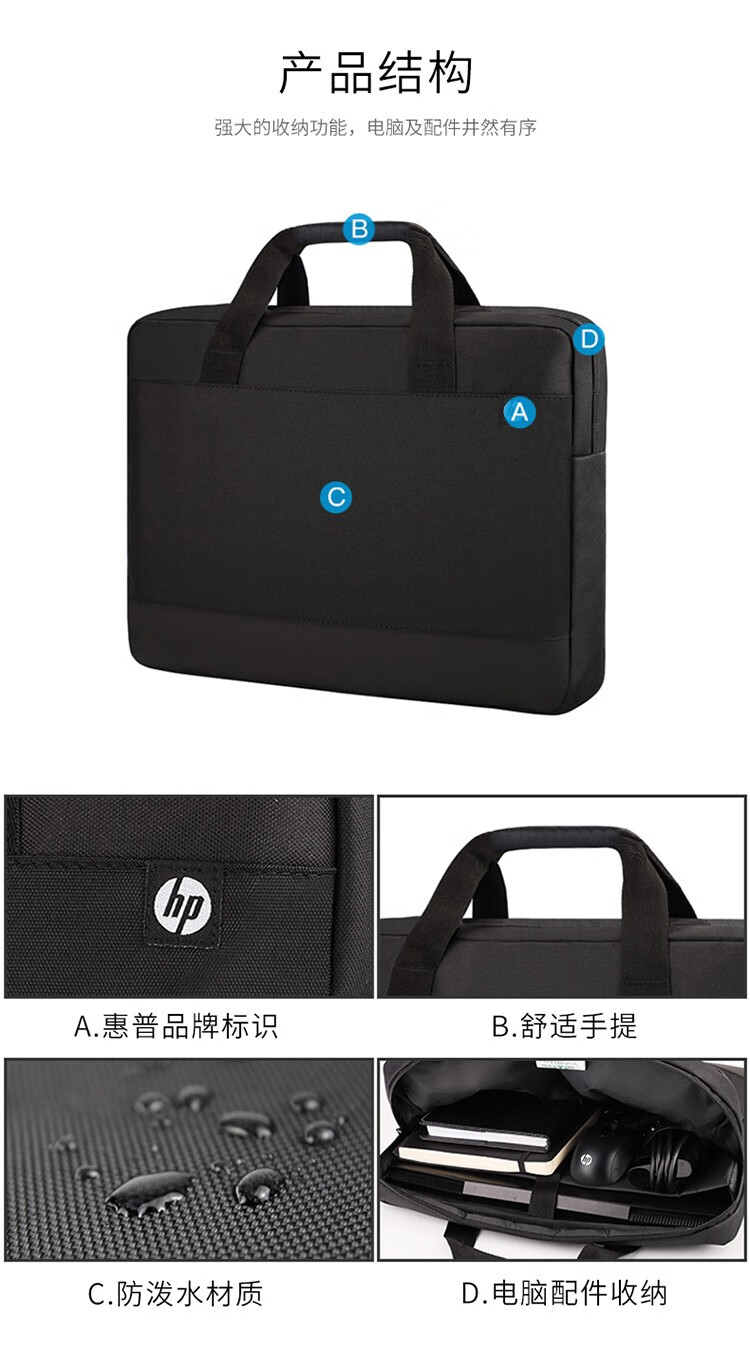 惠普笔记本电脑包手提包15.6英寸电脑商务办公便携电脑包适用惠普华为联想小米防摔防震电脑手提包配鼠标 惠普【电脑手提包配无线鼠标版】