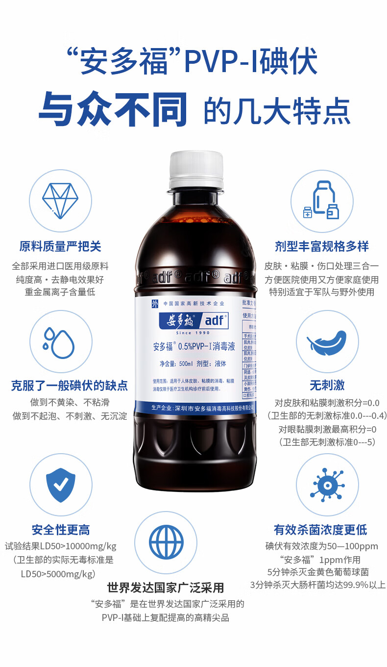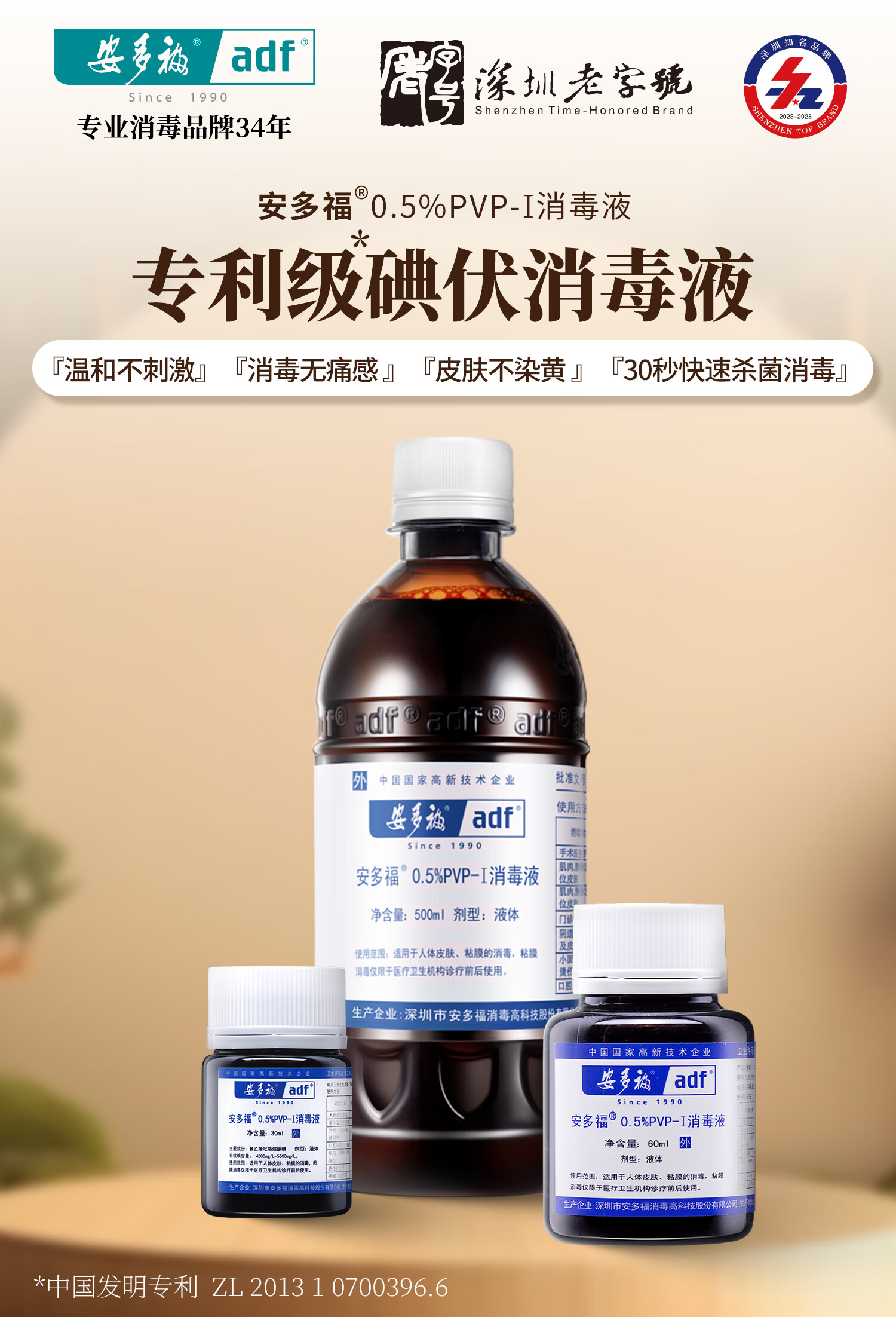 安多福0.5%聚维酮碘消毒液碘伏碘酒碘酊不含酒精伤口杀菌防感染医护同款 30mL*10瓶【伤口消毒原版盒装】