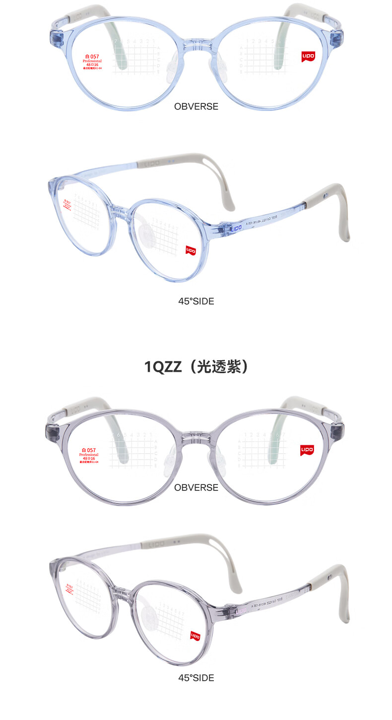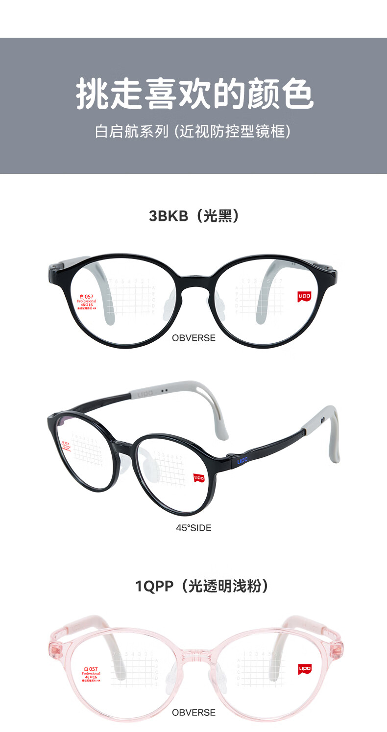 李白儿童眼镜框白系列启航版057男女儿童专业防控近视眼配镜镜片 白-启航版丨 057-1QLL(光透浅蓝) 镜框+适目研选1.56-高清镜片(留言度数)