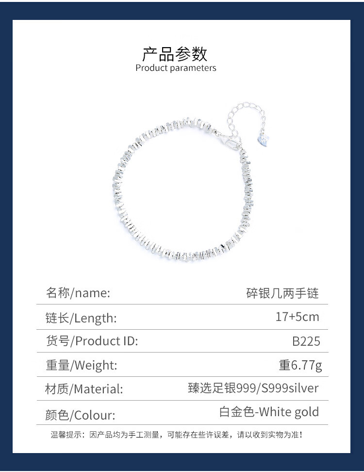 苏十六999足银碎银子手链女轻奢高级感手饰闺蜜生日新年礼物送女友老婆 【999足银】碎银几两手链