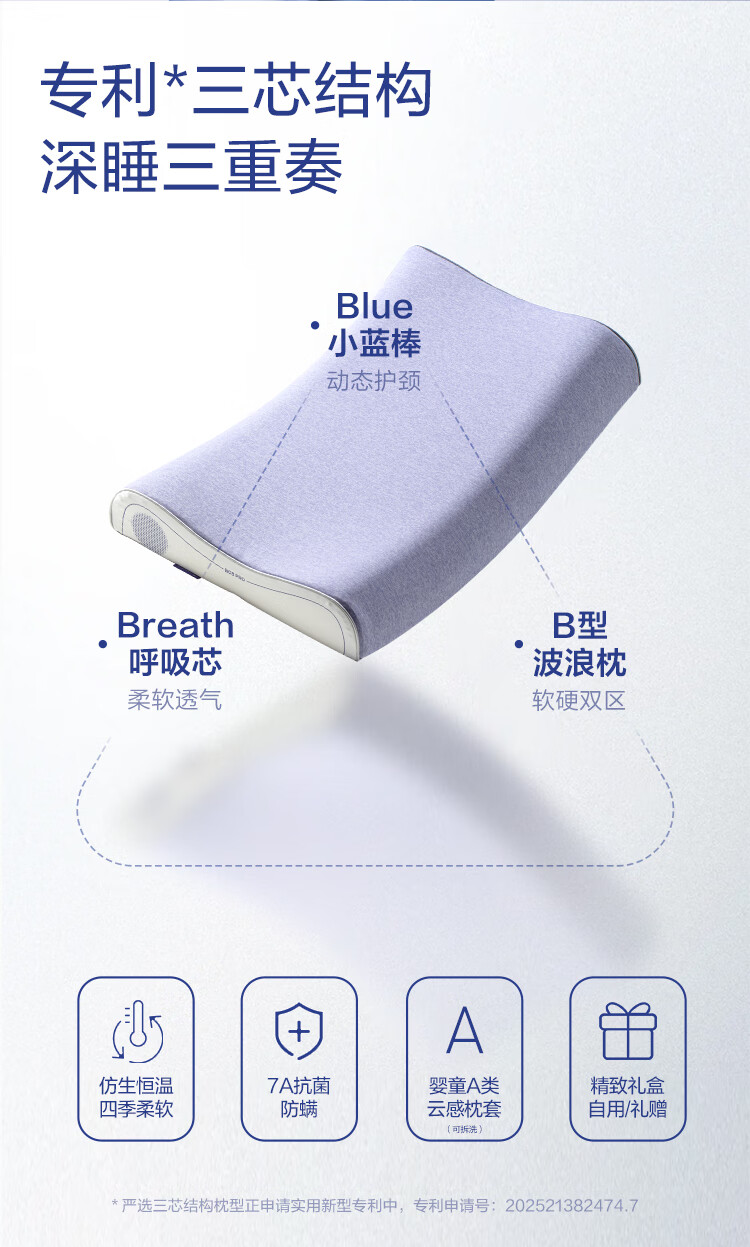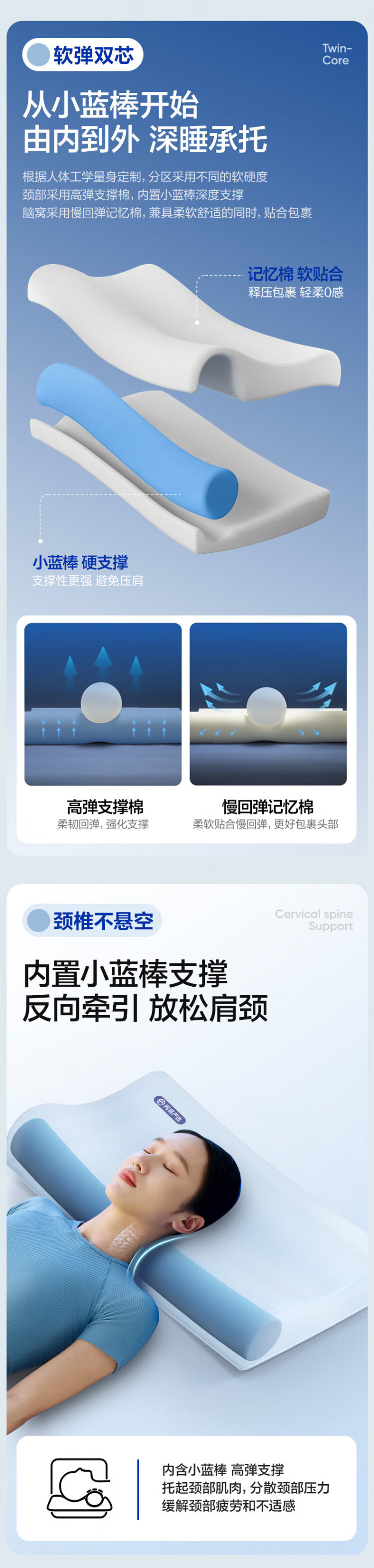 网易严选【刘墉推荐】B03小蓝棒记忆棉枕慢回弹深睡枕助睡眠护颈椎枕 【B03小蓝棒礼盒款】6/8cm低枕 单只装