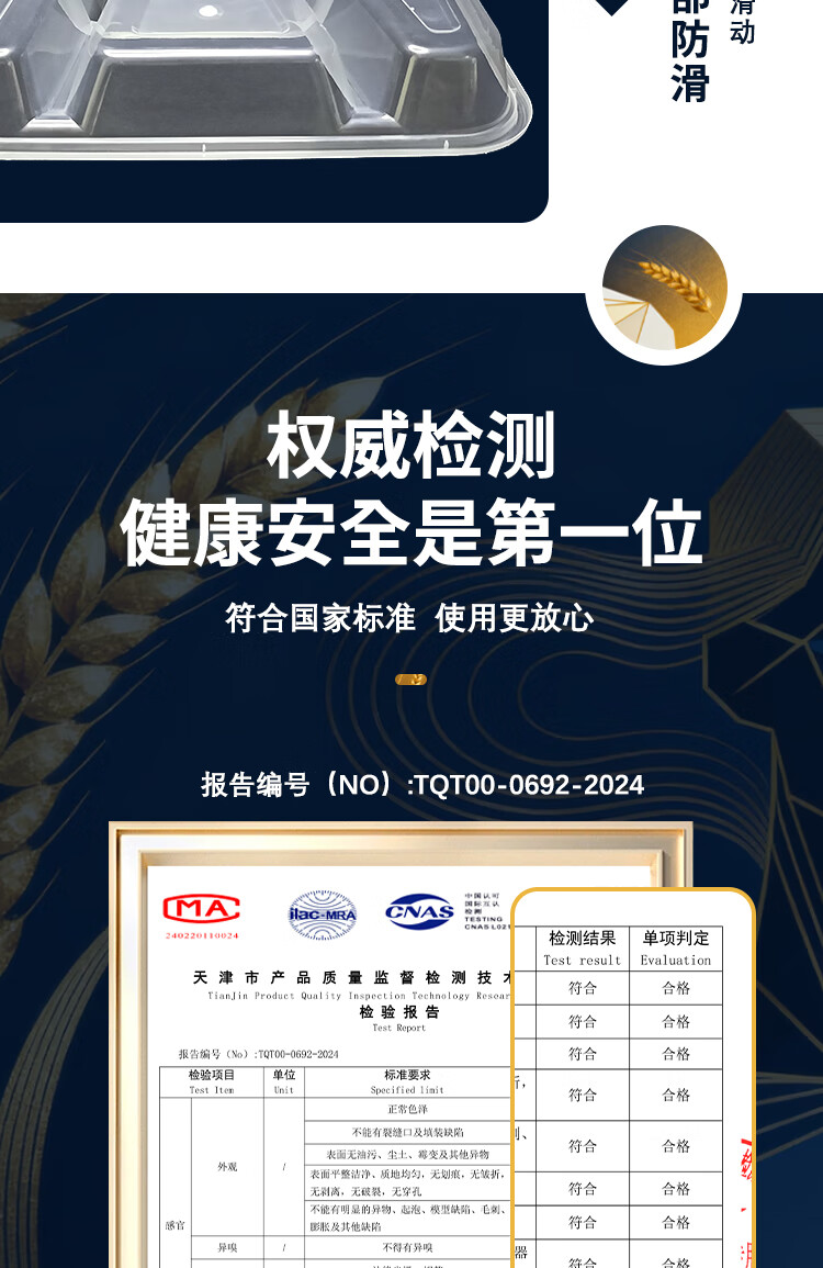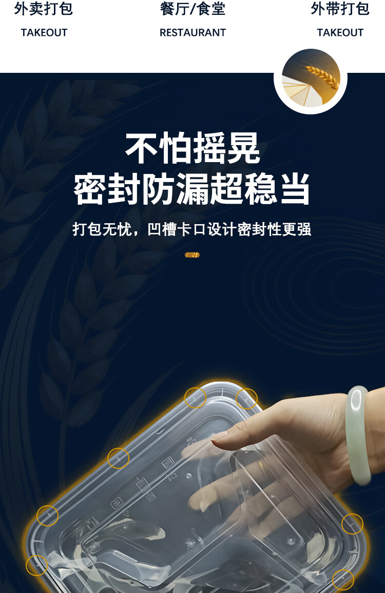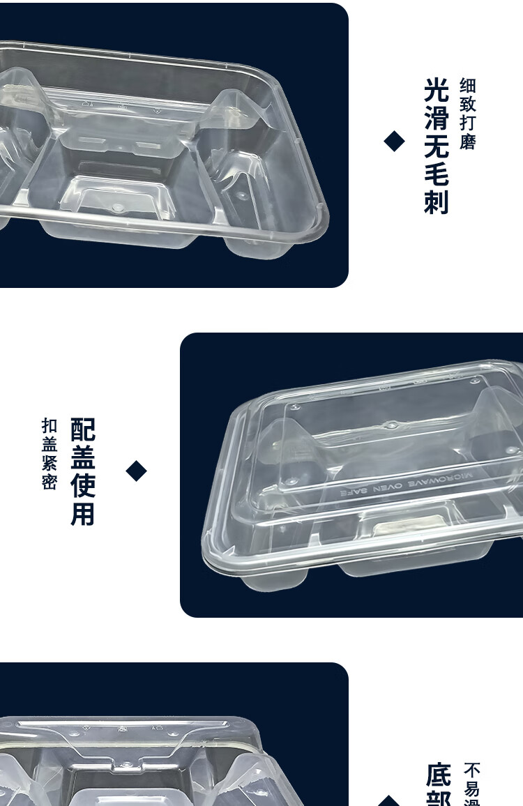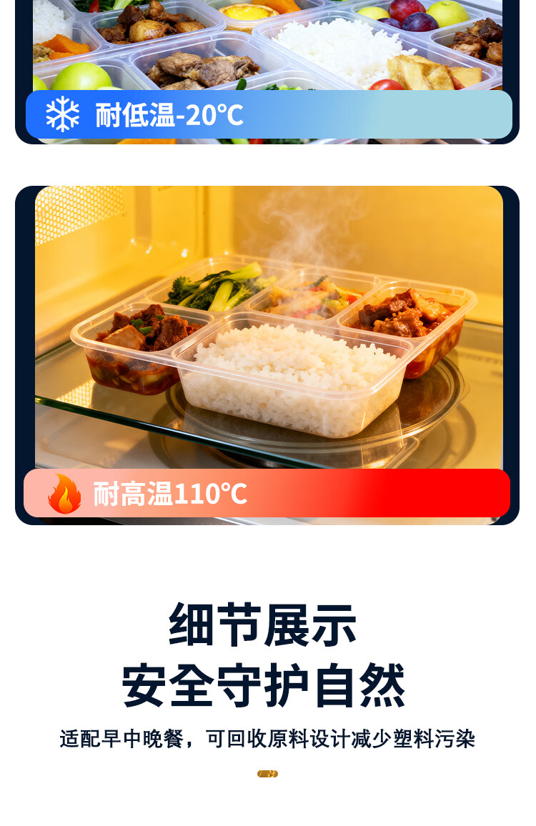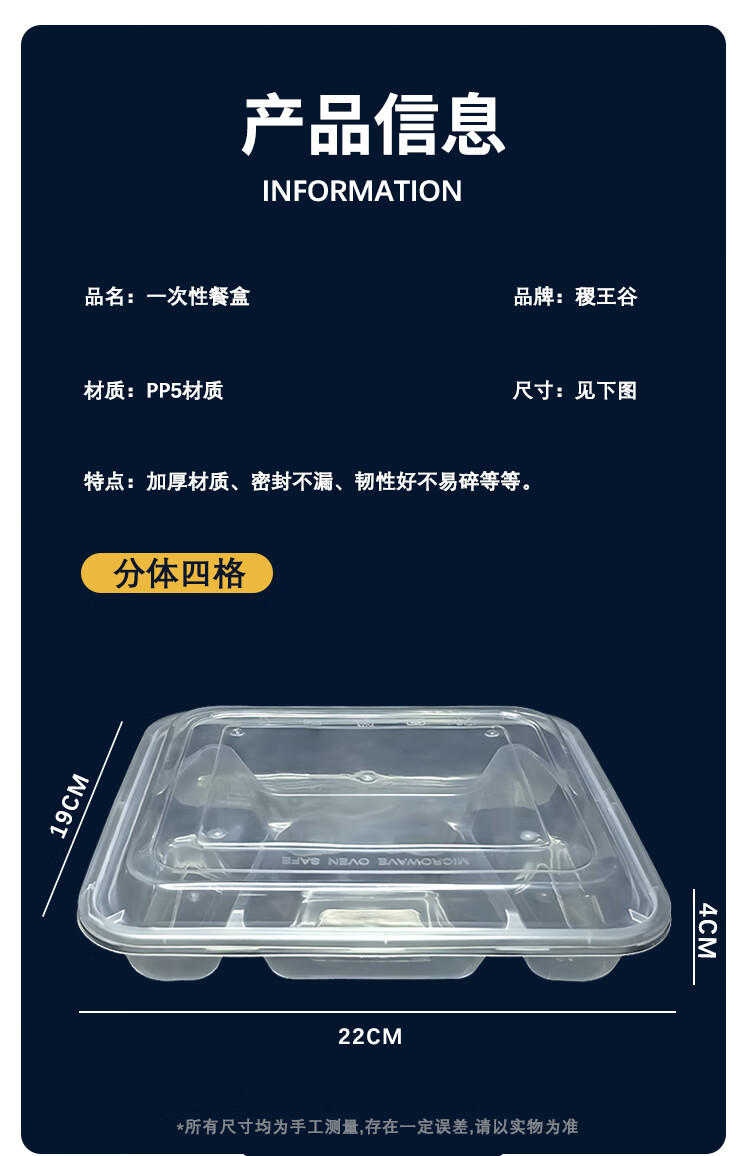 稷王谷一次性饭盒1100型分体格4格餐盒*150套带盖塑料加厚打包盒可微波 一次性饭盒