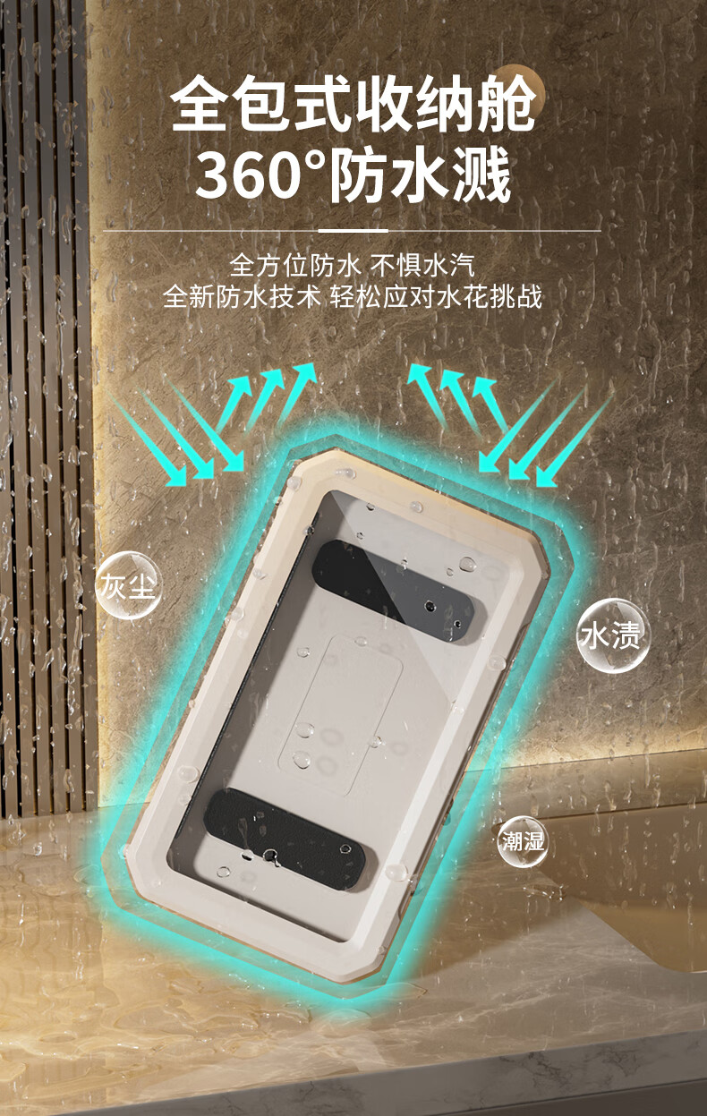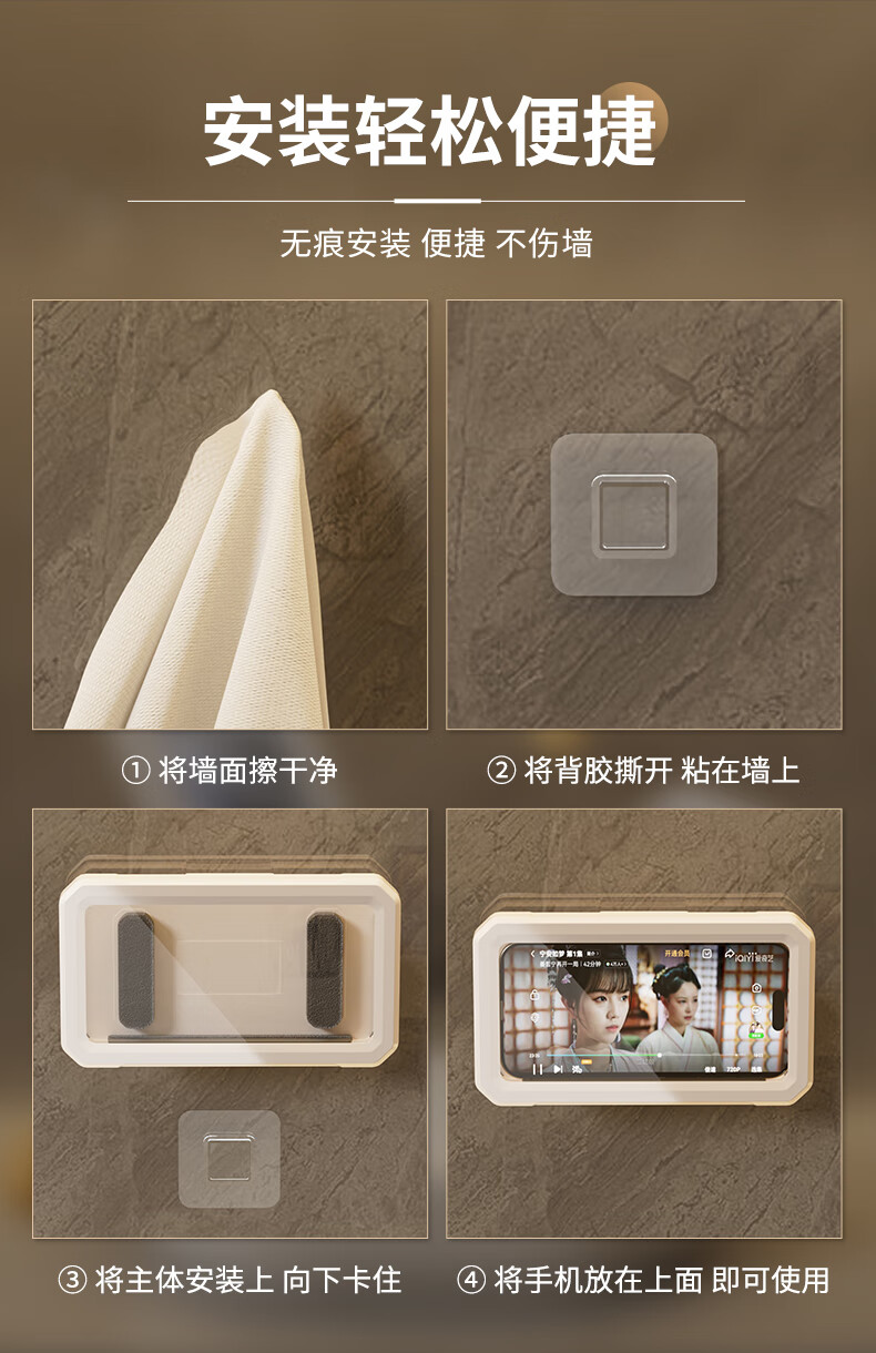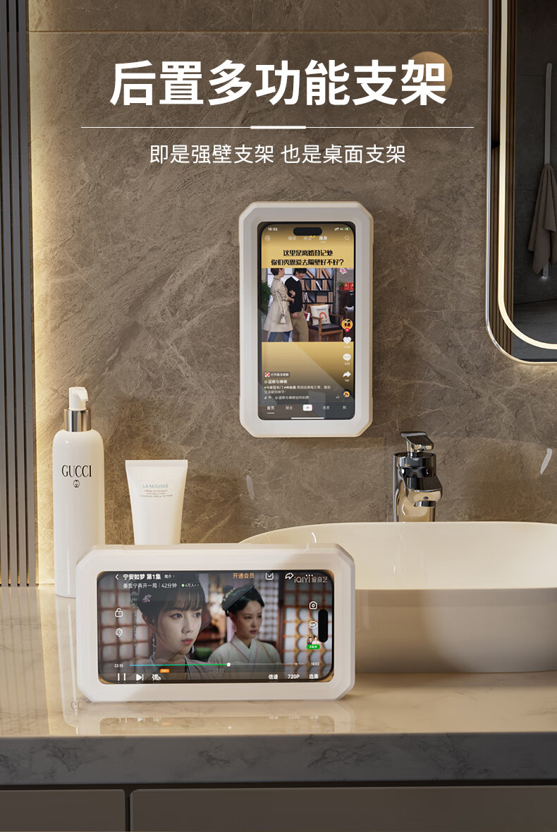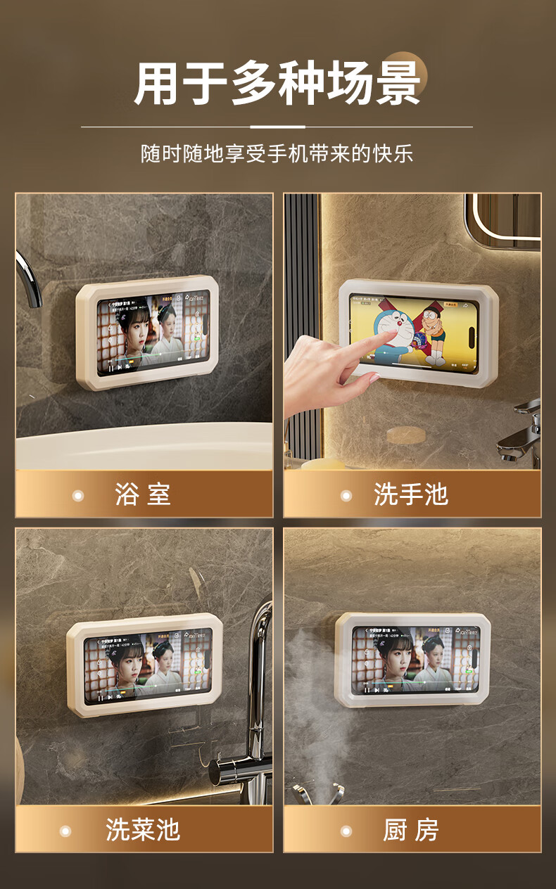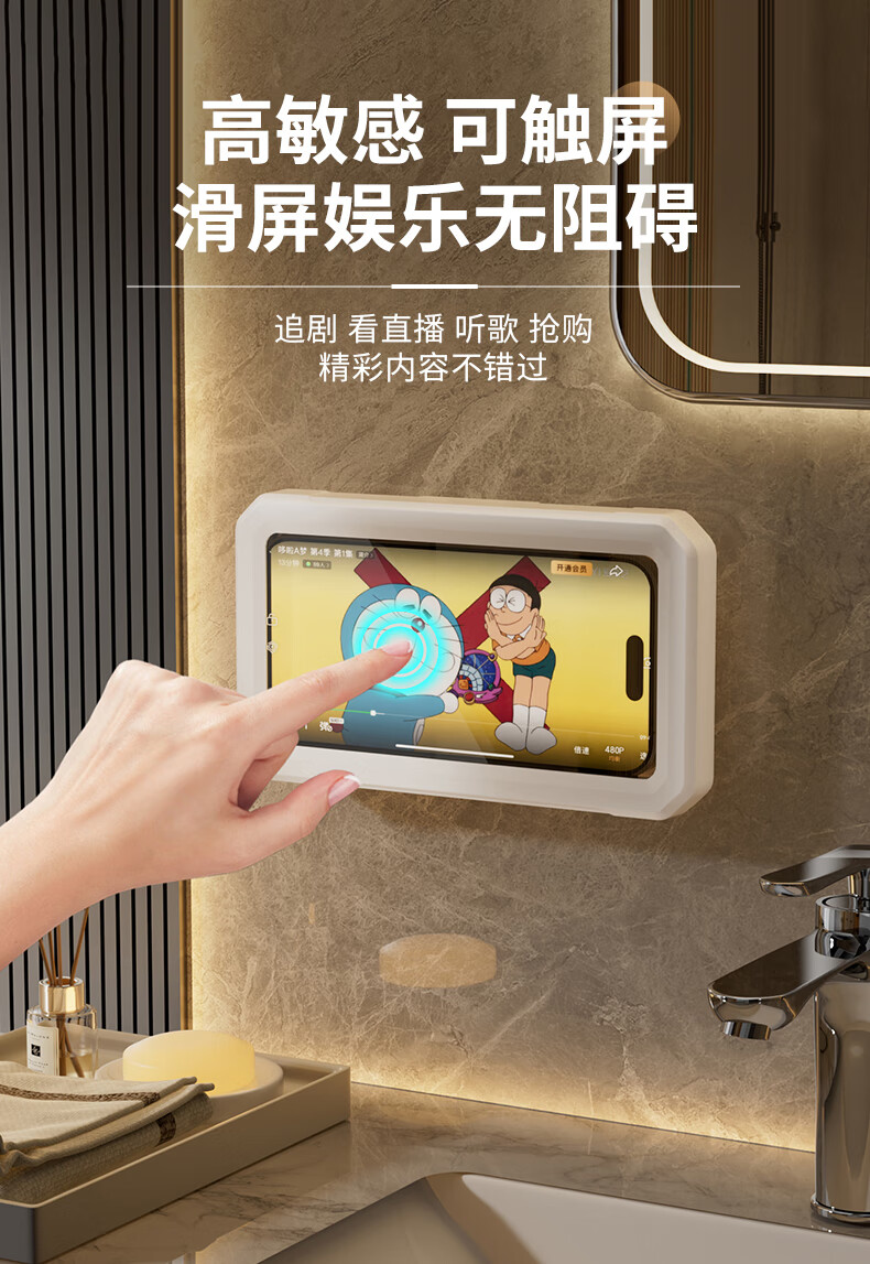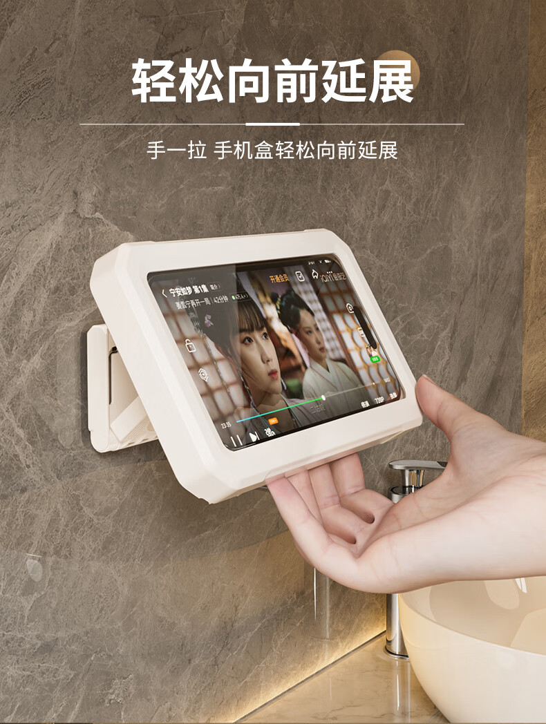 KAMAN浴室防水手机盒洗澡看电视懒人手机支架厕所免打孔淋浴房追剧神器 圆角款【可旋转/伸缩】1个