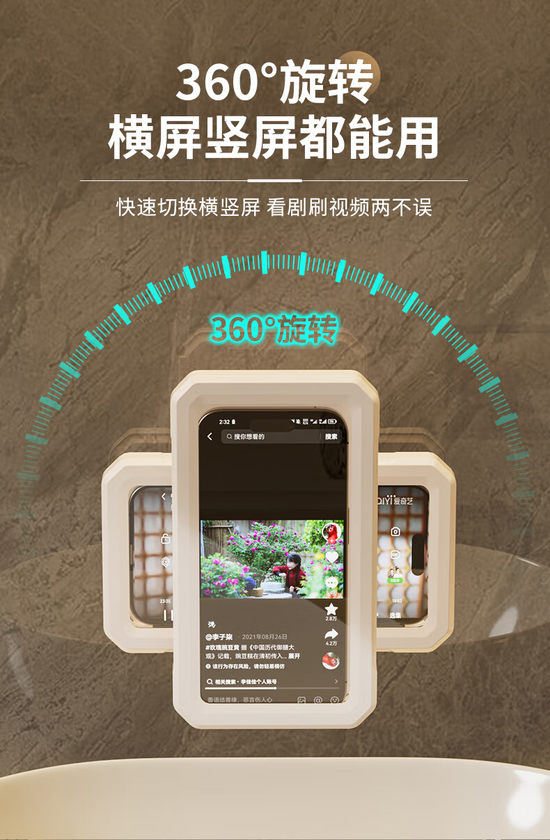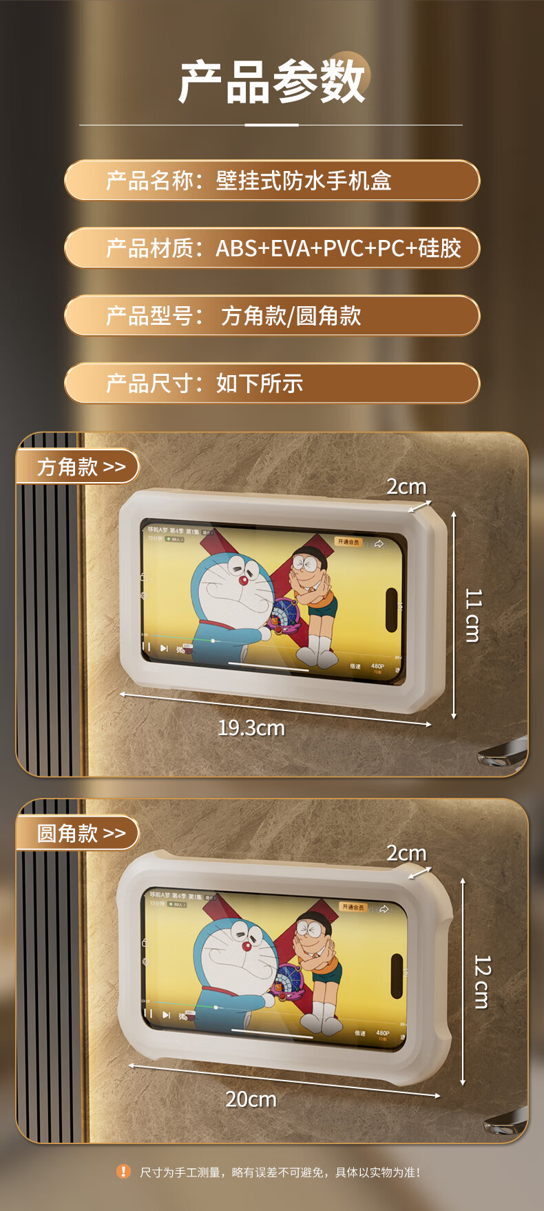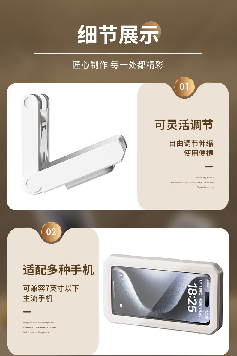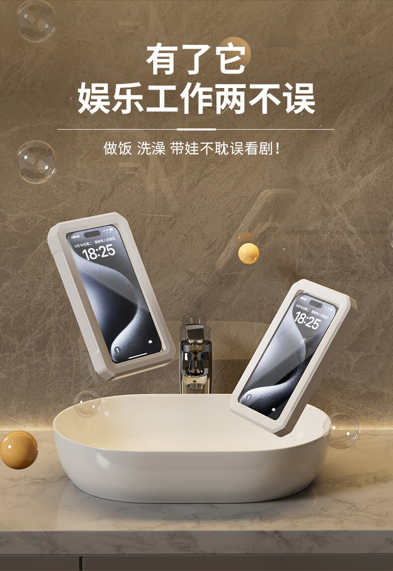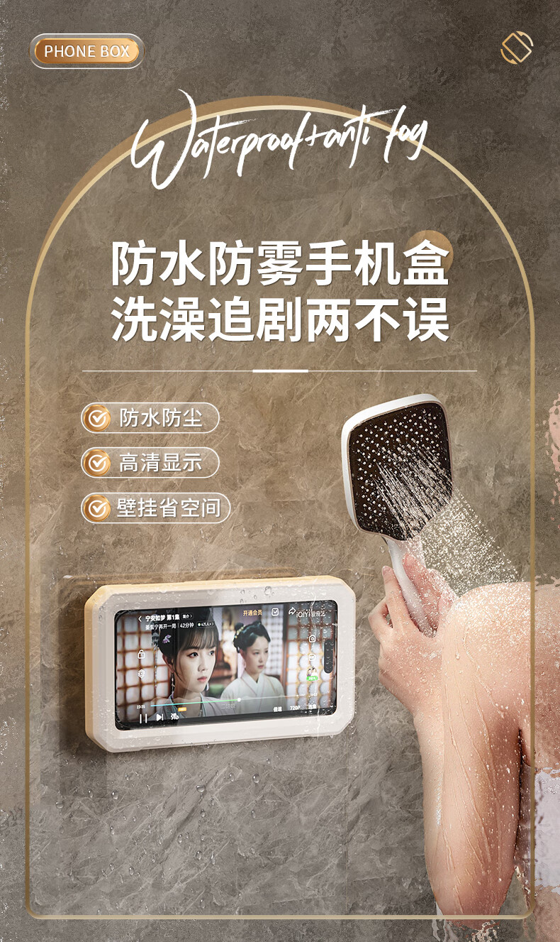 KAMAN浴室防水手机盒洗澡看电视懒人手机支架厕所免打孔淋浴房追剧神器 圆角款【可旋转/伸缩】1个