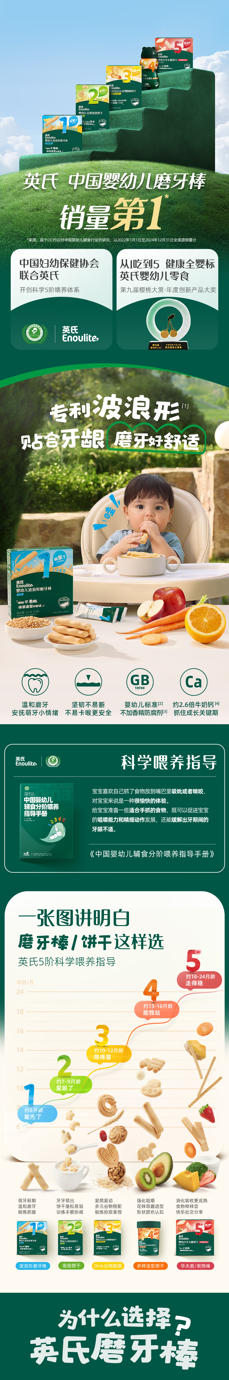 英氏磨牙棒婴儿6个月以上口欲期高钙波浪造型抗压 【防掉】打孔磨牙棒原味80g