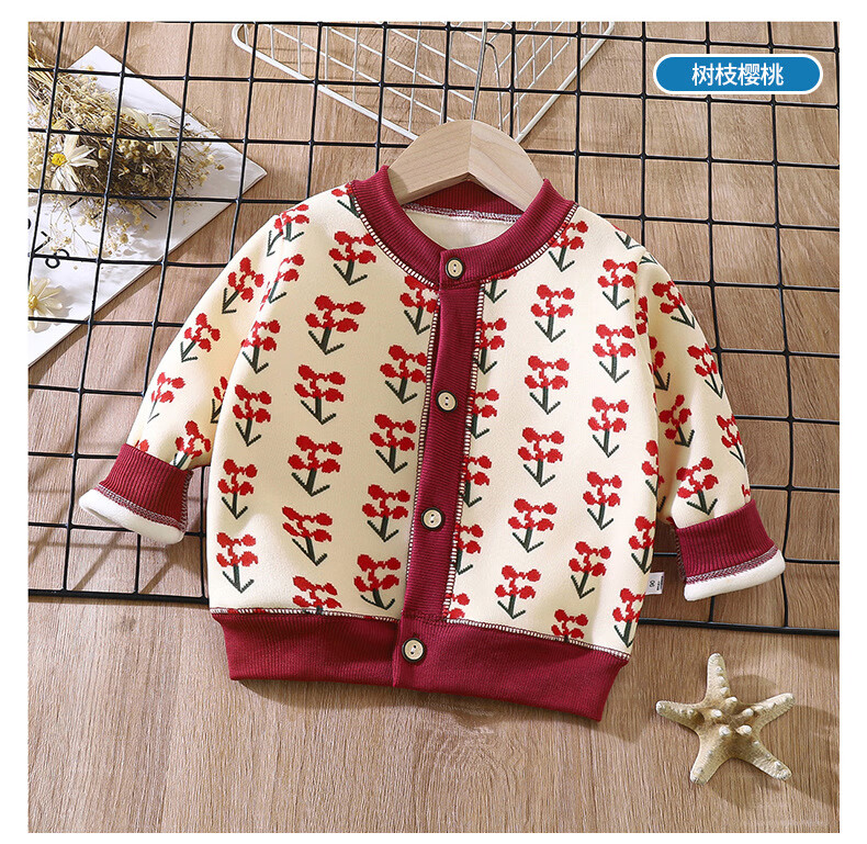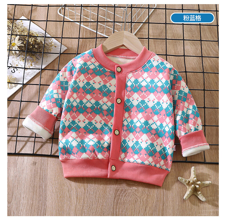 思织沁【精选】男女童毛衣外套秋冬洋气儿童上装加绒加厚新款针织上衣 WT01-粉蓝格 80 cm