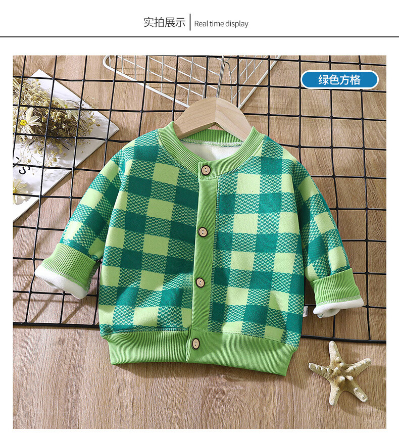 思织沁【精选】男女童毛衣外套秋冬洋气儿童上装加绒加厚新款针织上衣 WT01-粉蓝格 80 cm京东自营