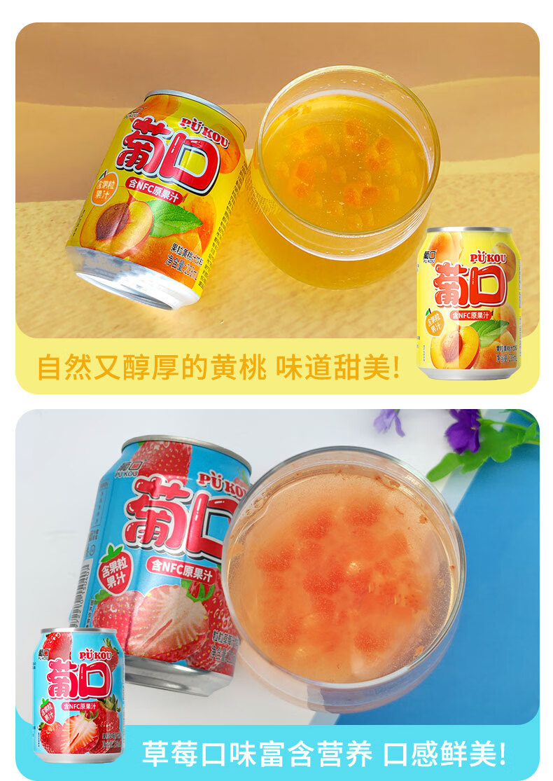 葡口(pukou)果肉饮料含NFC果汁葡萄黄桃荔枝草莓柚子金银花混搭口味便携整箱 【幸运盲盒】随机多口味238ml*10罐 日期新鲜破损包赔