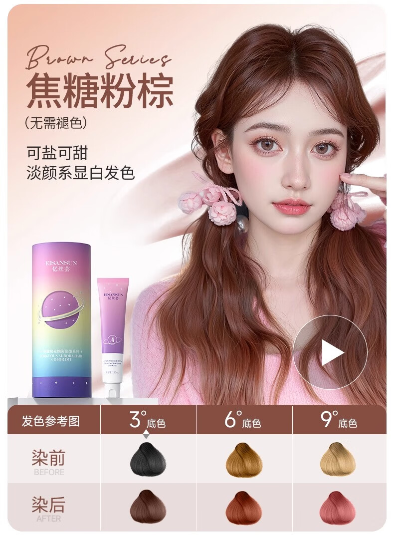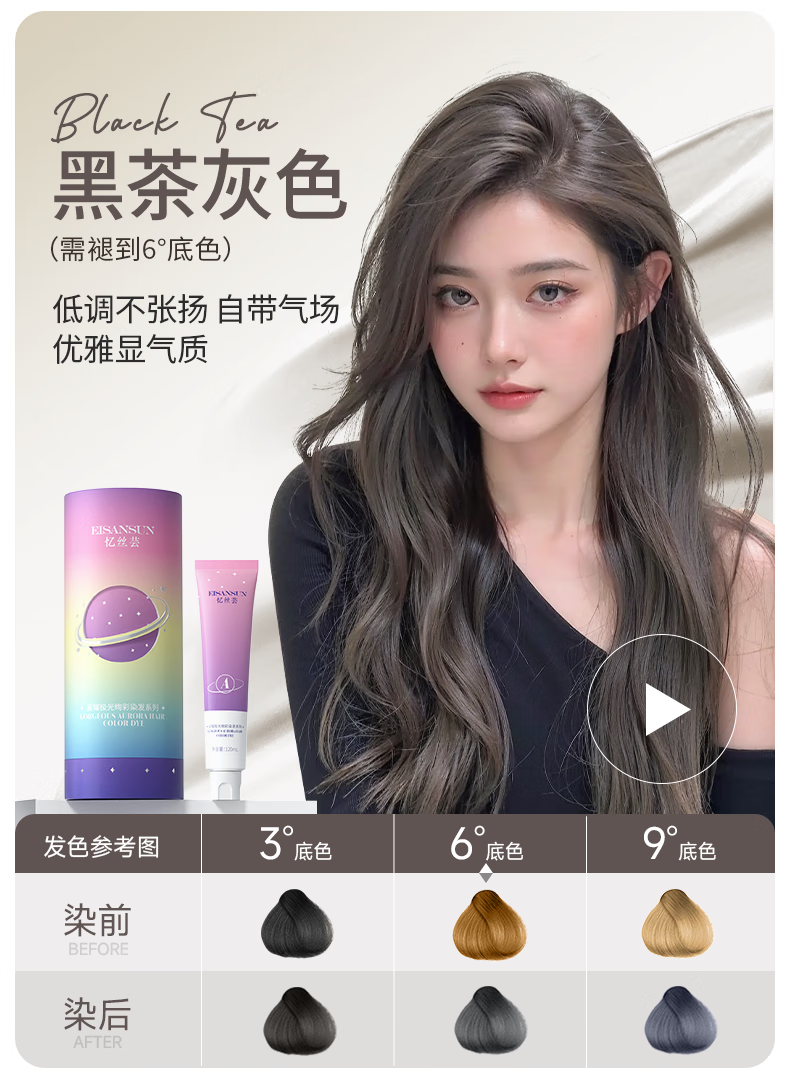 忆丝芸(Eisansun)染发膏植物纯染发剂自己在家染头发盖白不沾漂发剂天然男女士专用 榛果灰棕【爆销明星款】