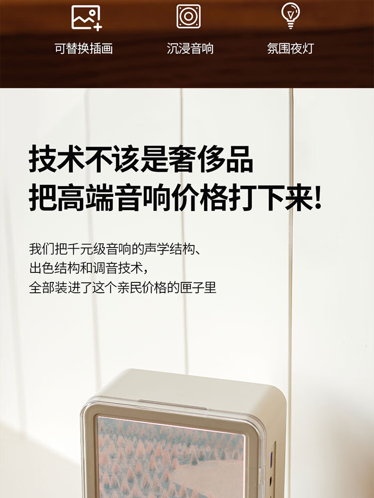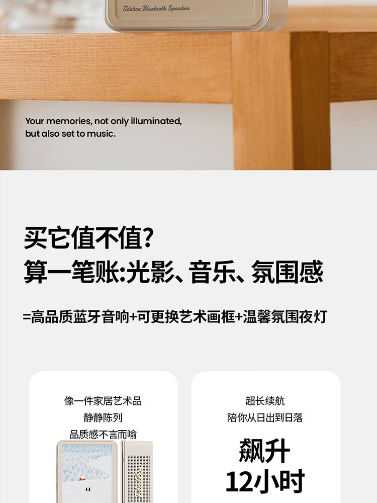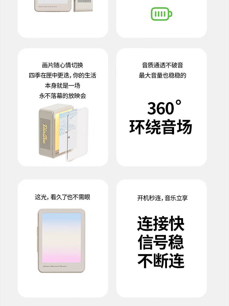 奇联蓝牙音响室内家用礼物音乐桌面相框便携摆件氛围小夜灯大音量高音质环绕超长续航男女生生日礼物 绿色