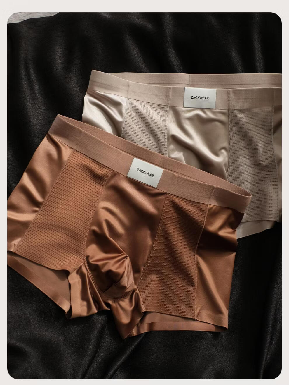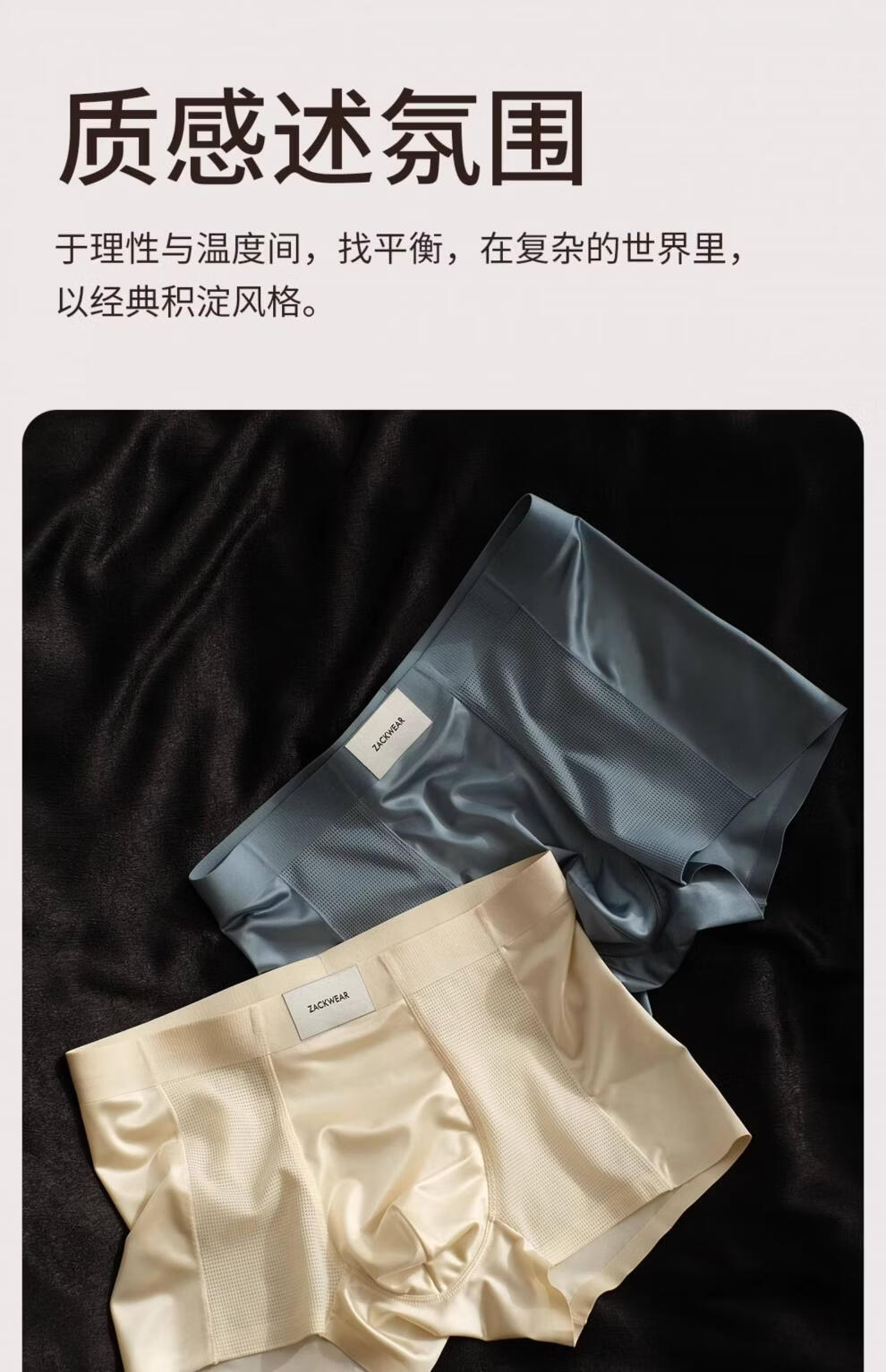 Zackwear夏季凉感缎面网眼透气无痕冰丝空调裤男士内裤男生平角裤送男友礼 月夜蓝+浣纱白+梦璃棕 5XL 200-230斤