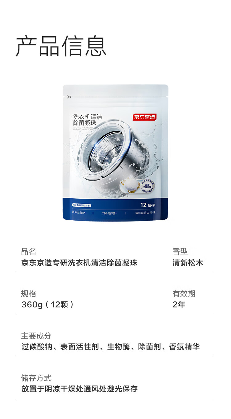 京东京造专研洗衣机清洁除菌凝珠12颗/袋 滚筒波轮洗衣机清洁剂养护机体