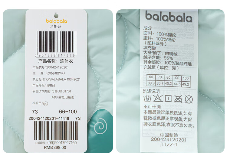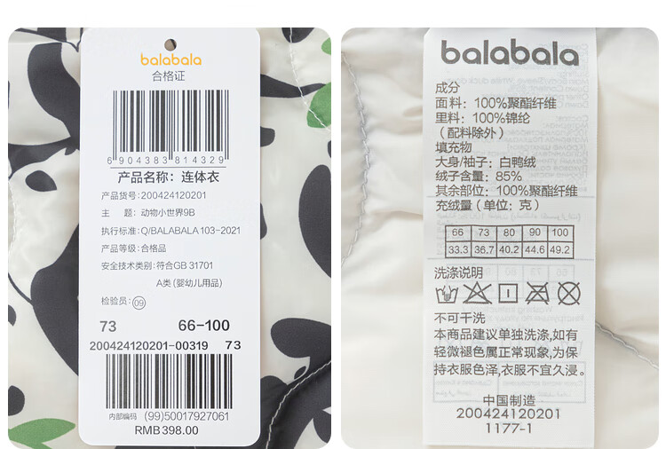 巴拉巴拉婴儿羽绒连体衣男女童冬季哈衣萌趣200424120201