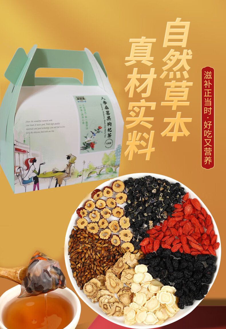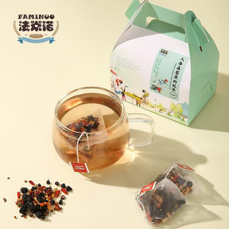 法米诺人参桑葚黑枸杞茶男女熬夜元气茶红枣冷泡茶礼盒装200g 人参桑葚黑枸杞茶礼盒 200g*1盒 (5g*40袋)
