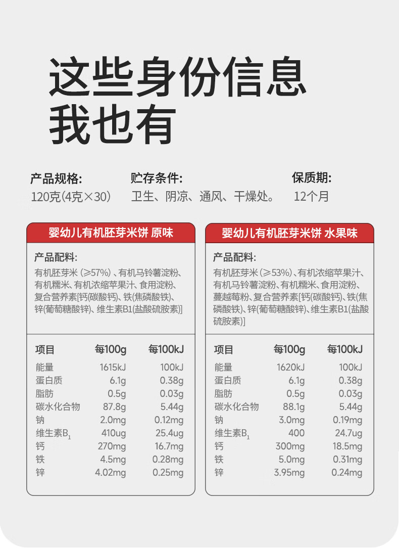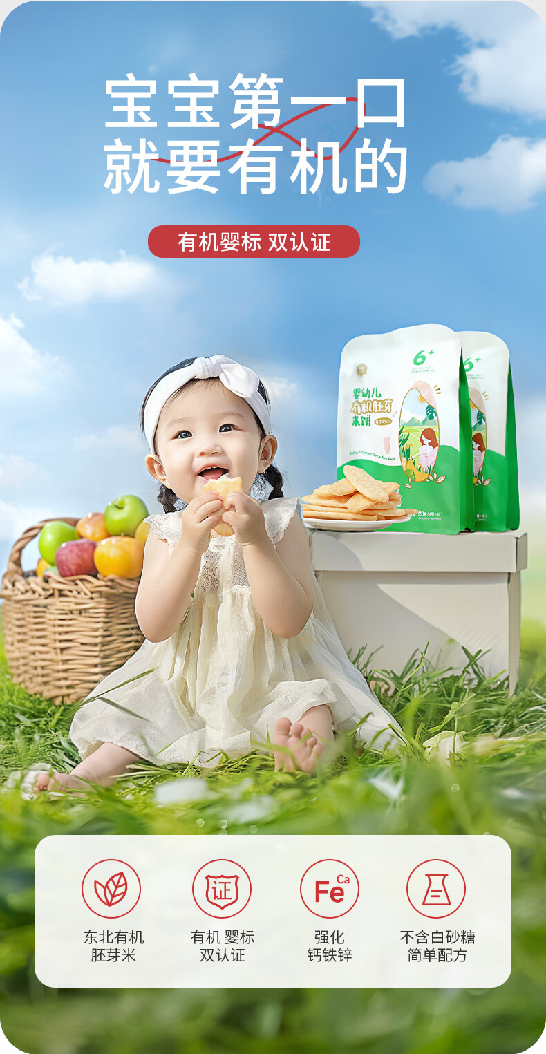 伊威婴幼儿米饼有机胚芽宝宝儿童零食量贩装6月+混合口味120g