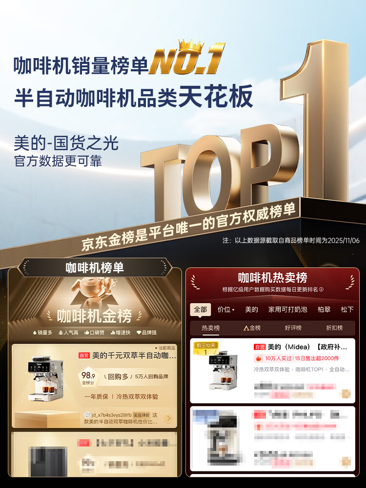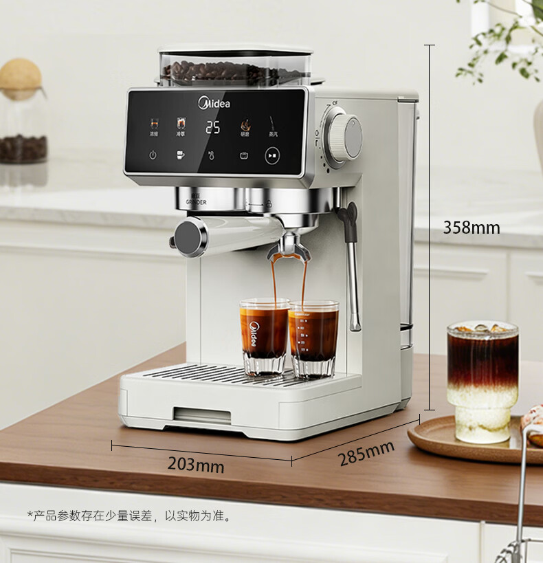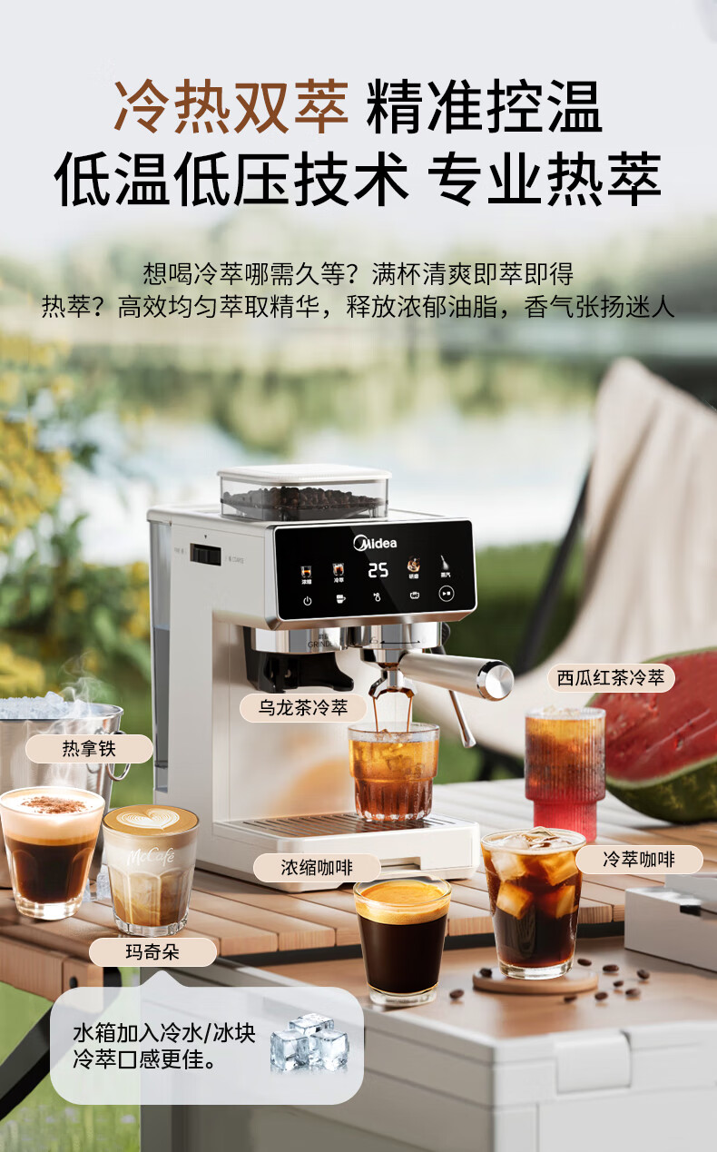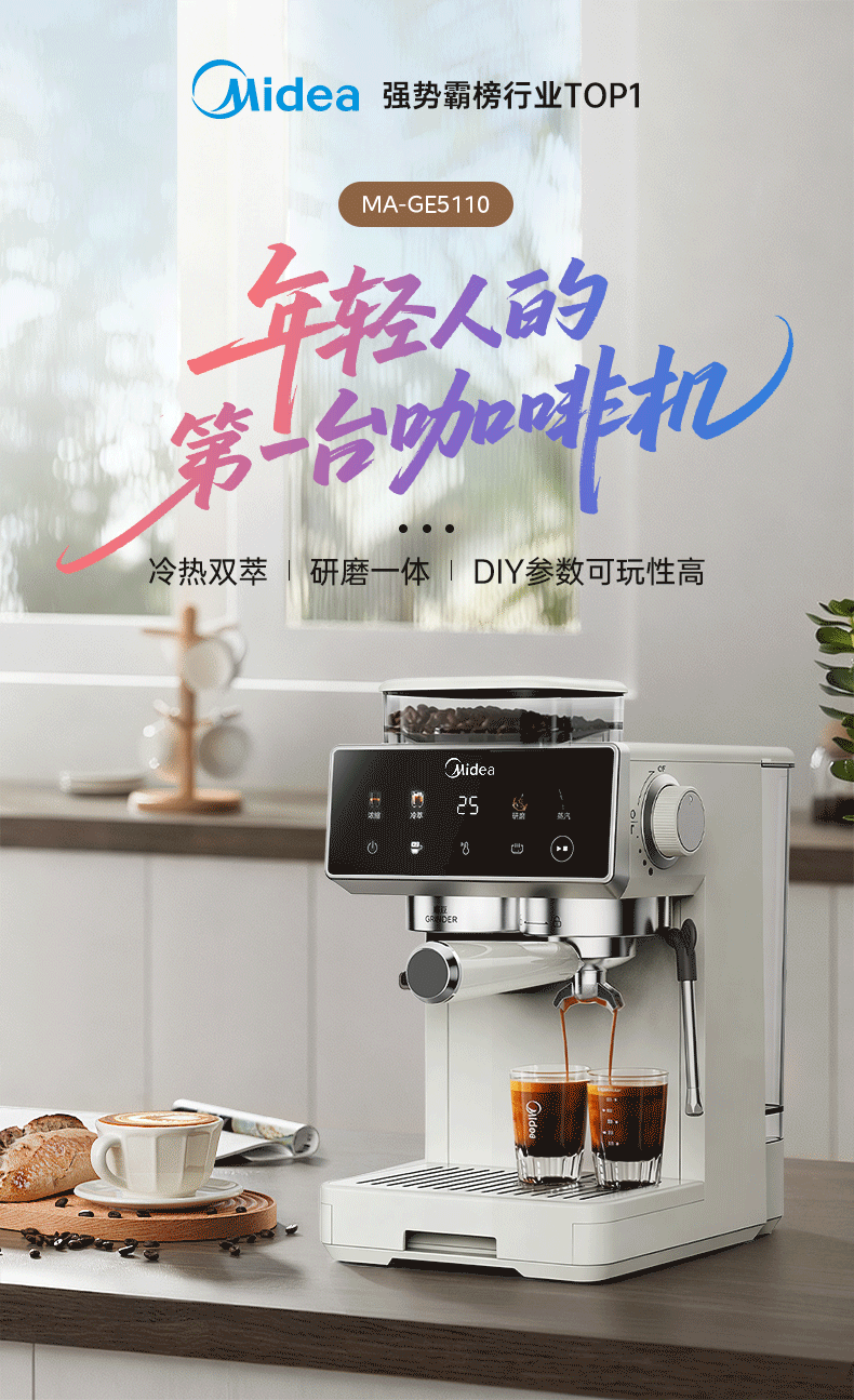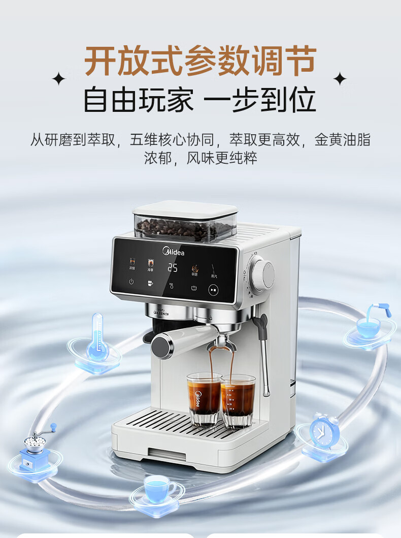 美的(Midea)【新年礼物】意式半自动咖啡机冷热双萃研磨一体机小型全自动家用磨豆咖啡机可打奶泡MA-GE5110