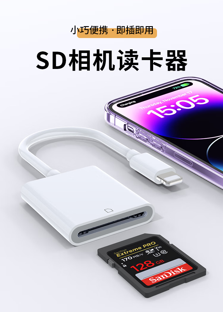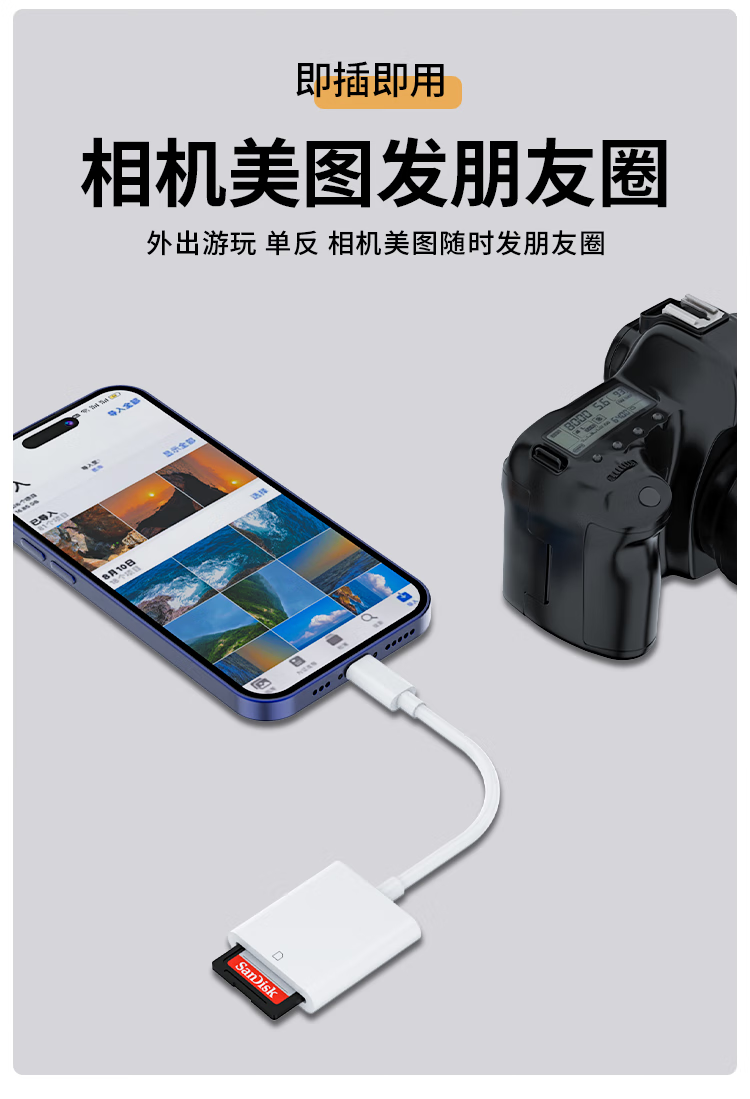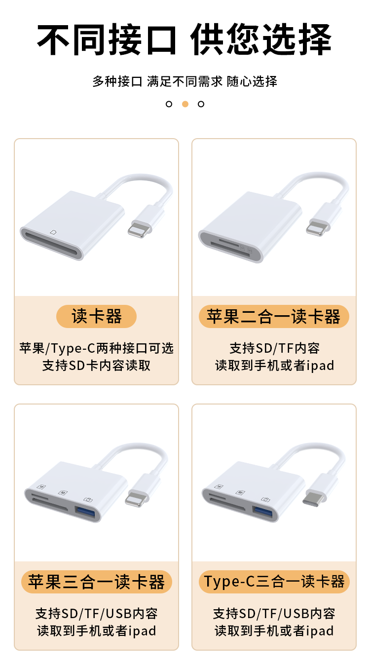 相机读卡器sd卡适用苹果索尼佳能尼康iPhone口传输线手机tf内存OTG转换器typec转接头ccd连接直传 Type-C接口三合一【支持SD/TF卡/U盘】